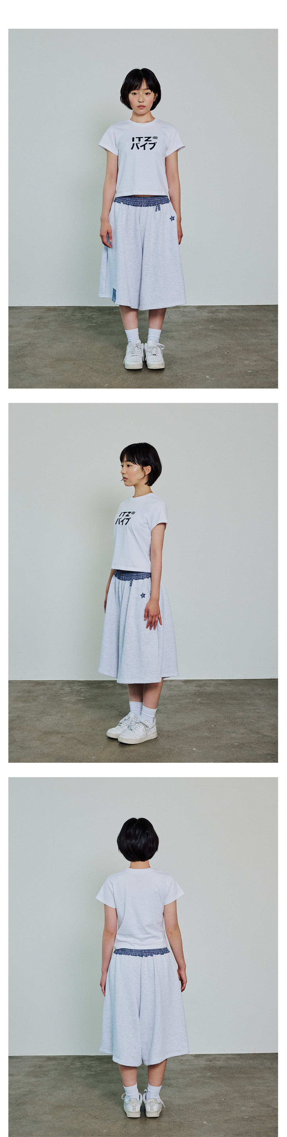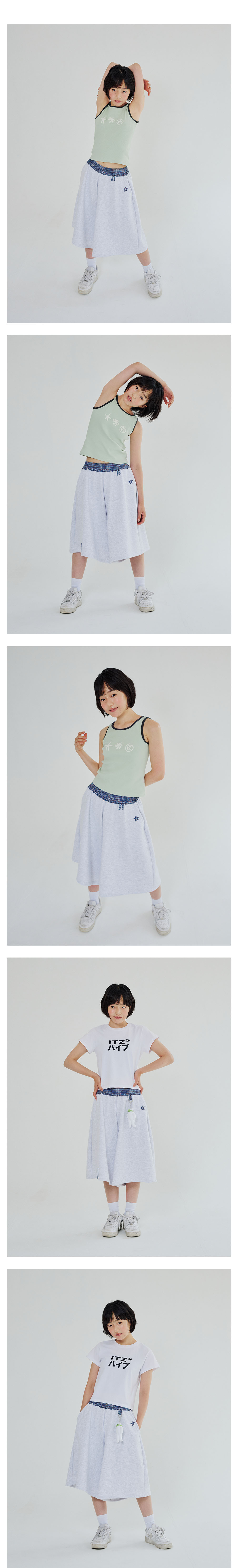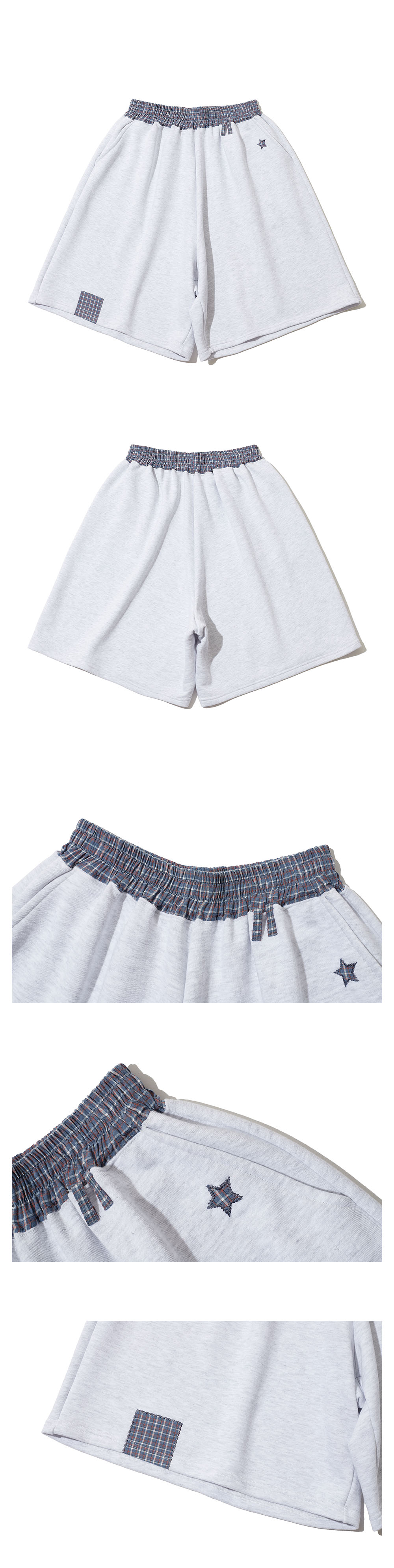 CHECK BANDING BERMUDA PANTS - LIGHT GRAY