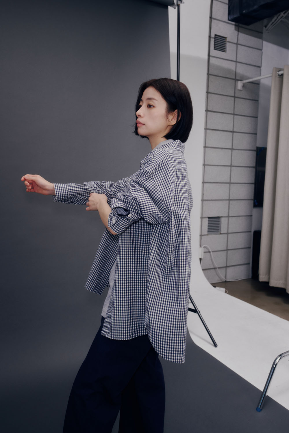 ・ウォッシュ加工によりヴィンテージ感を引き立てたギンガムチェック素材