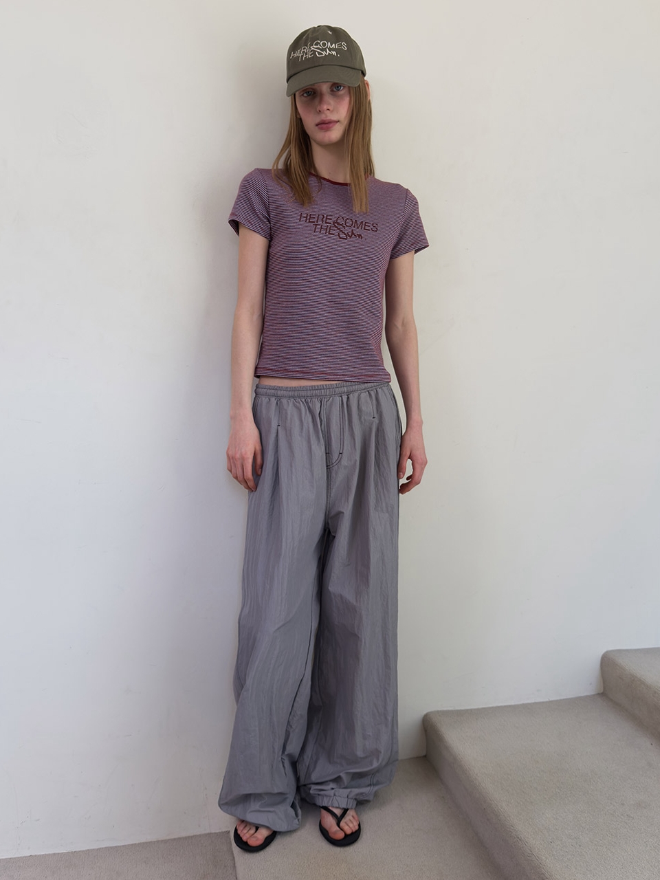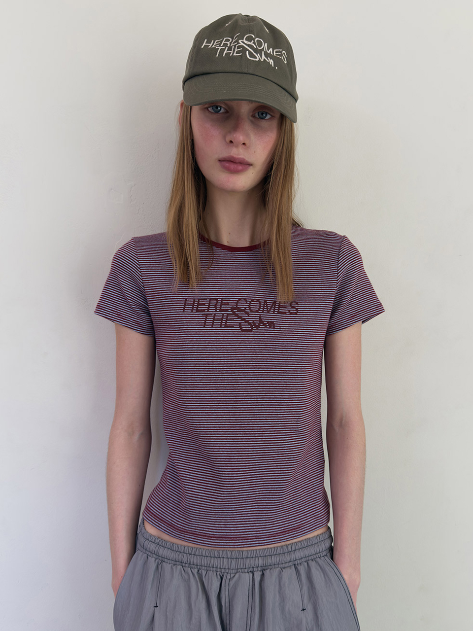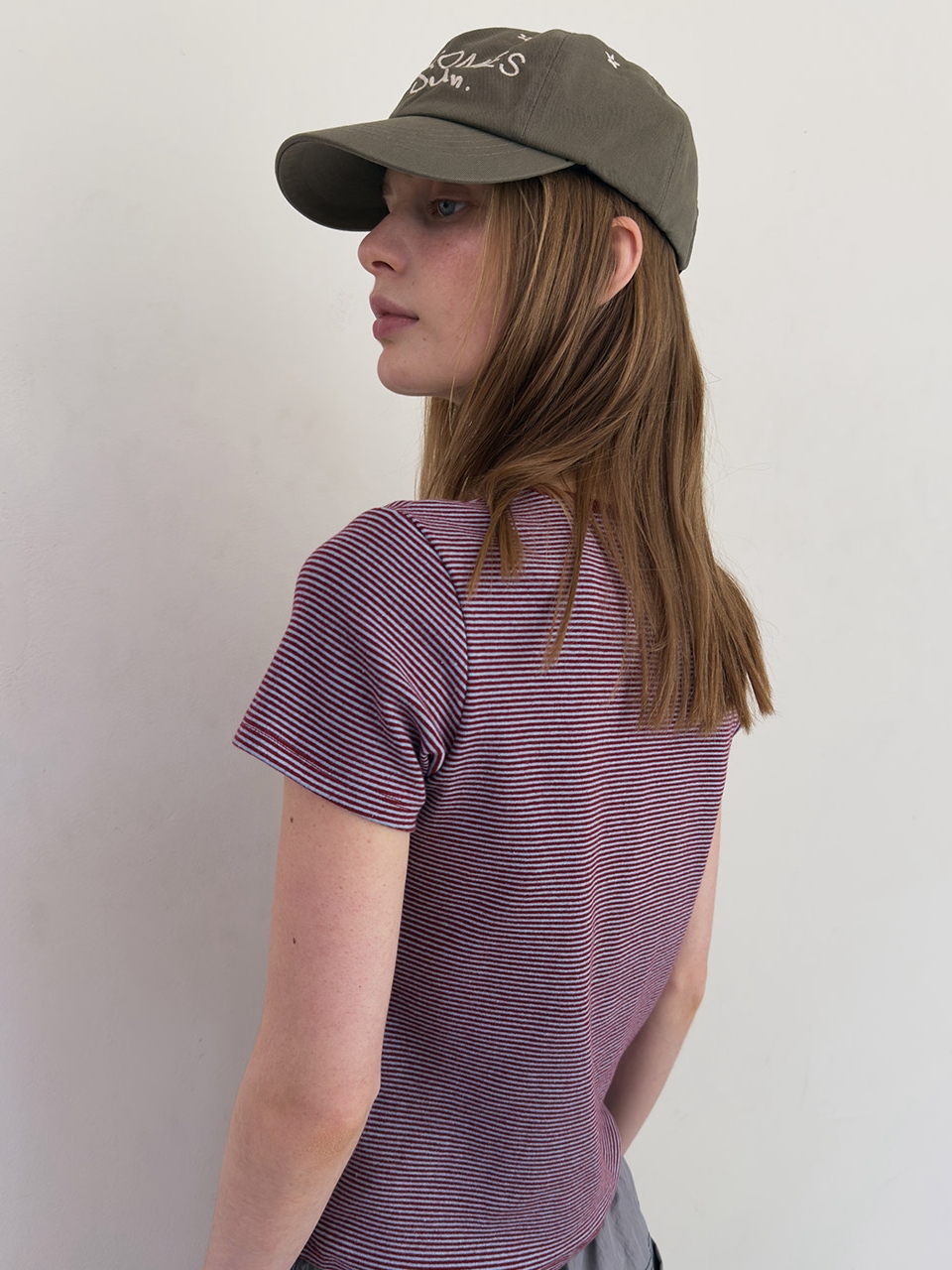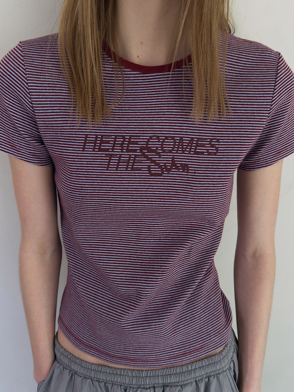 STRIPE GRAPHIC PRINTING TEE (burgundy)