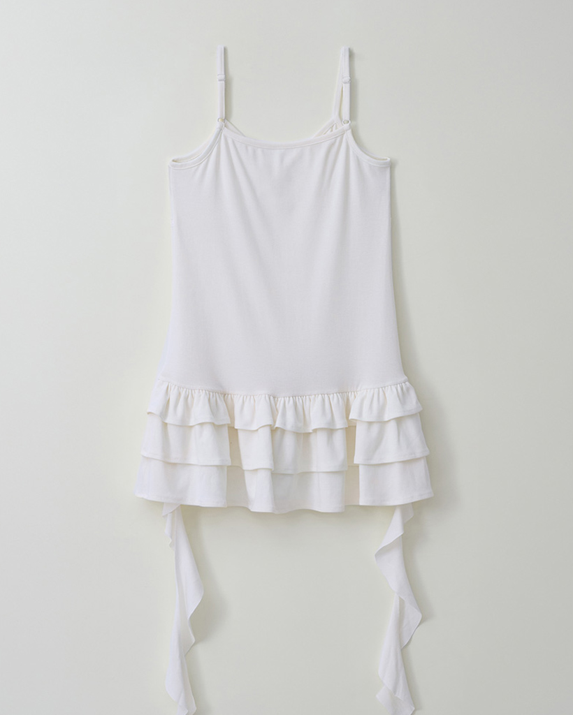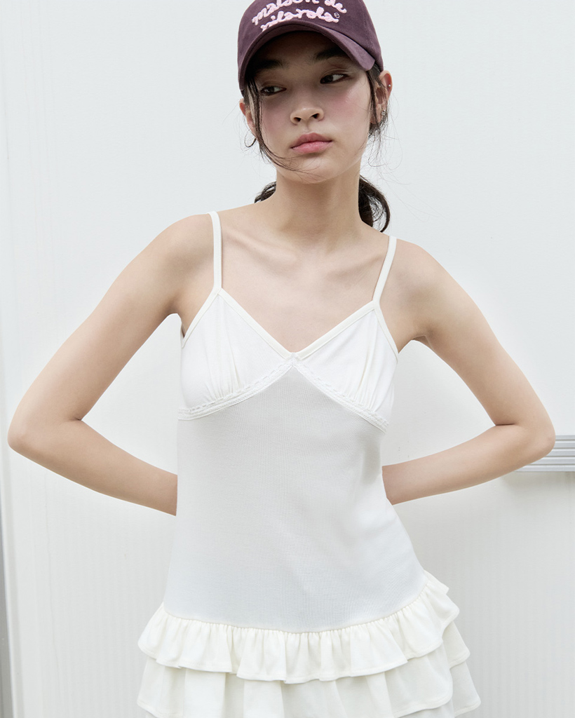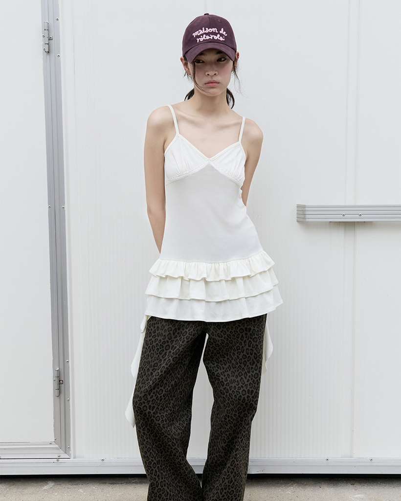 RUFFLE SLEEVELESS T-SHIRT WHITE