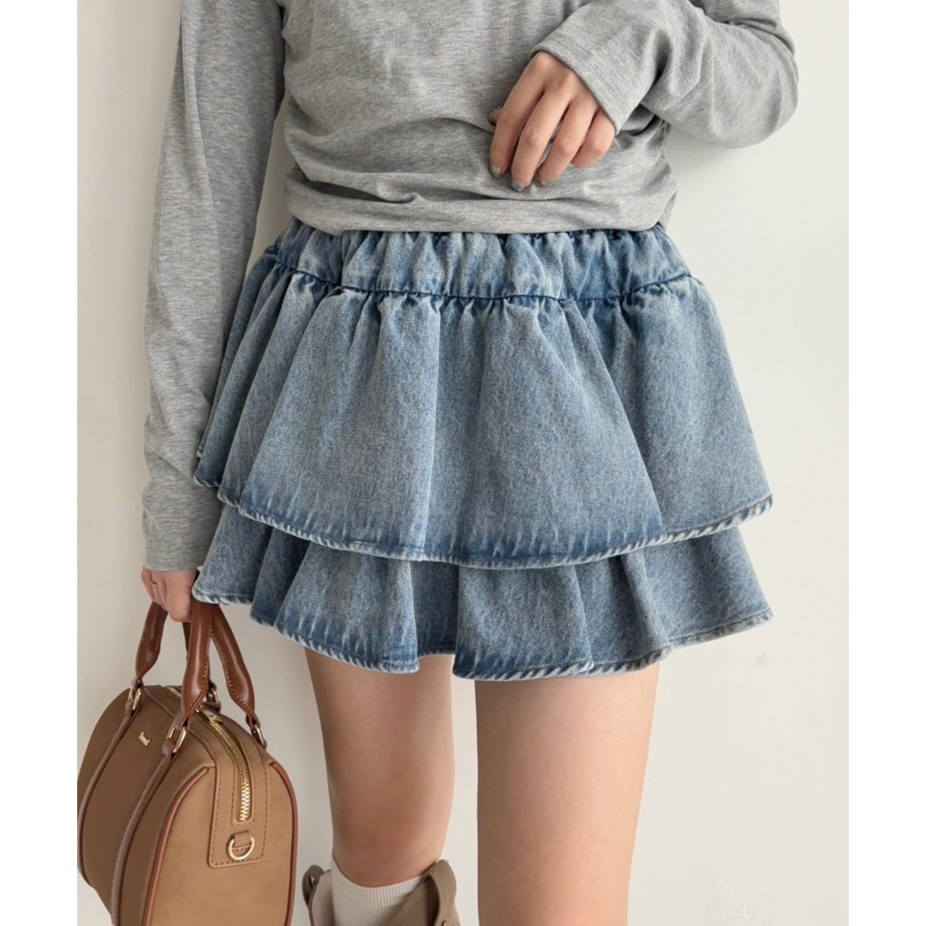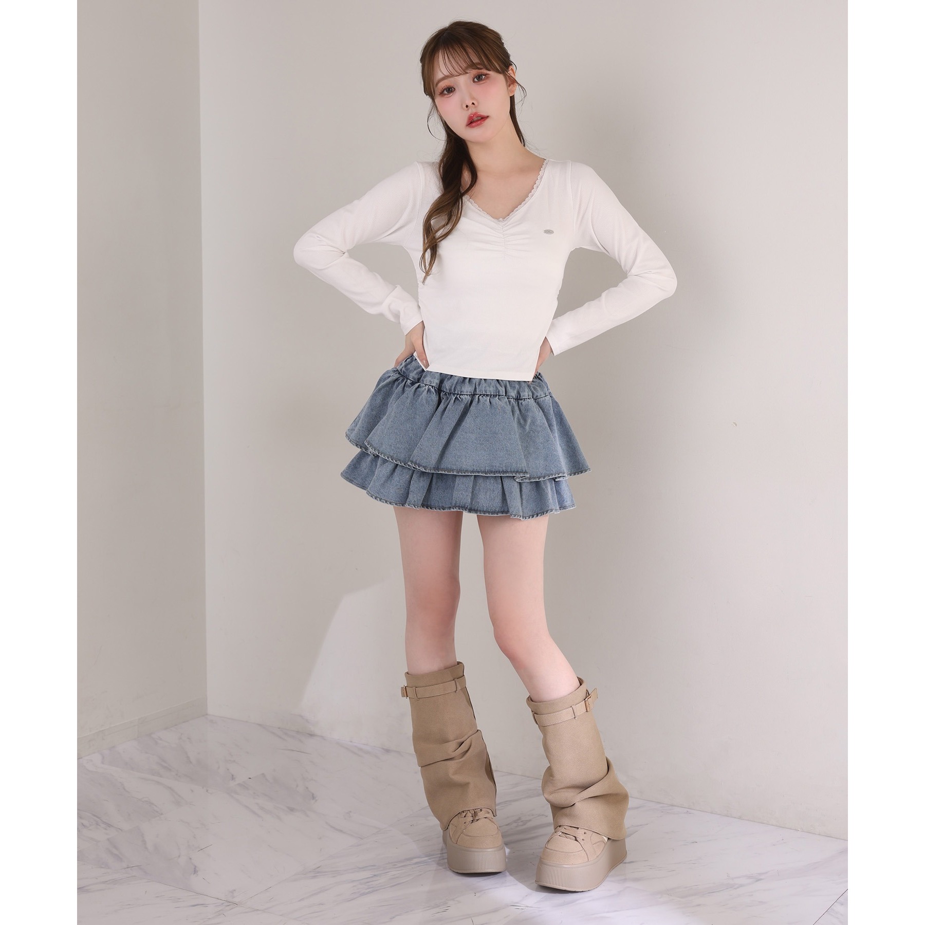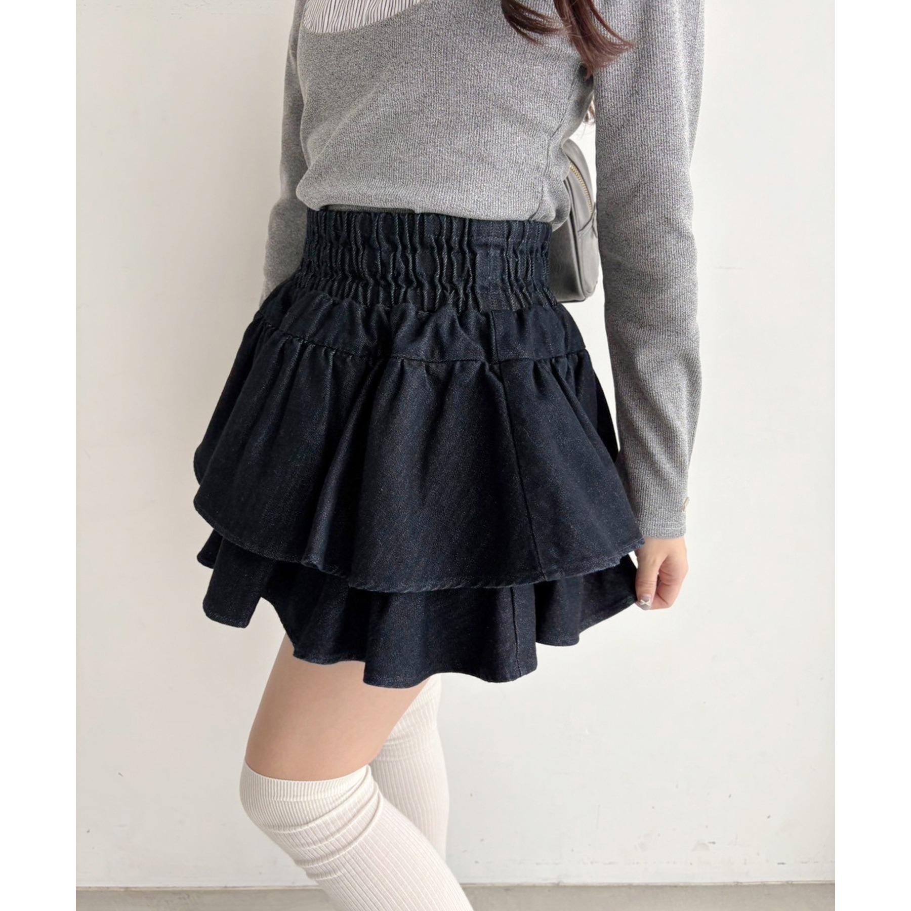 ふわっと広がるフリルティアードがかわいい韓国風スカート