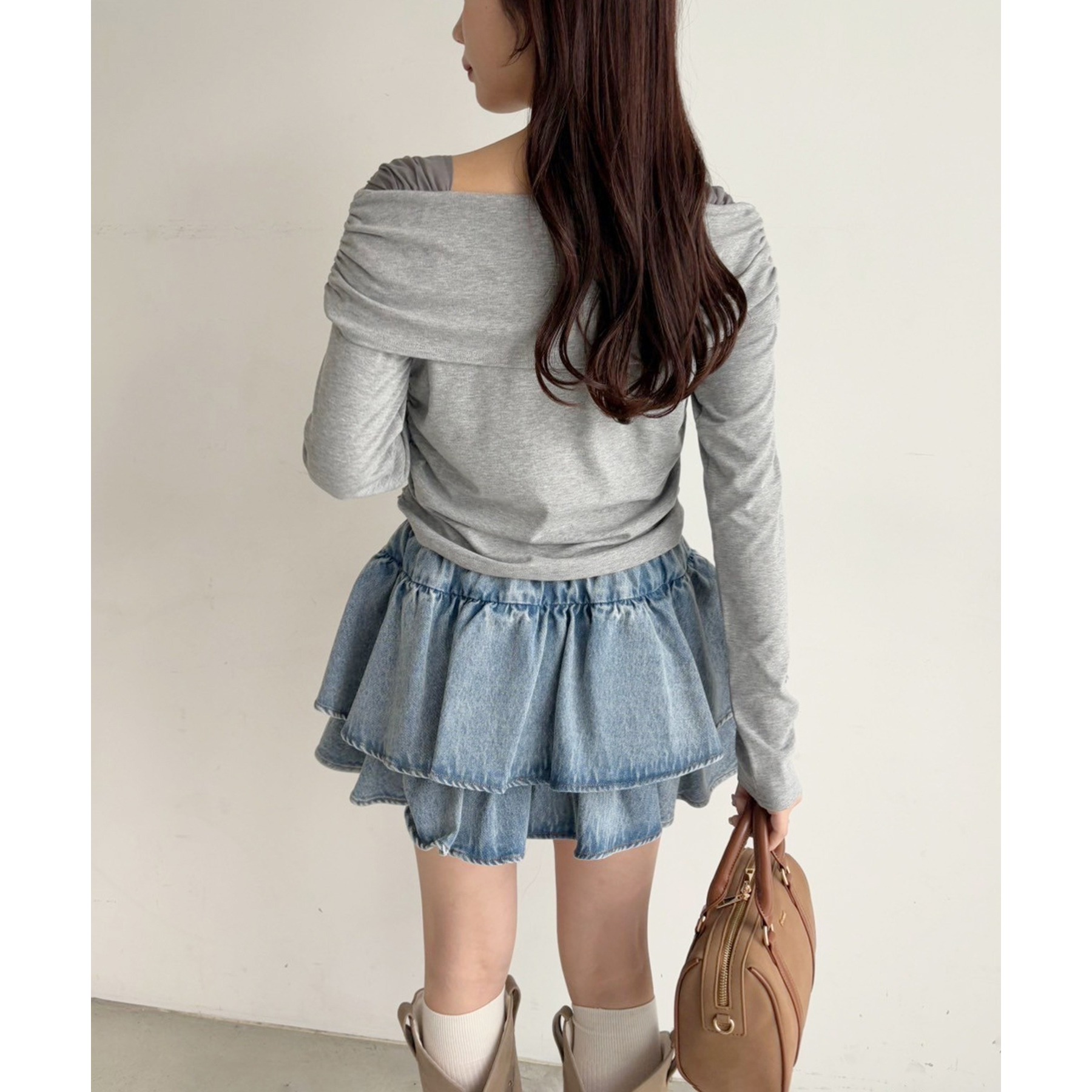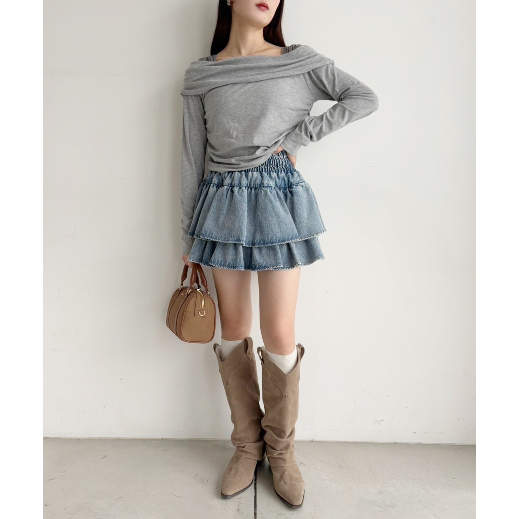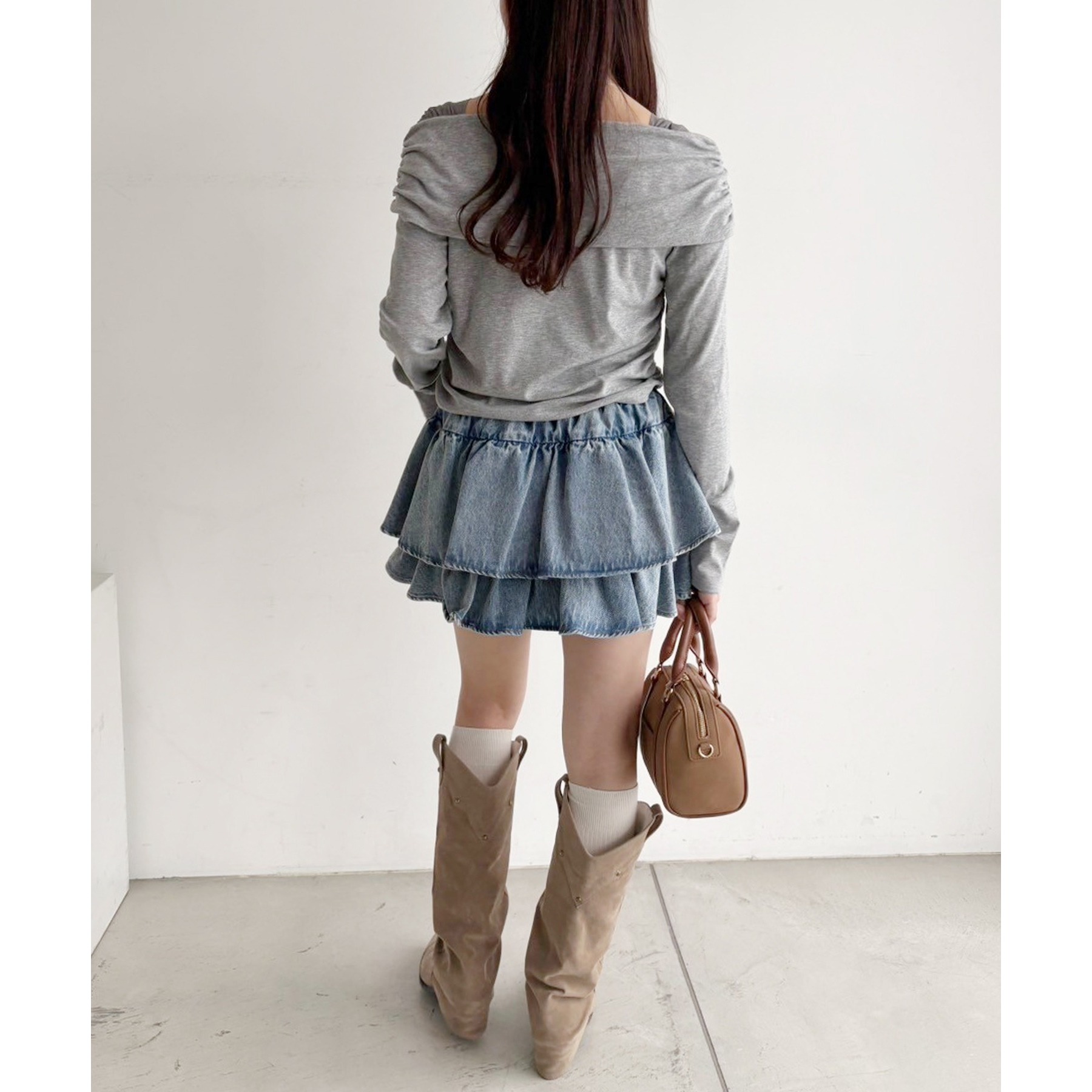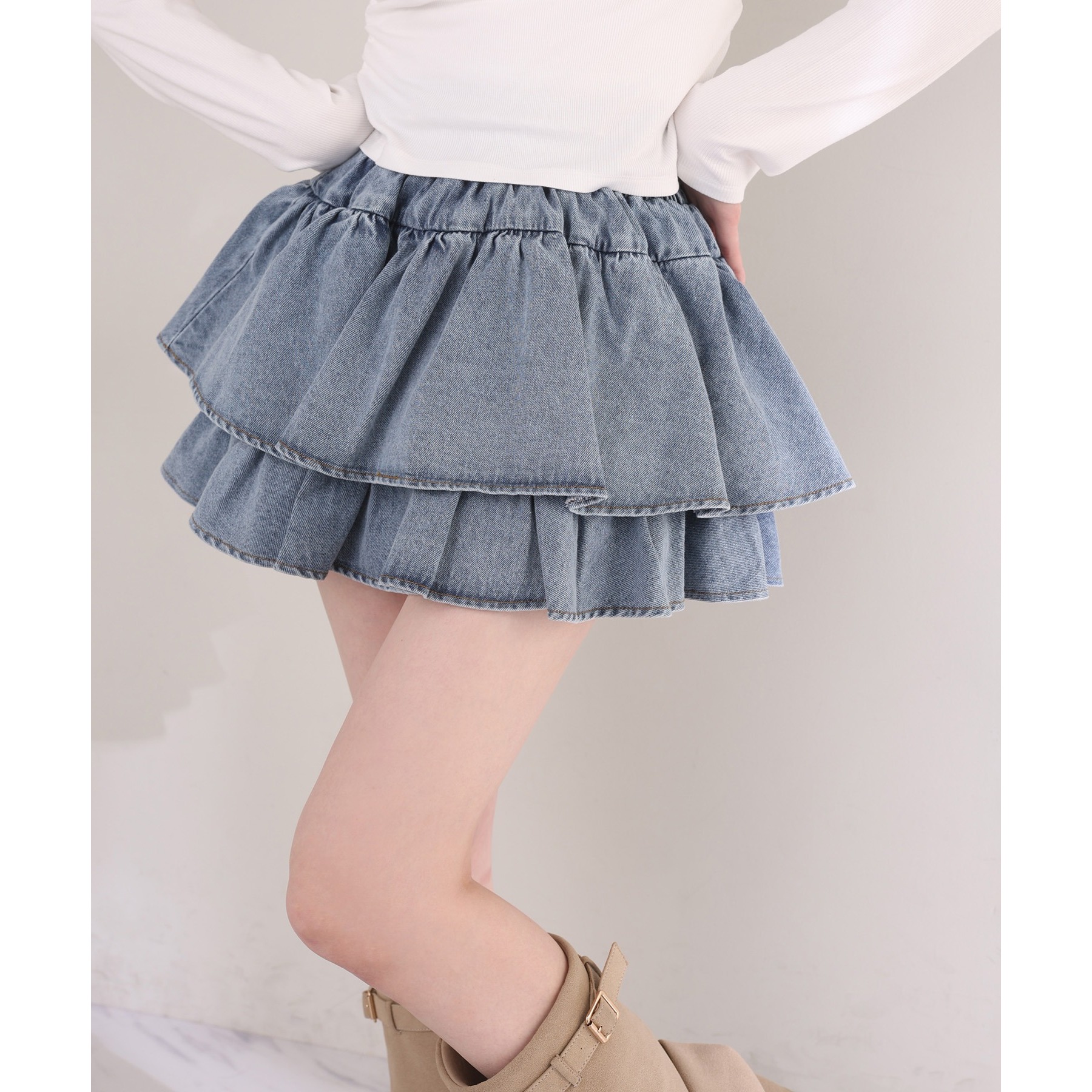 ふわっと広がるフリルティアードがかわいい韓国風スカート