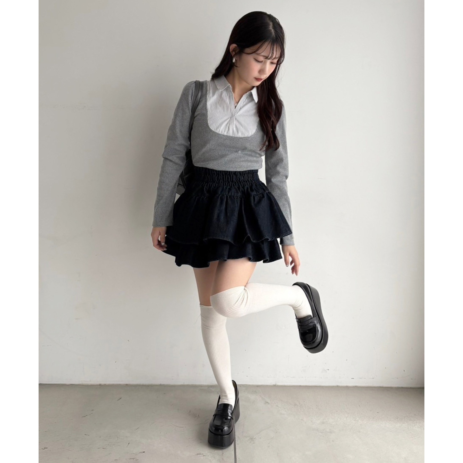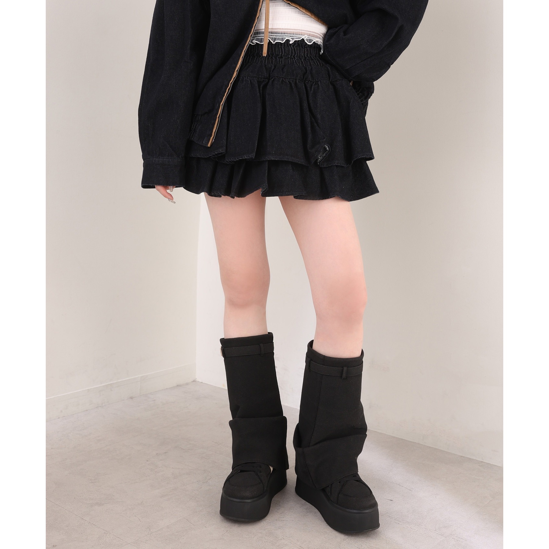 オーバーサイズのトップスの下から覗かせるのも可愛いです◎