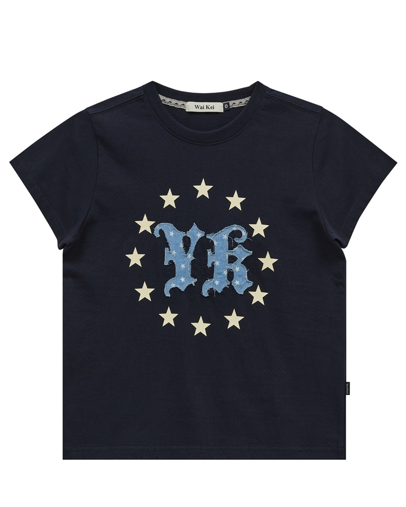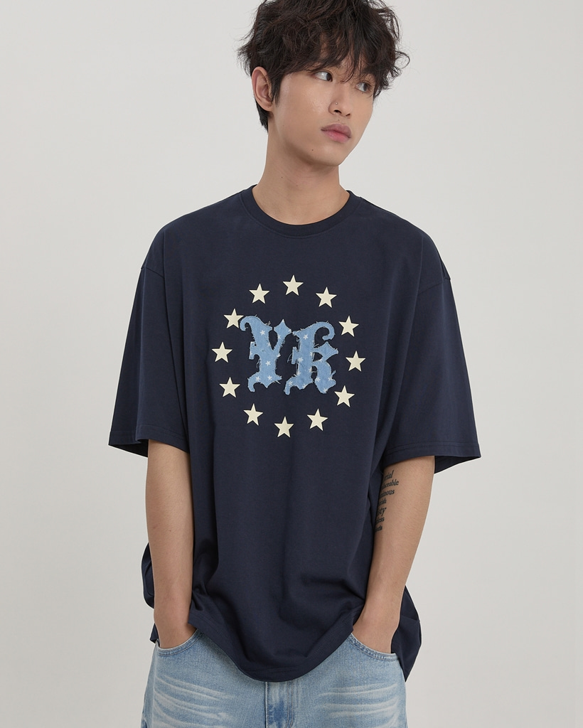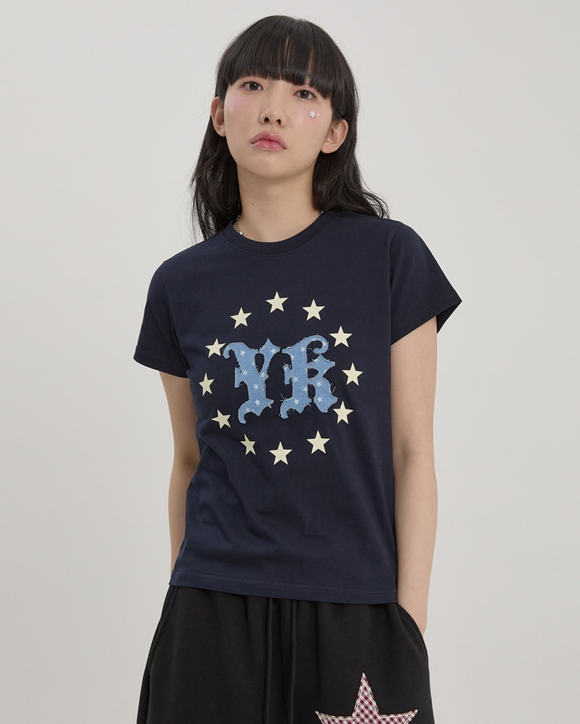 [K-POPアイドル着用] YK Star Applique Half Sleeve T-shirt NAVY