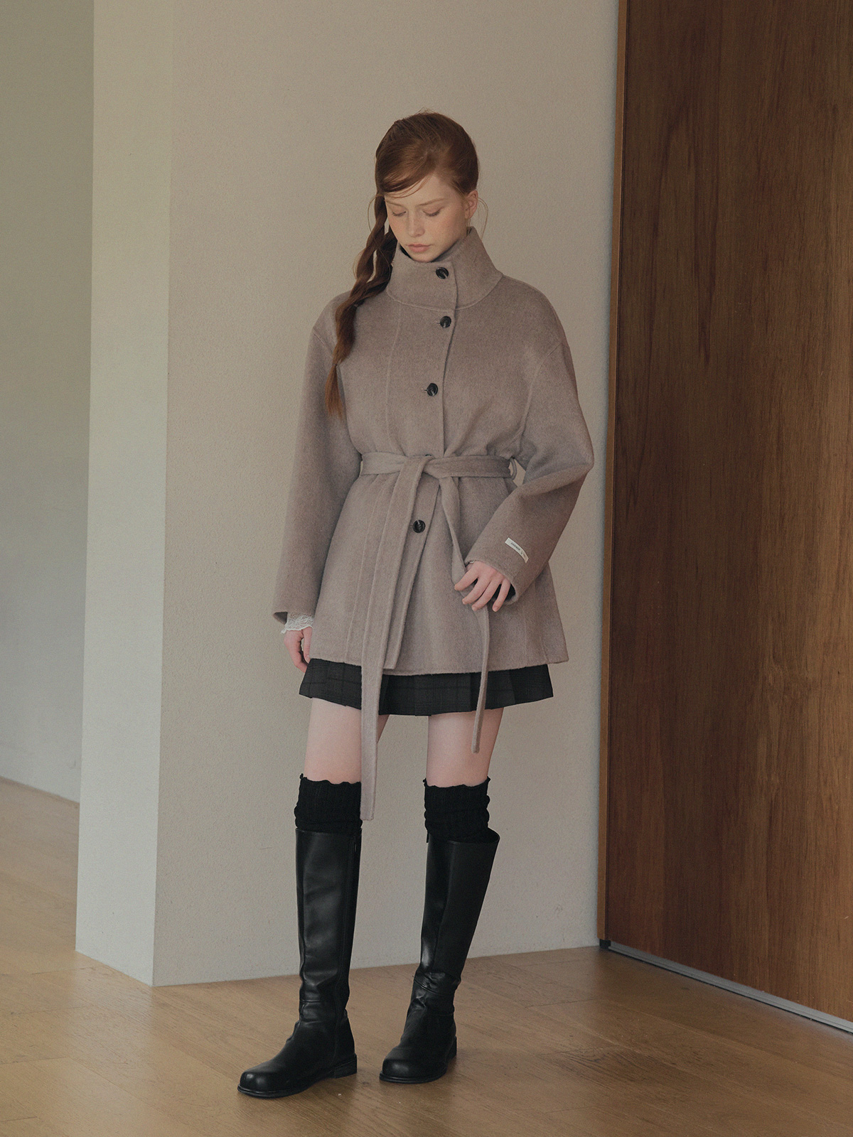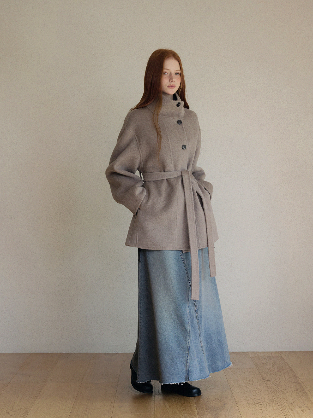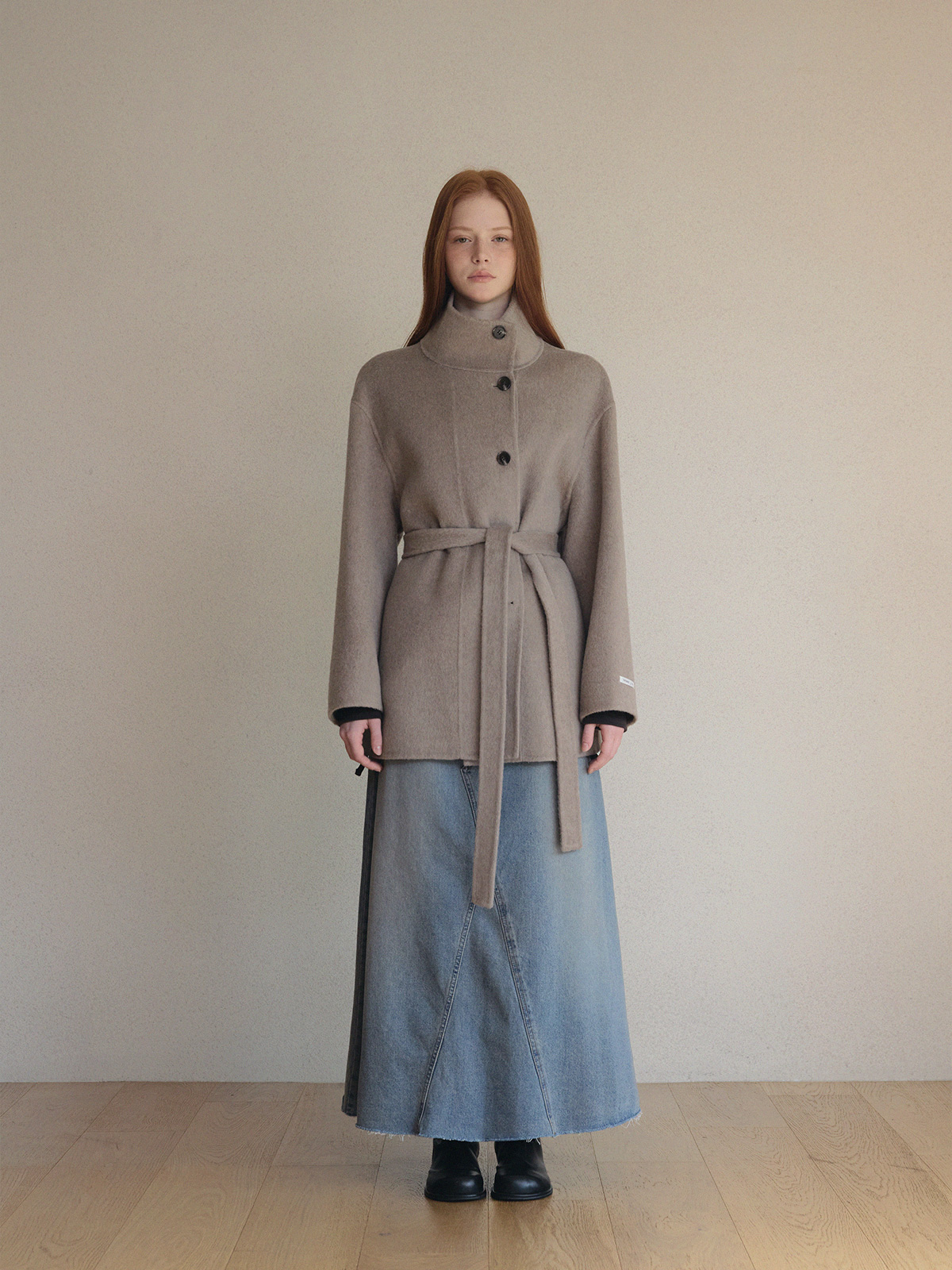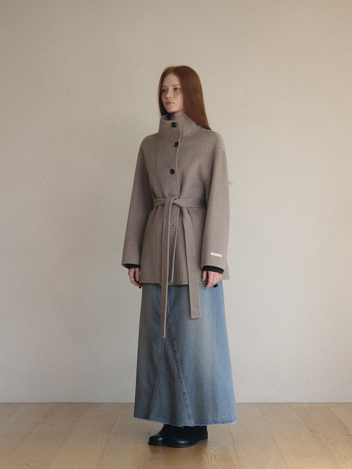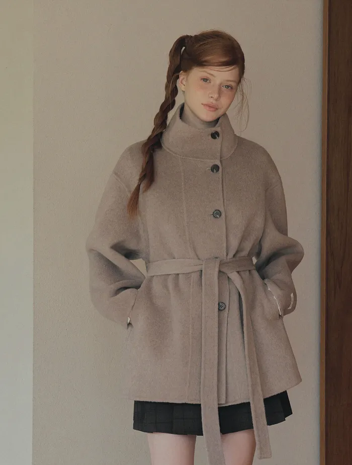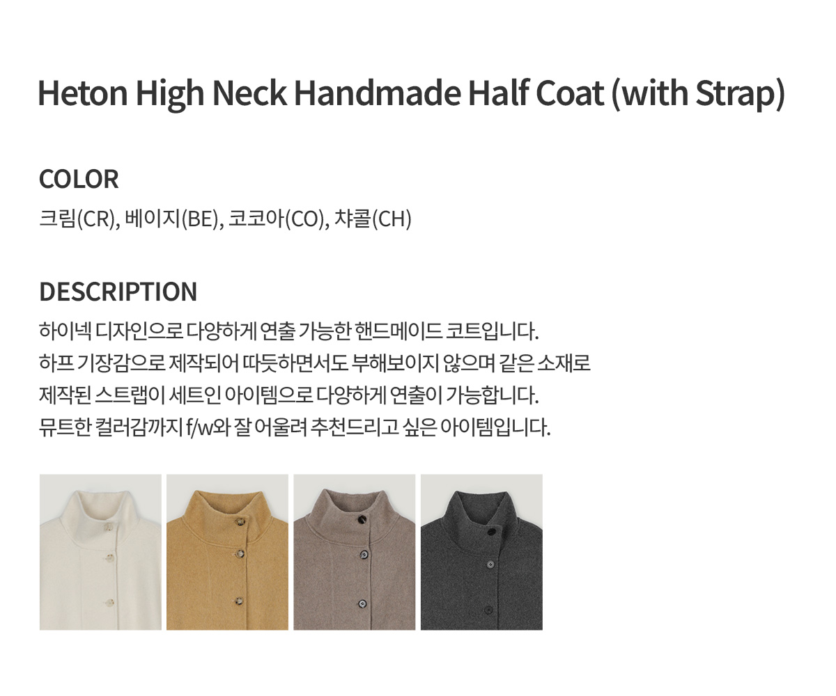 Heton High Neck Handmade Half Coat (with Strap)