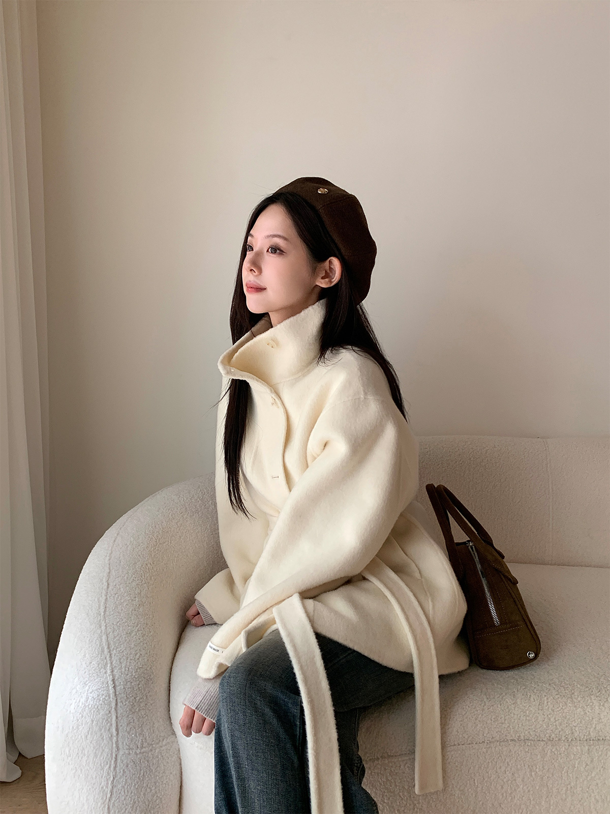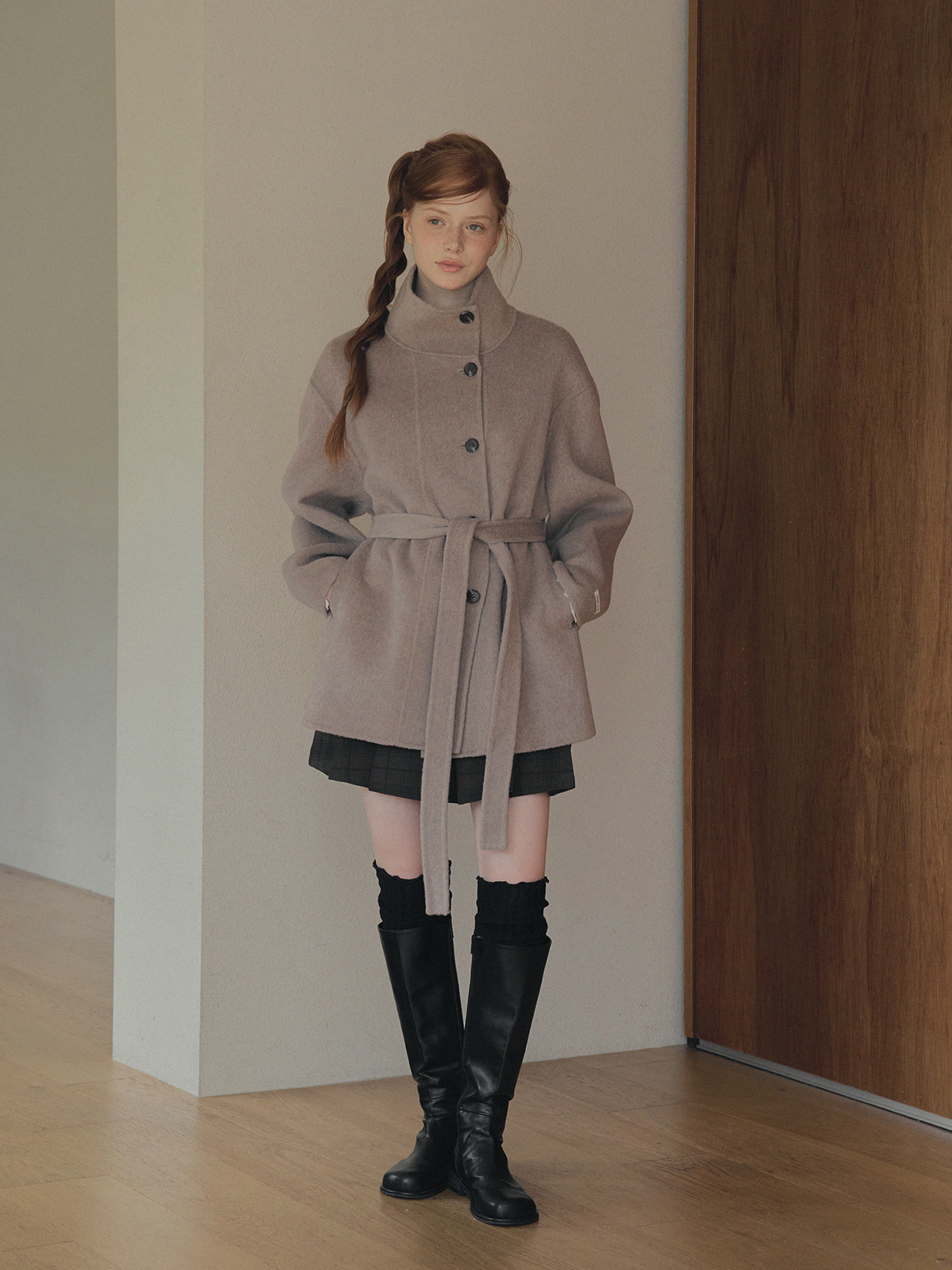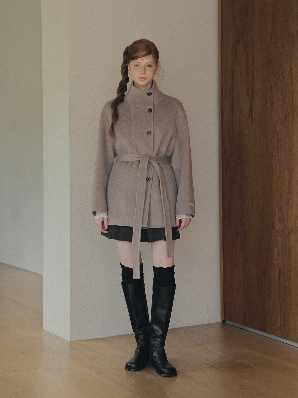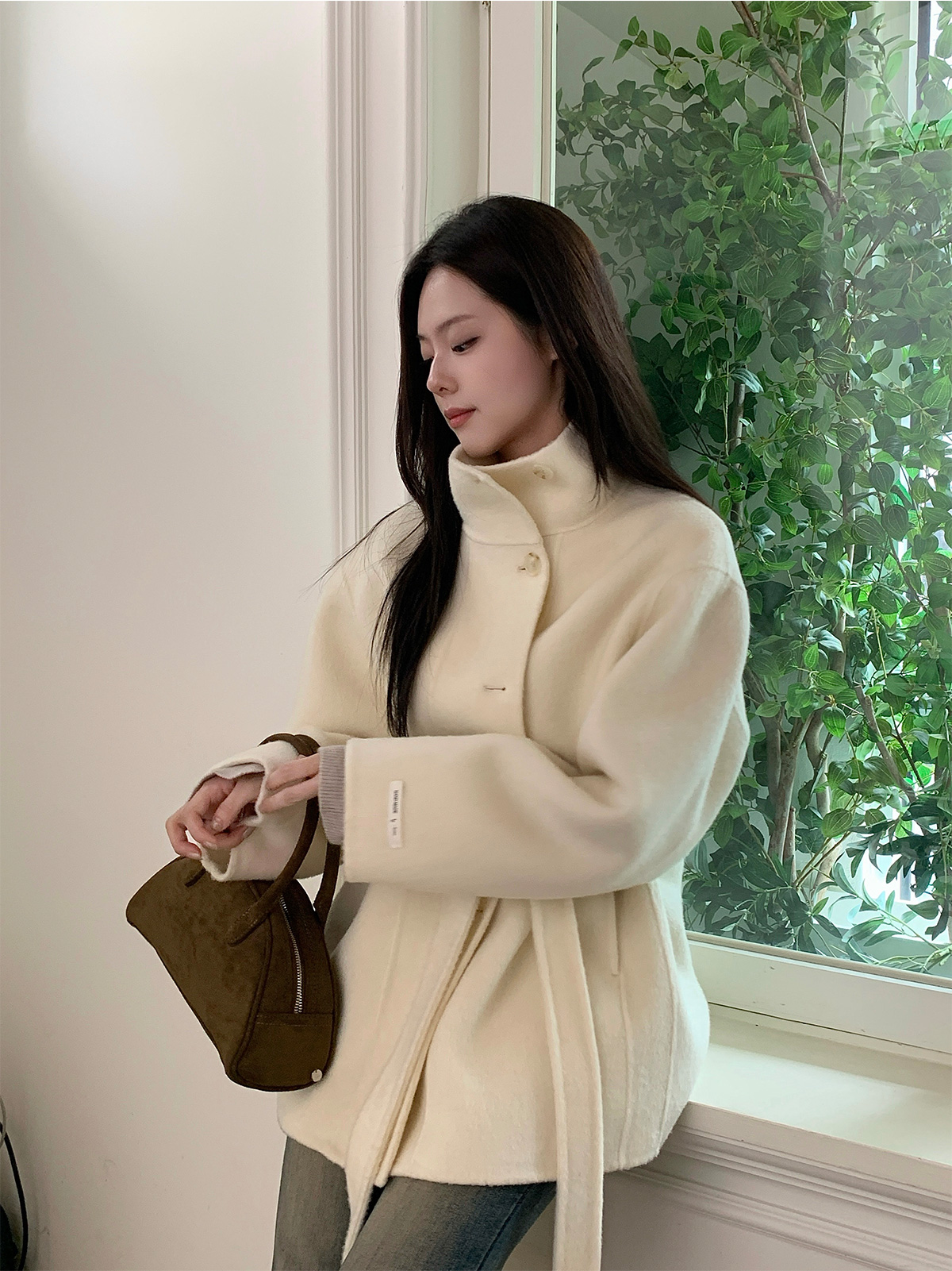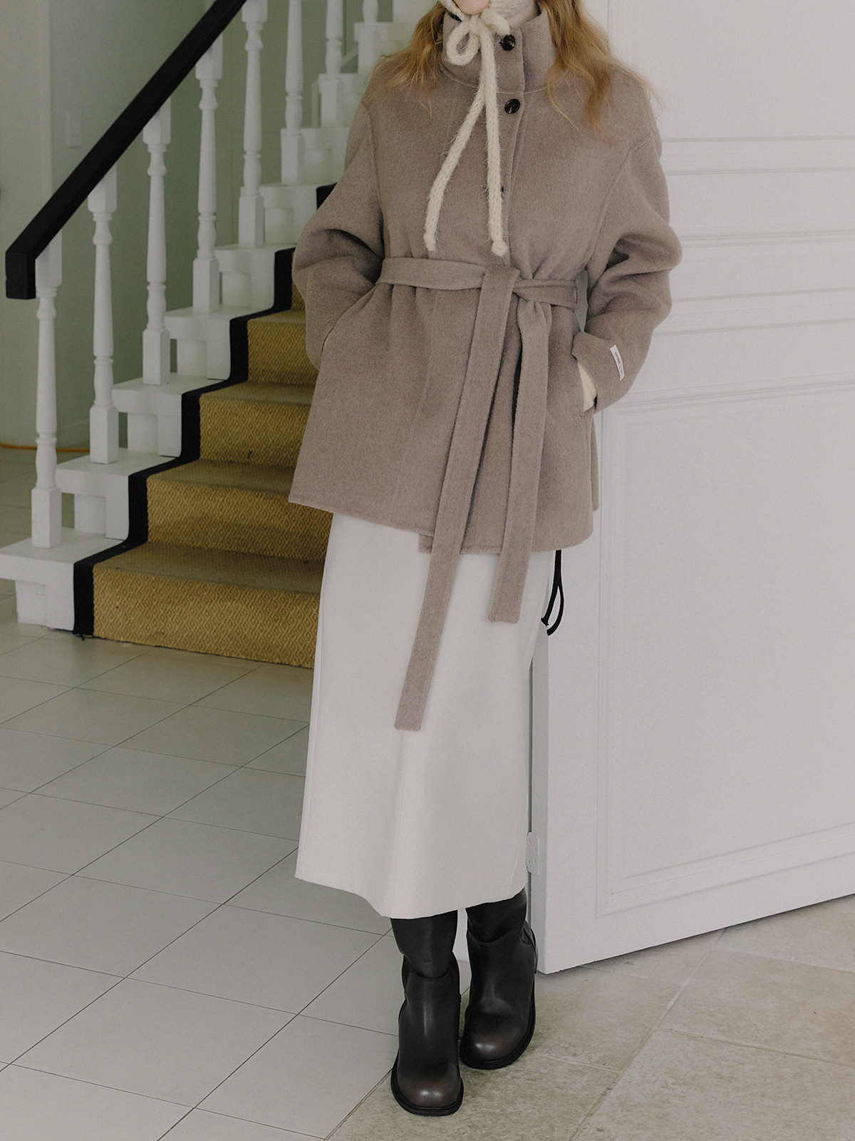 Heton High Neck Handmade Half Coat (with Strap)