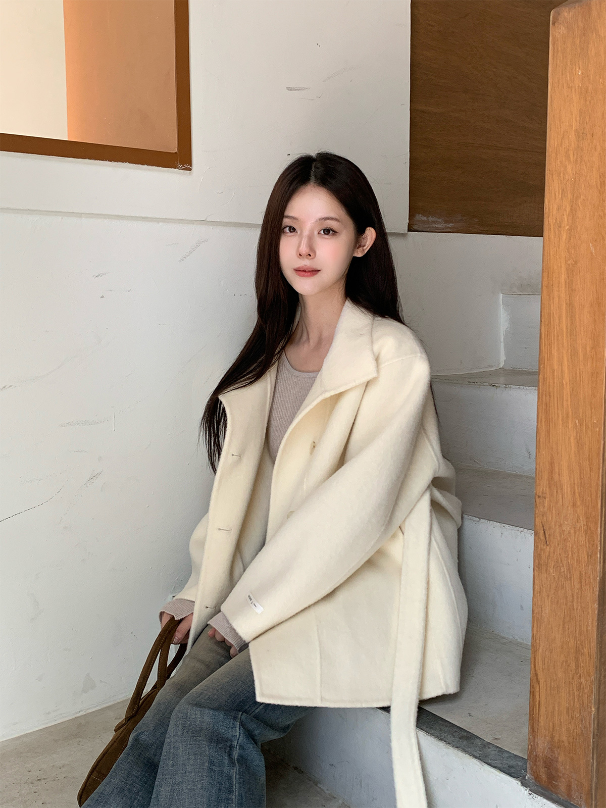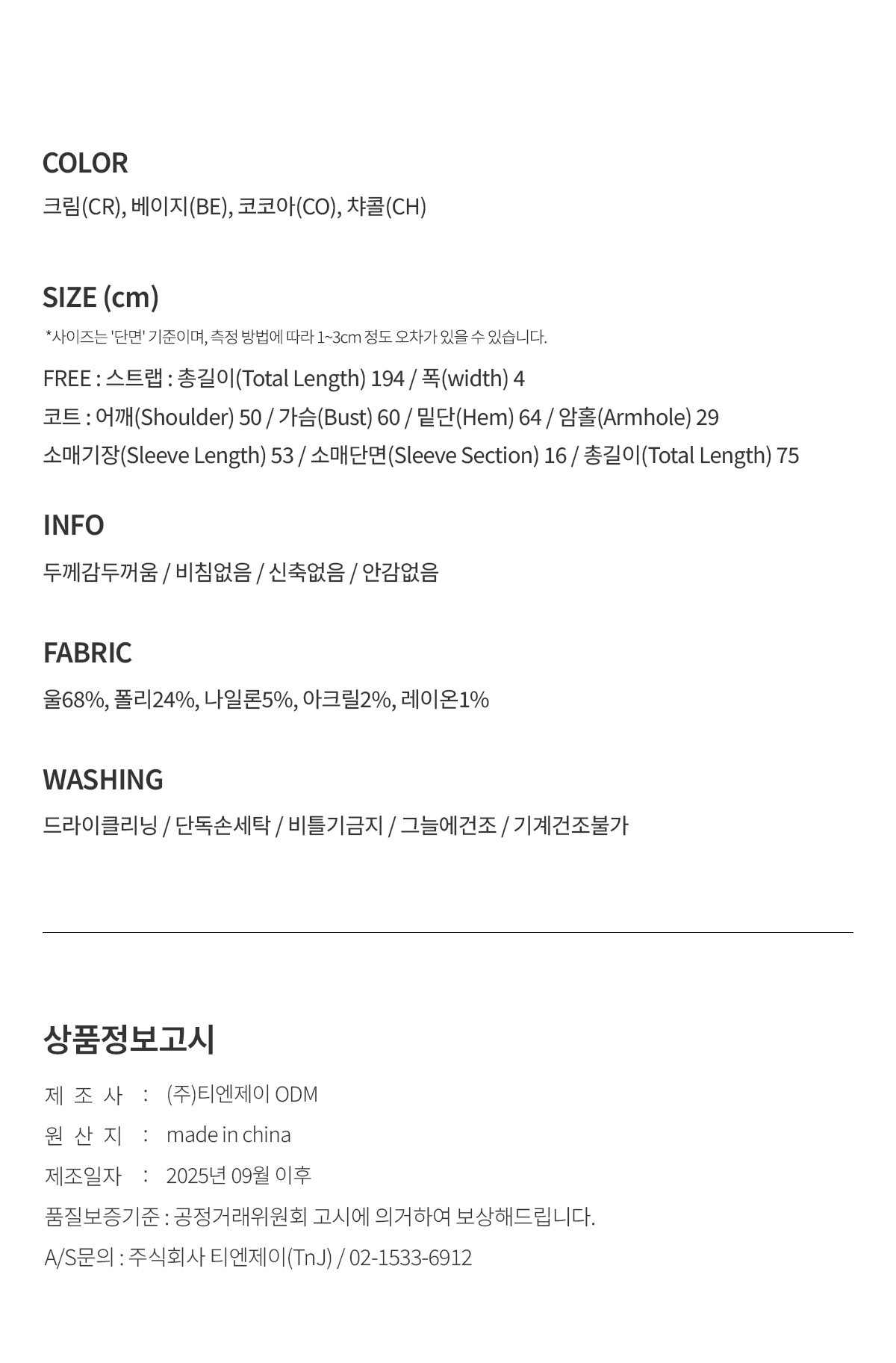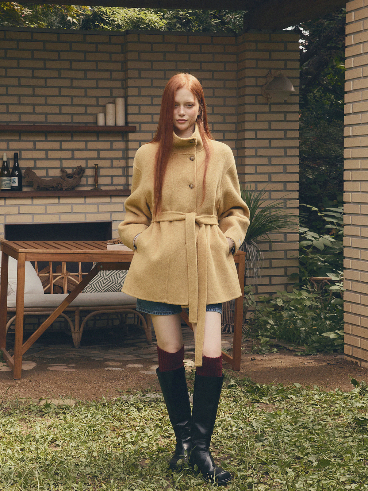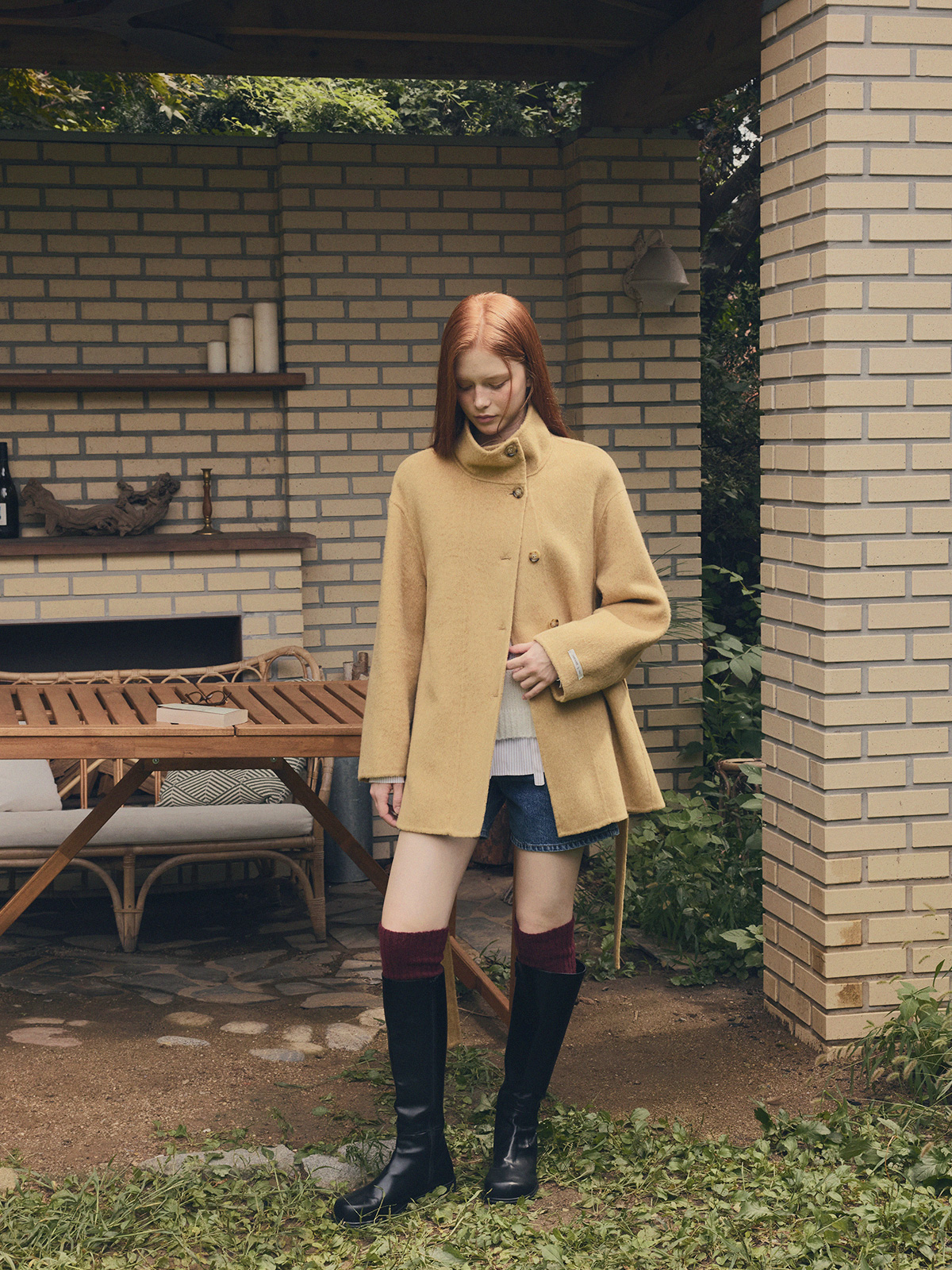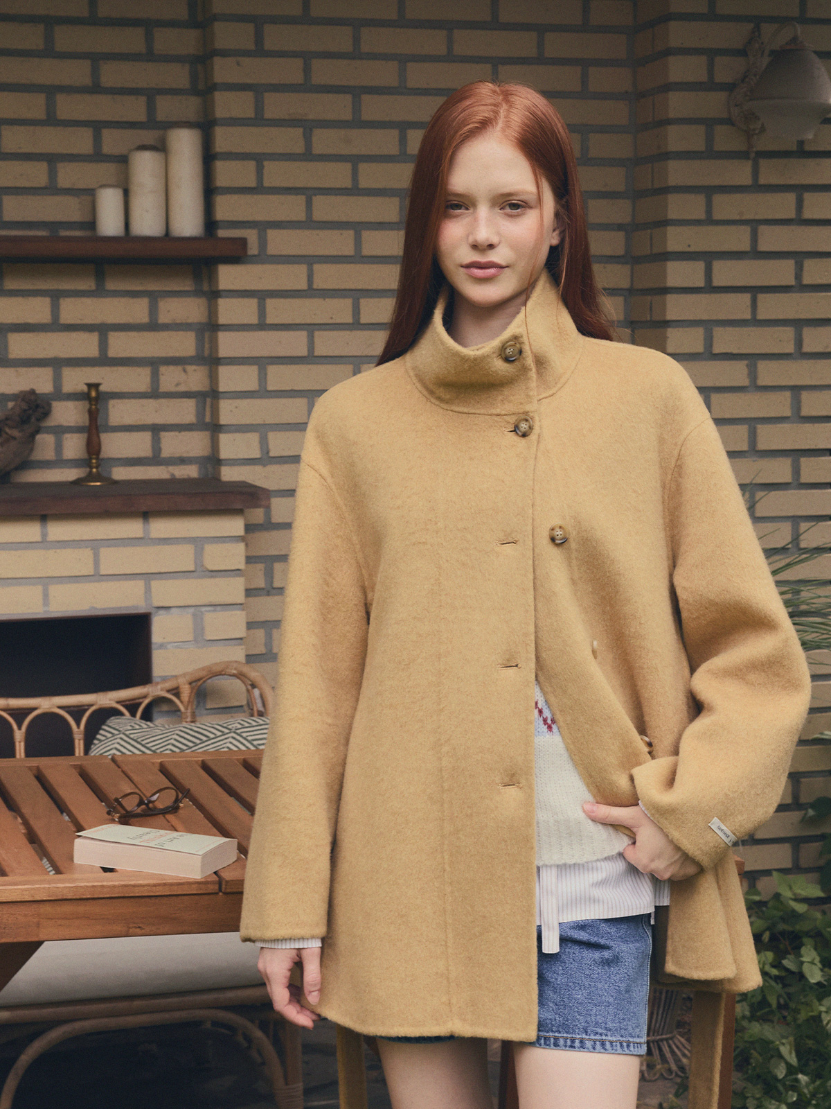 Heton High Neck Handmade Half Coat (with Strap)