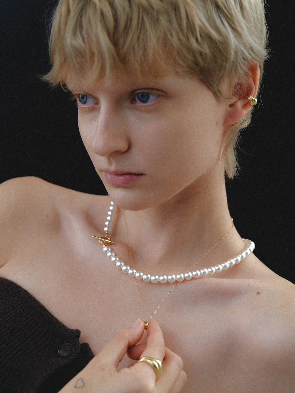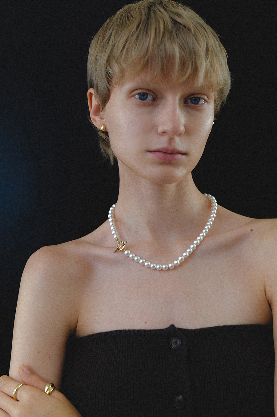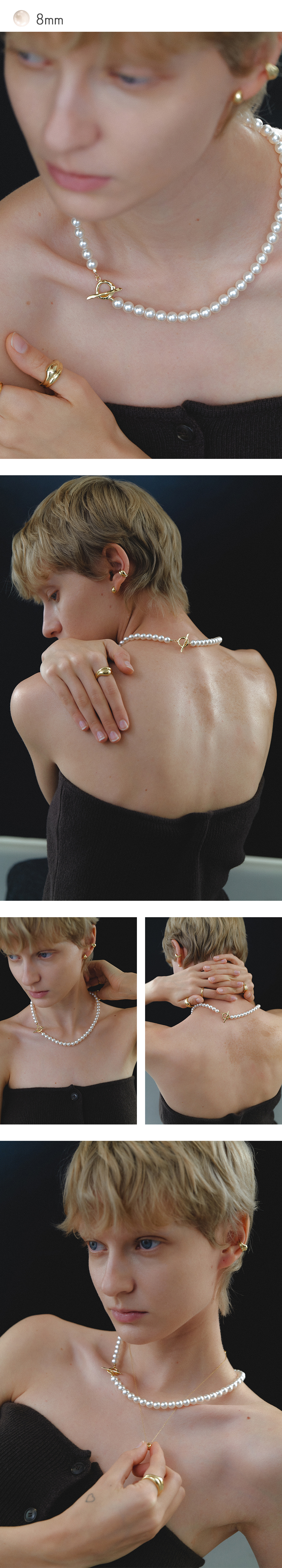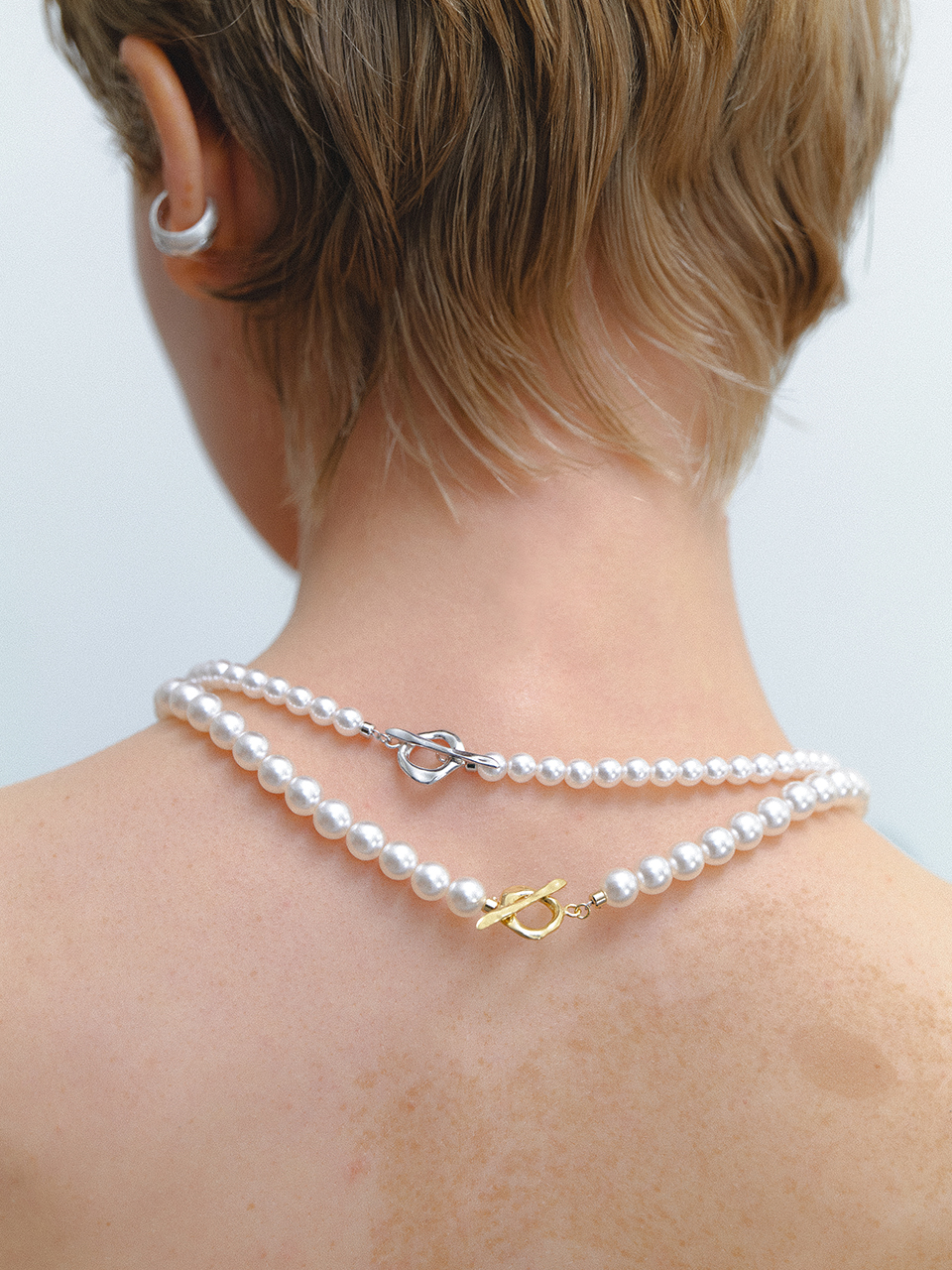 Wave Toggle Pearl Necklace (6mm/8mm)(2color)