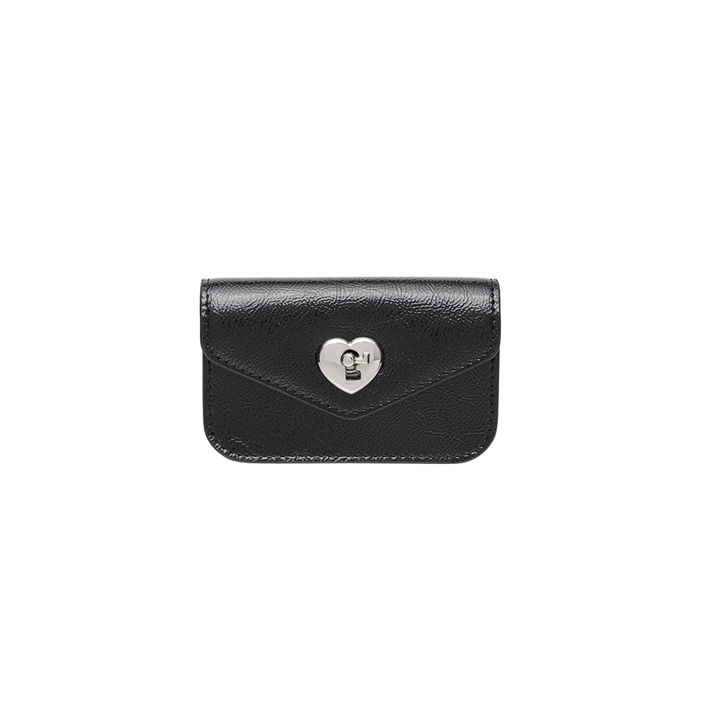 Heart Lock Compact Card Wallet Black