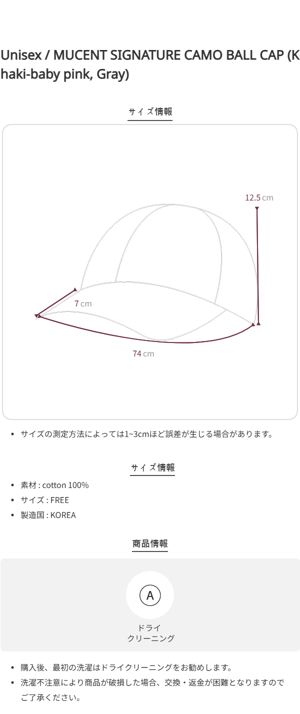 MUCENT SIGNATURE CAMO BALL CAP (Khaki-baby pink, Gray) キャップ