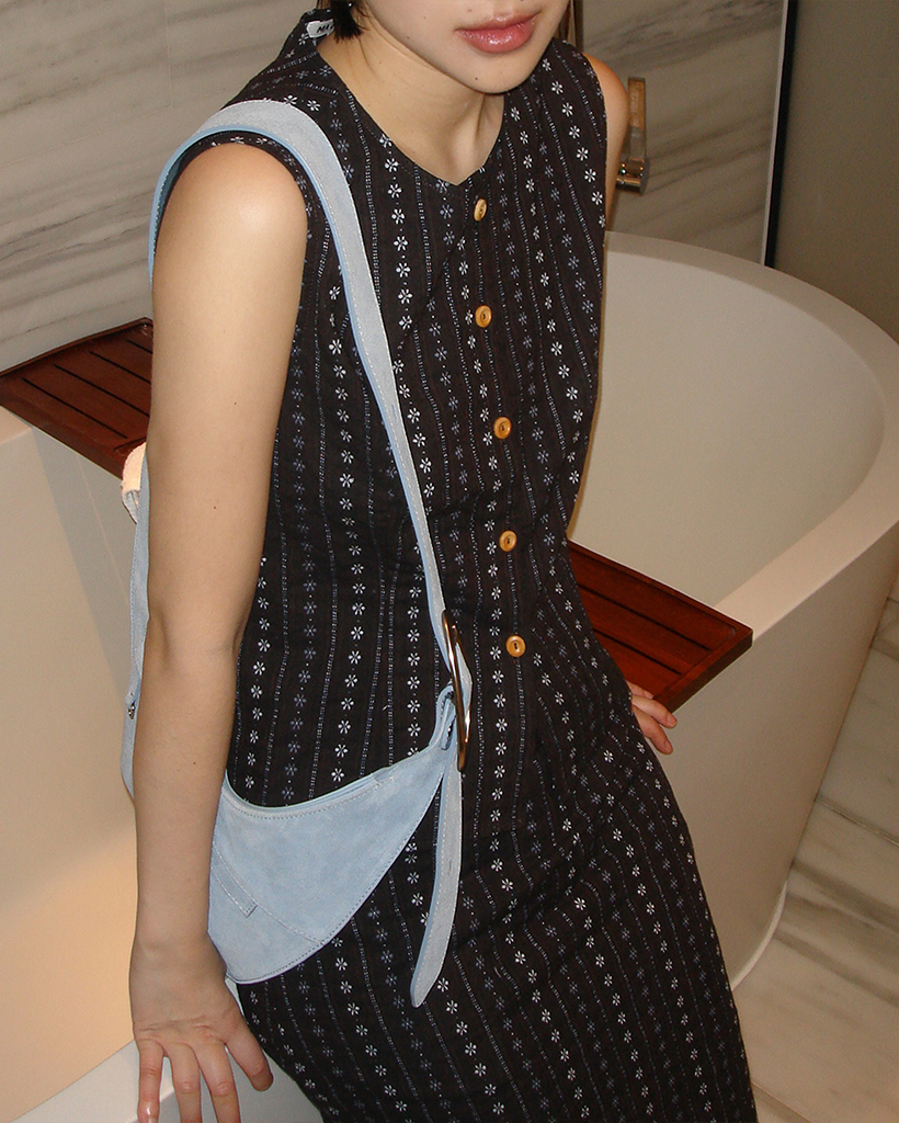 FLOWER JACQUARD SLEEVELESS SHIRT_DARK BROWN
