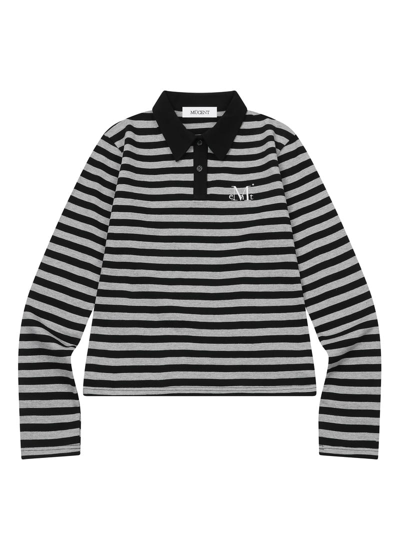 BYZE CRACK BACK 72 STRIPE COLLAR LONG SLEEVE T