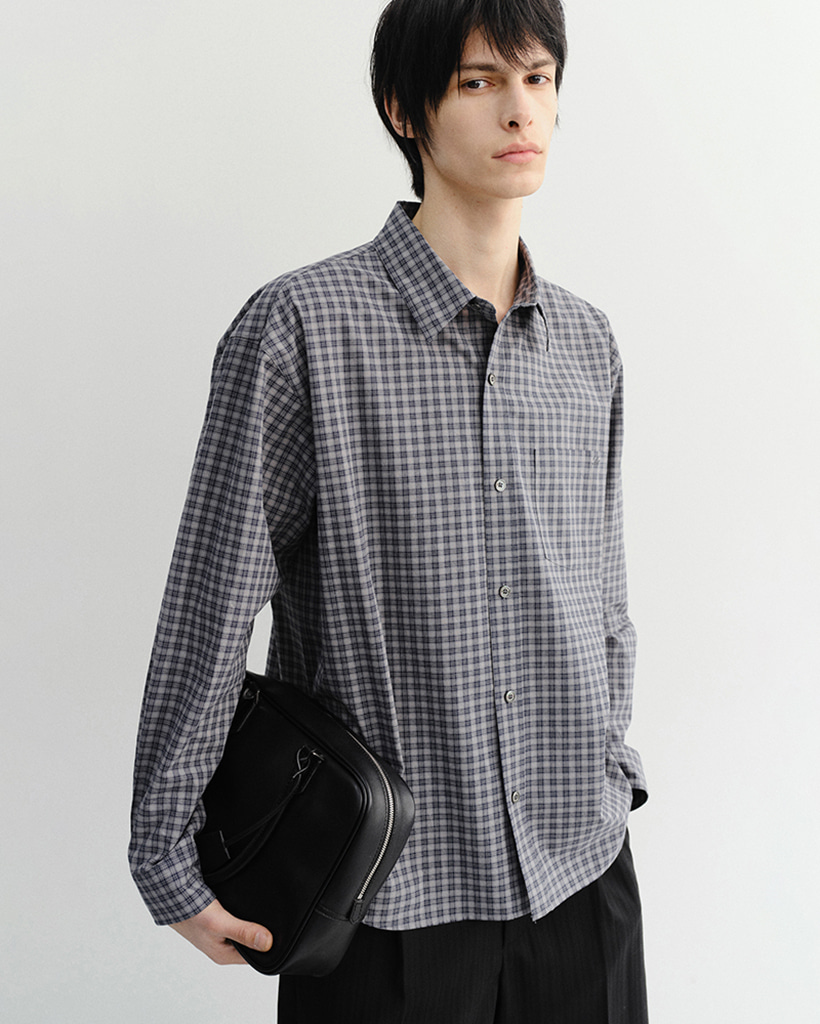 UNISEX CROPPED CHECKED SHIRT NAVY CHECK_M_UDSH6A116N2
