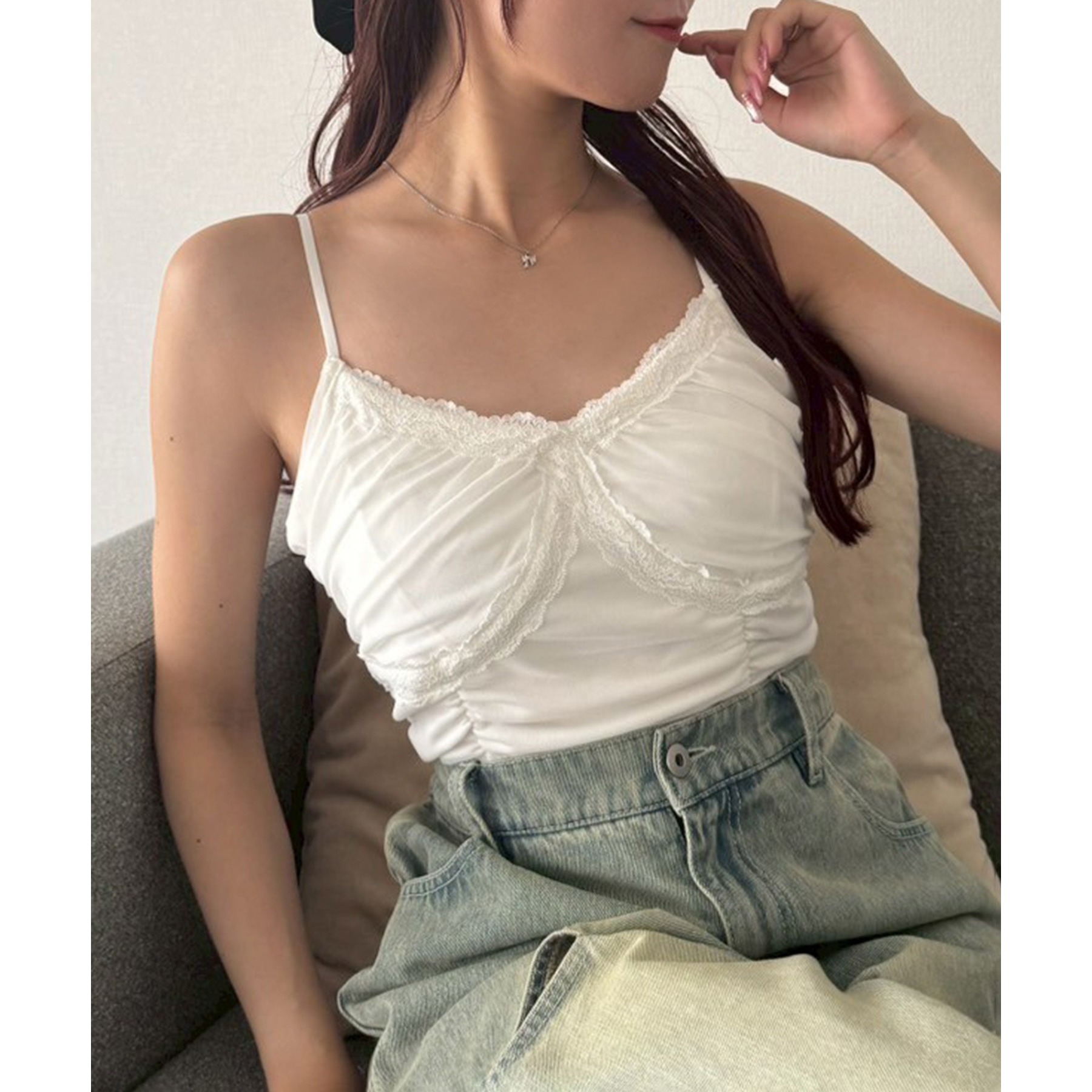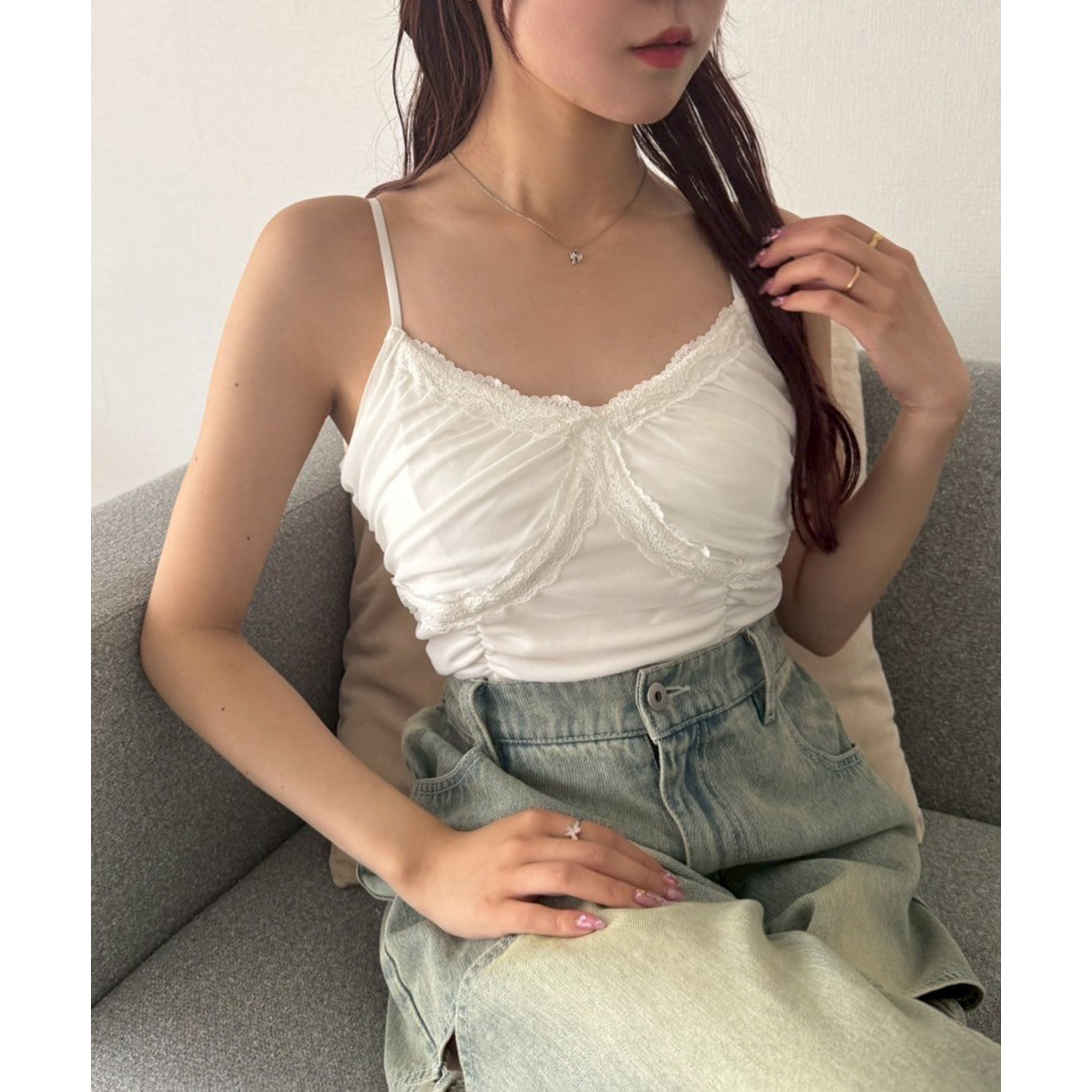 カップ付きなので一枚でさらっと着られるのが嬉しいポイント◎
