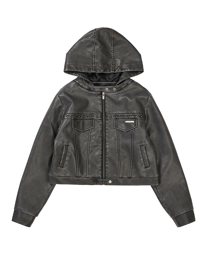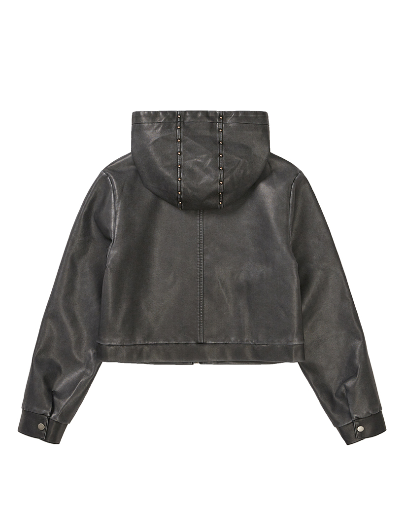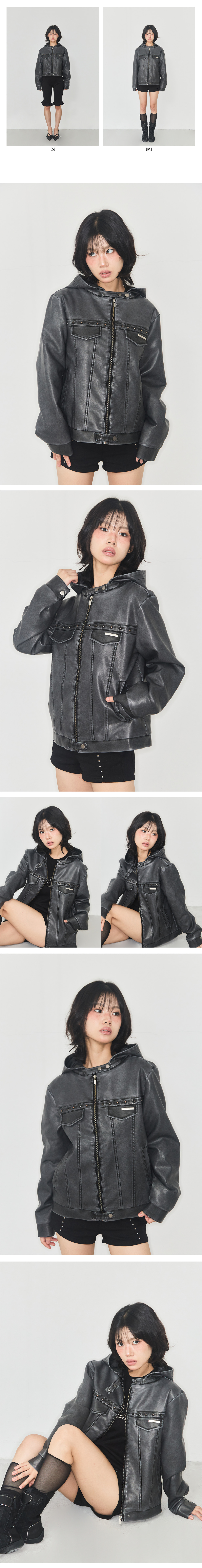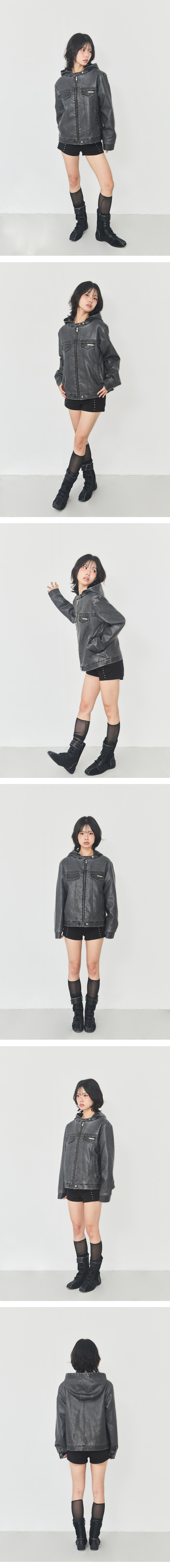 [Kアイドル着用] Track Leather Hoodie Jacket Charcol