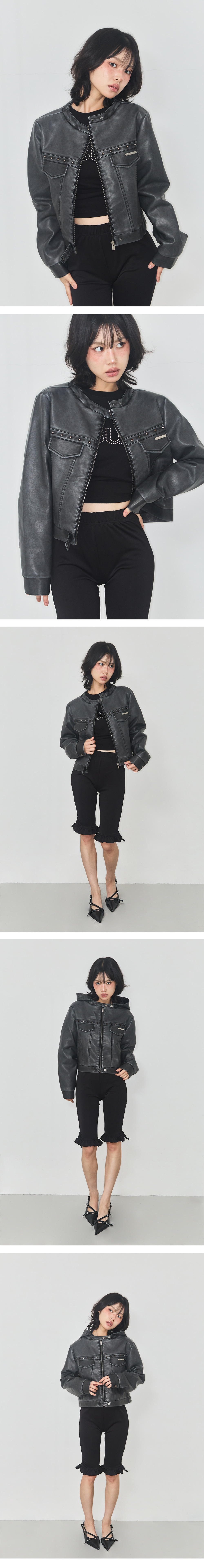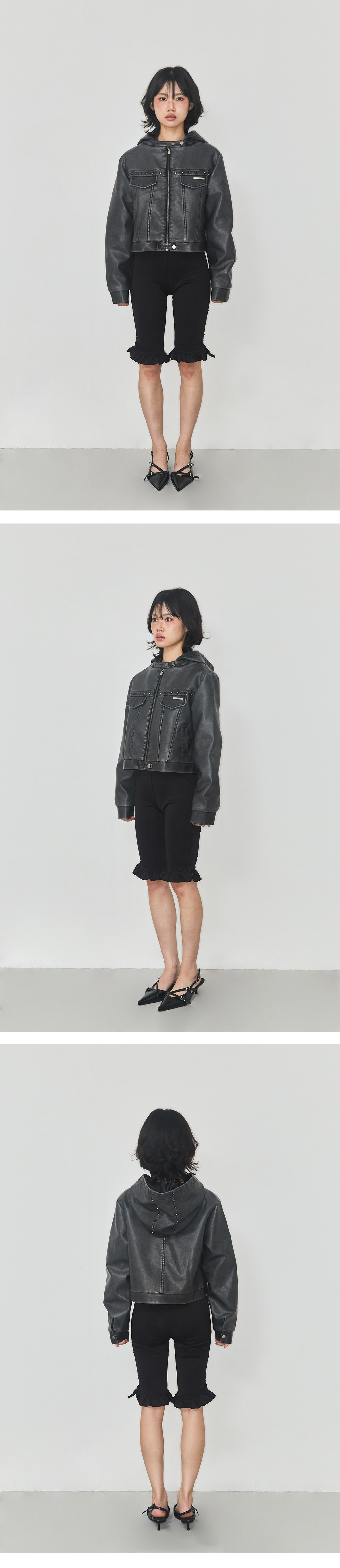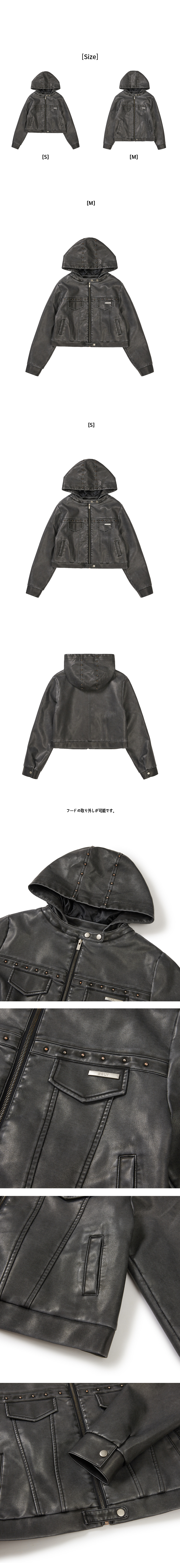 [Kアイドル着用] Track Leather Hoodie Jacket Charcol