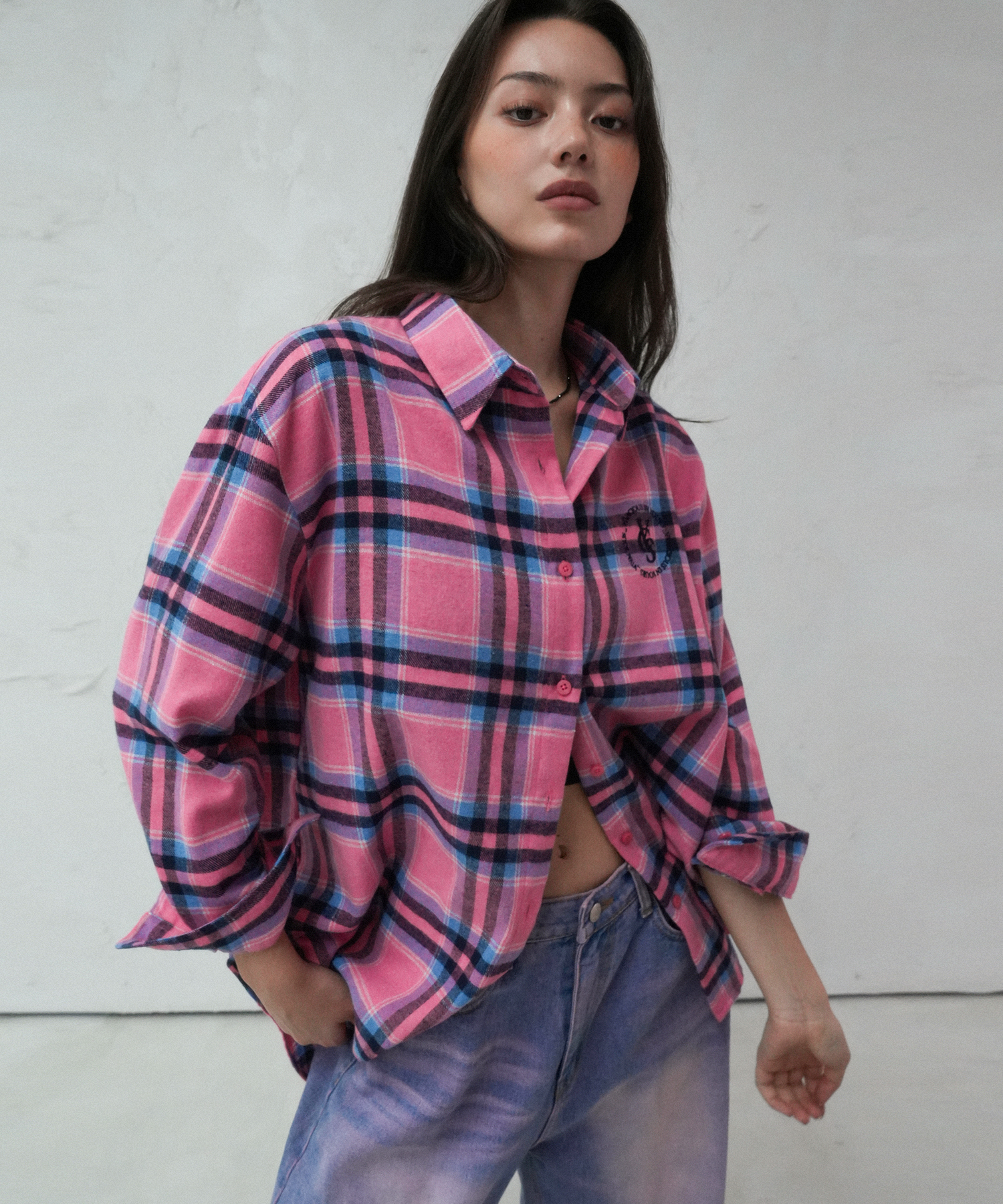 Pop Over Check Shirt PINK