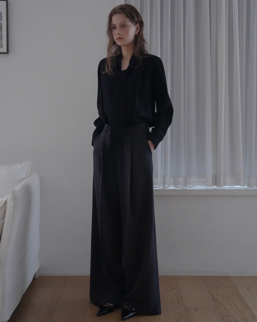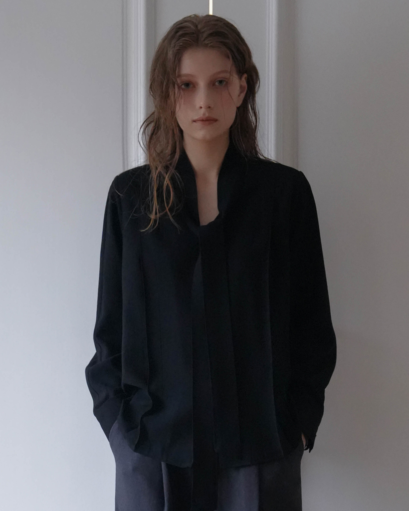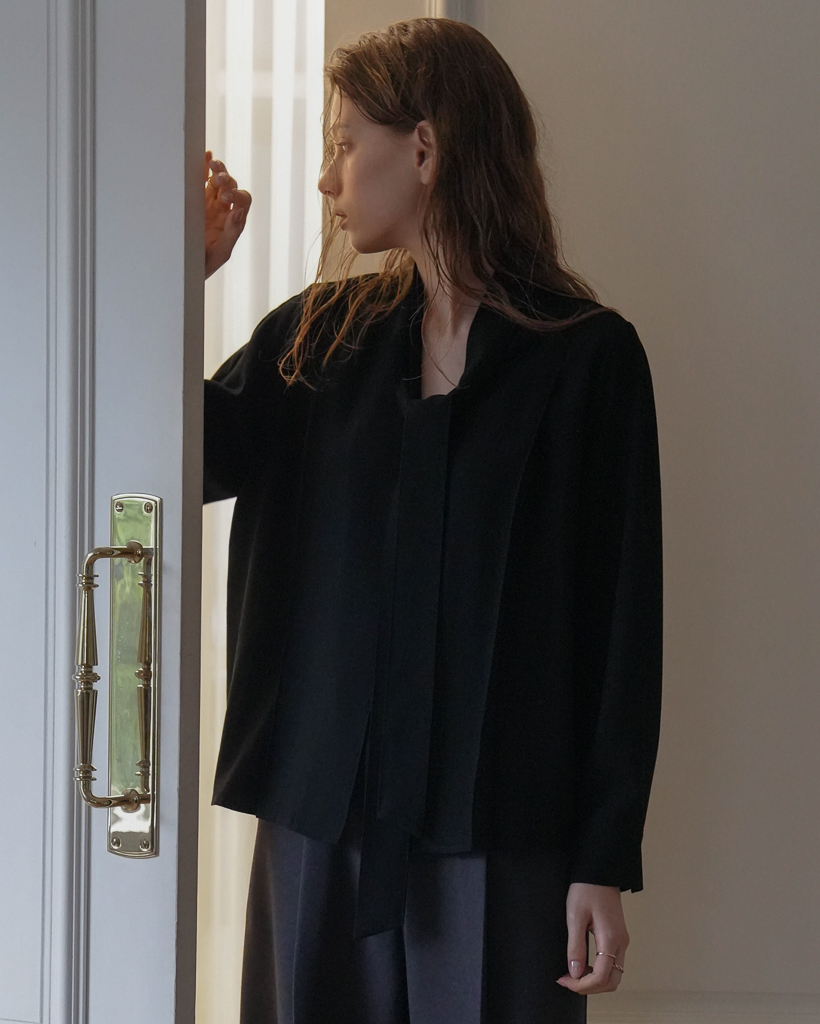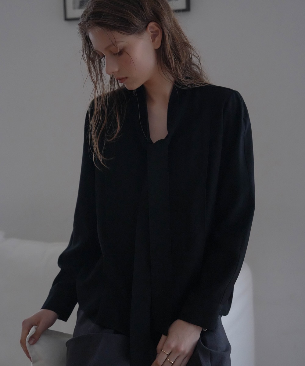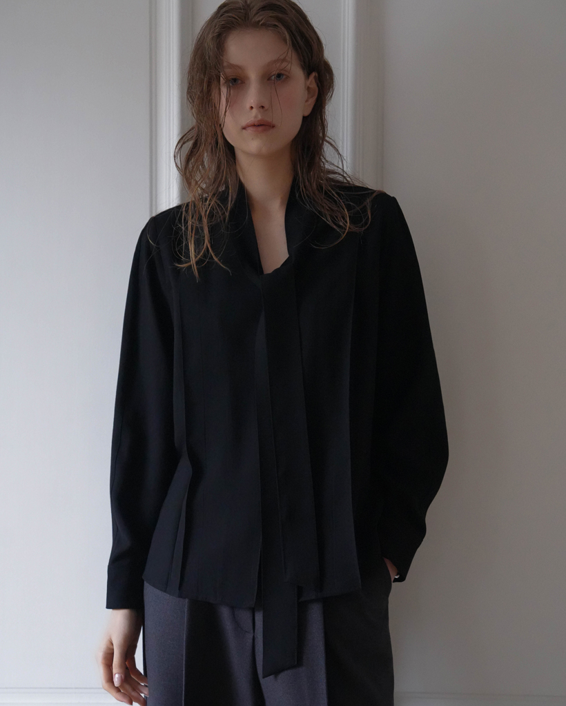 Tie Button Point Blouse [Black]