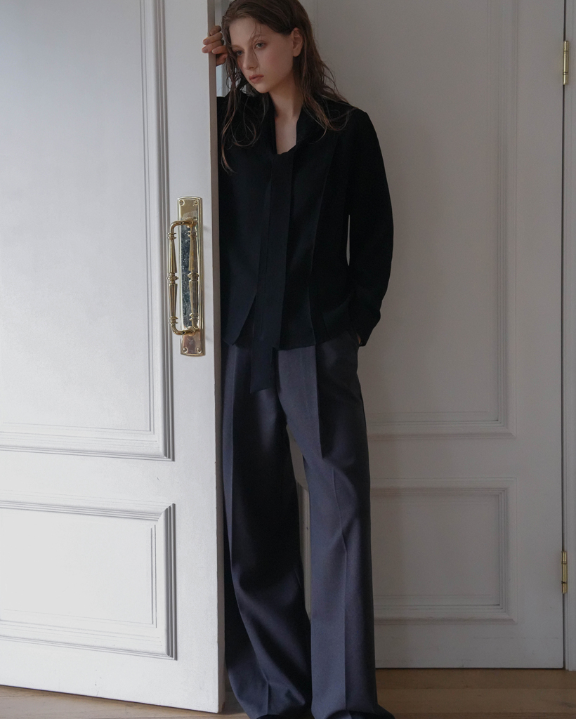 リボンタイディテールを施したネックラインが、クラシックで女性らしいムードを引き立てます。