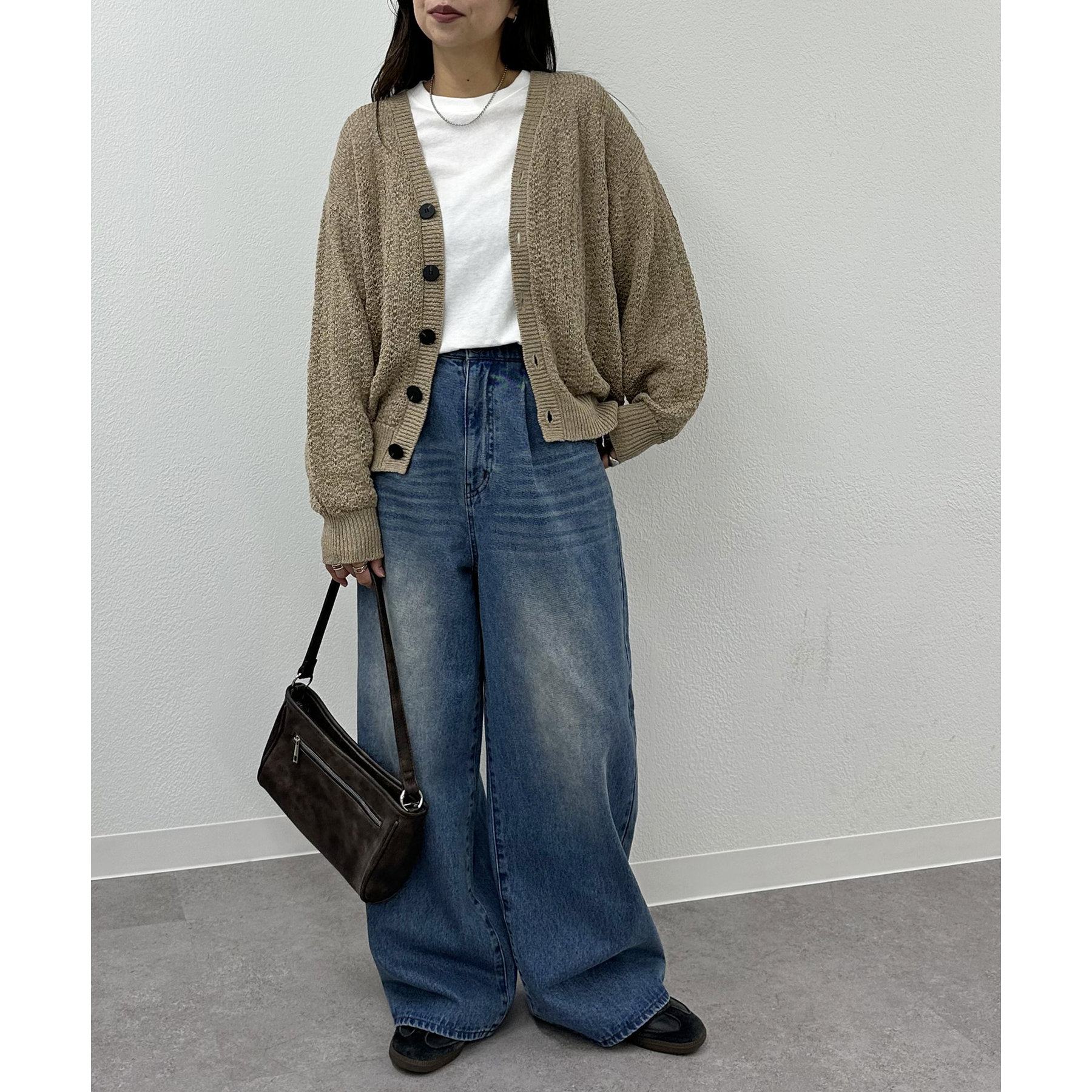 キャミソールやコンパクトなトップスと合わせるとメリハリが出ますが、ゆったりとしたトップスとも合わせやすいサイズ感です。