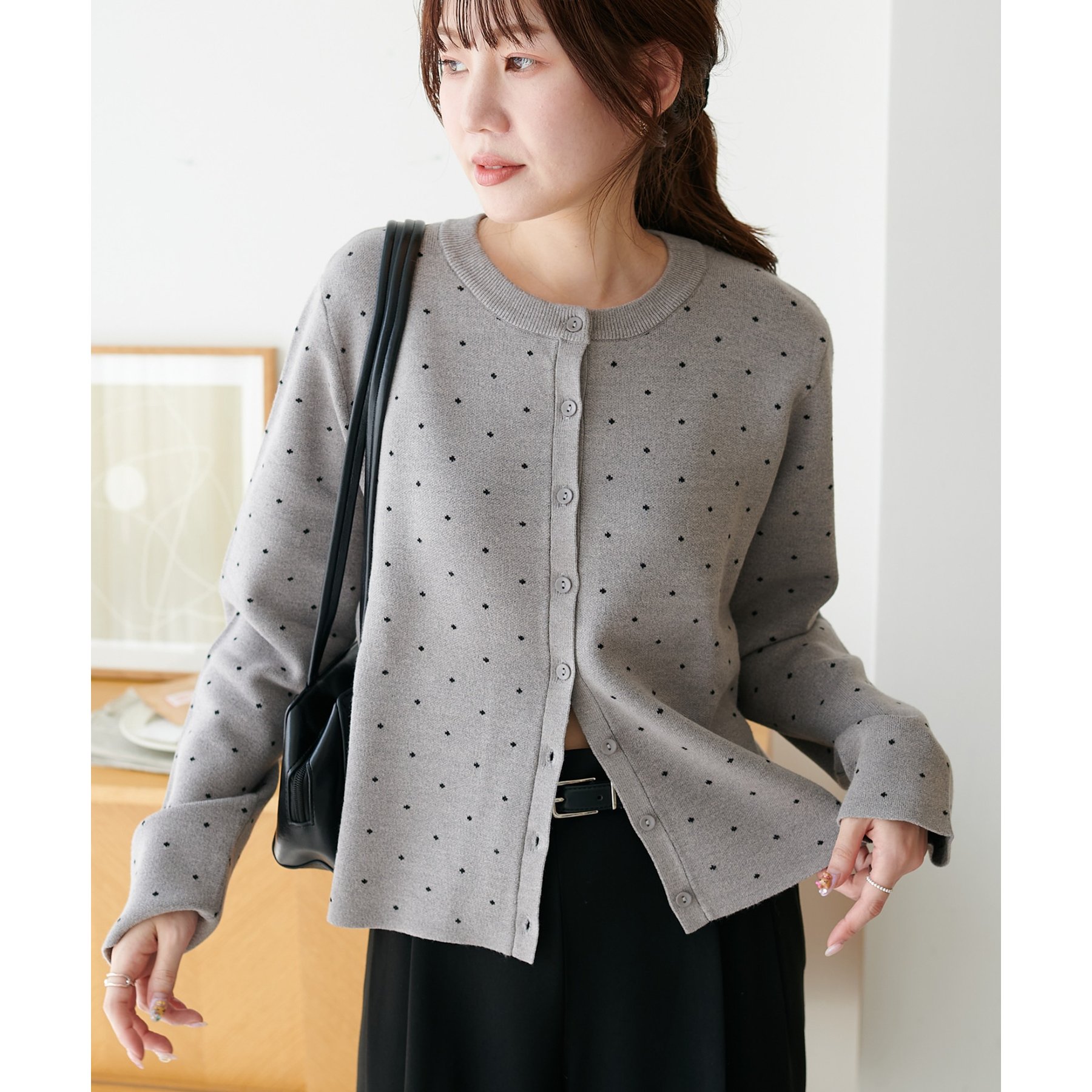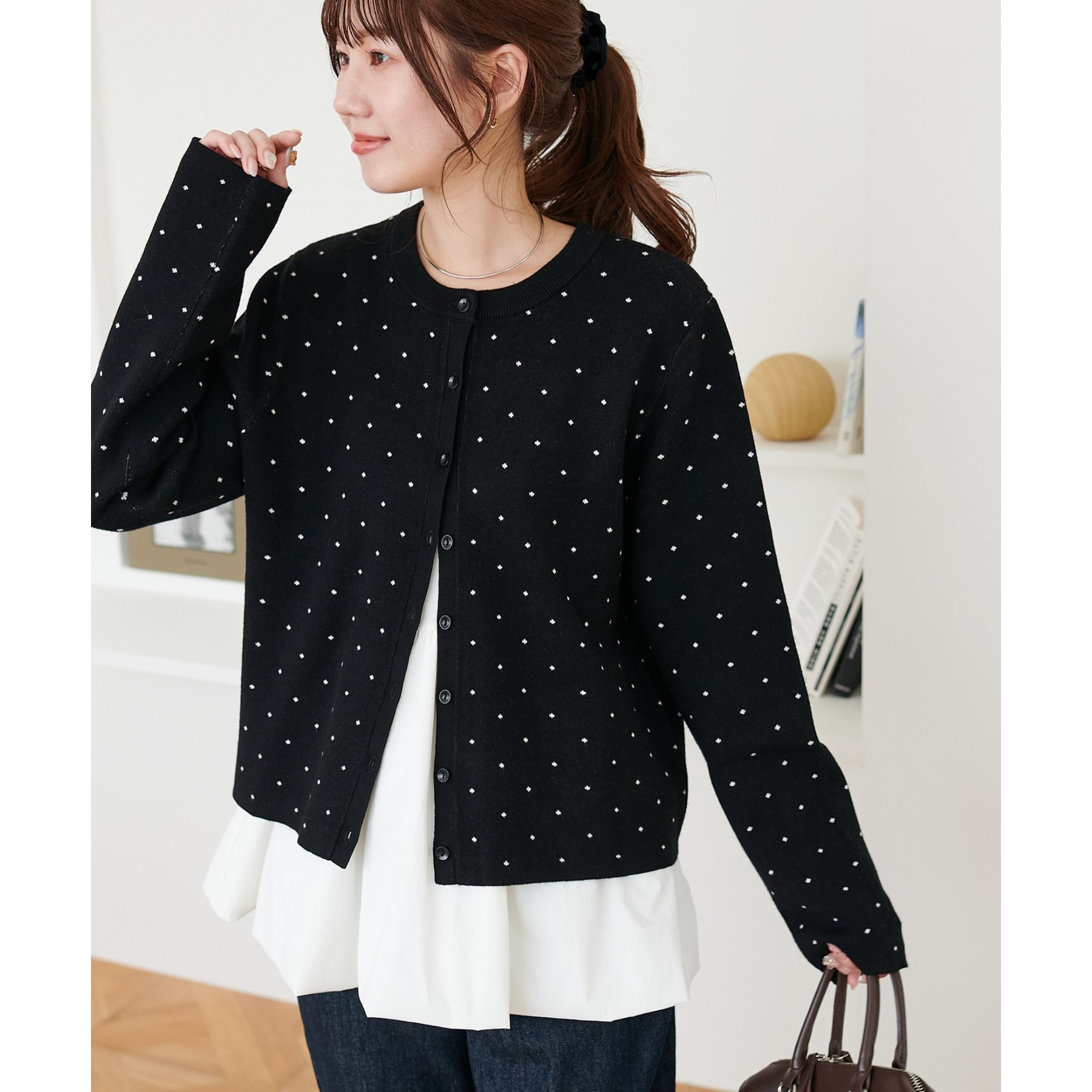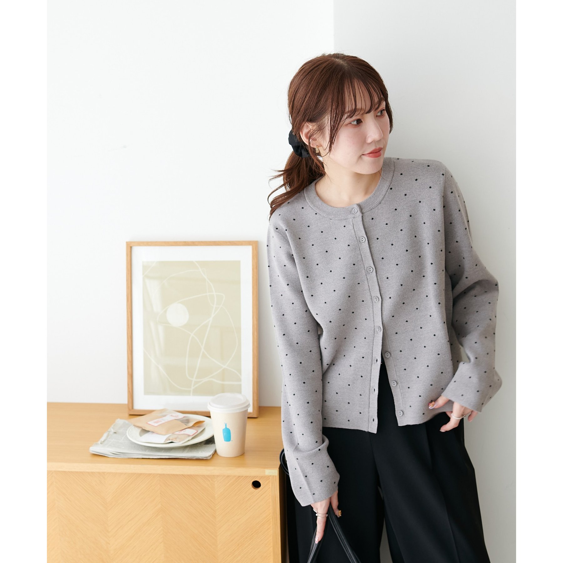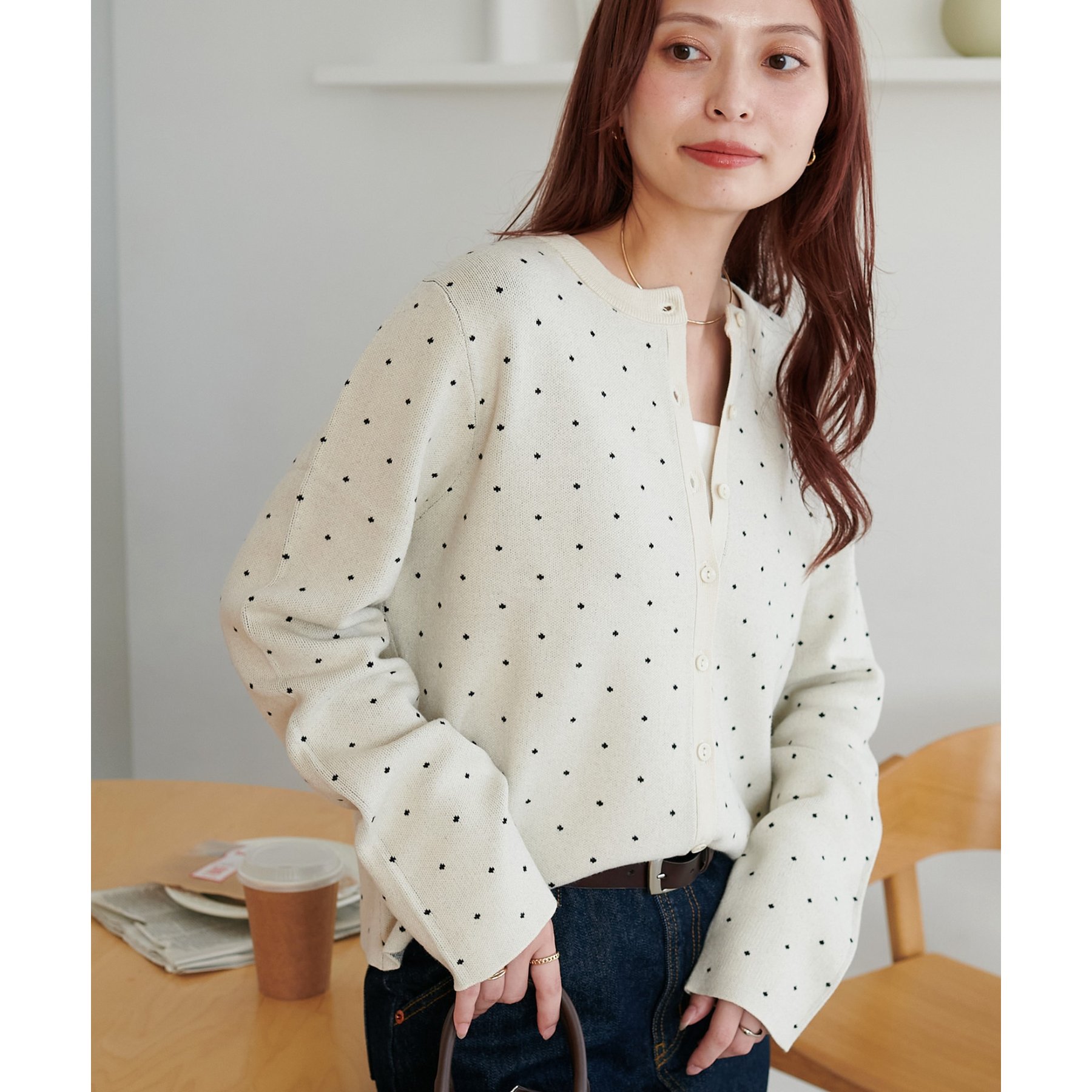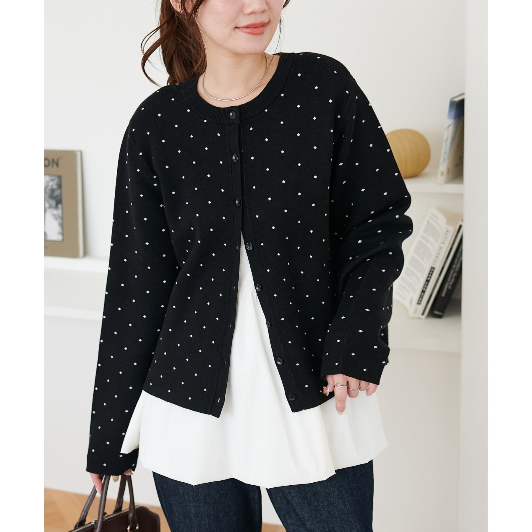 甘さ控えめ、大人に似合うドットカーディガン