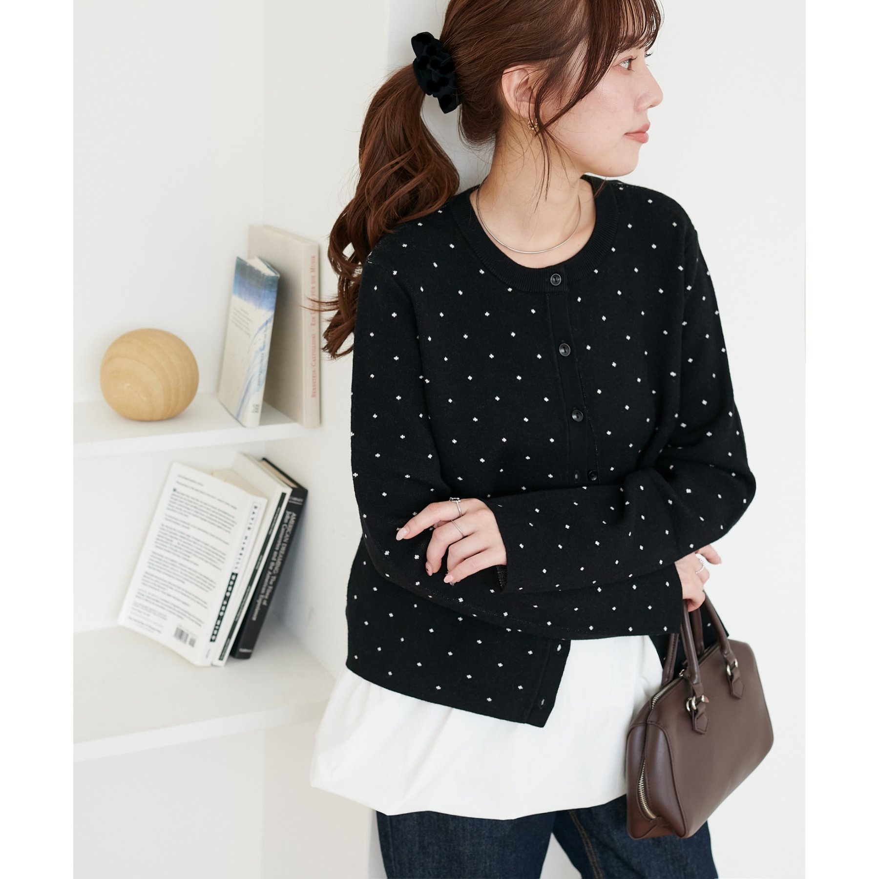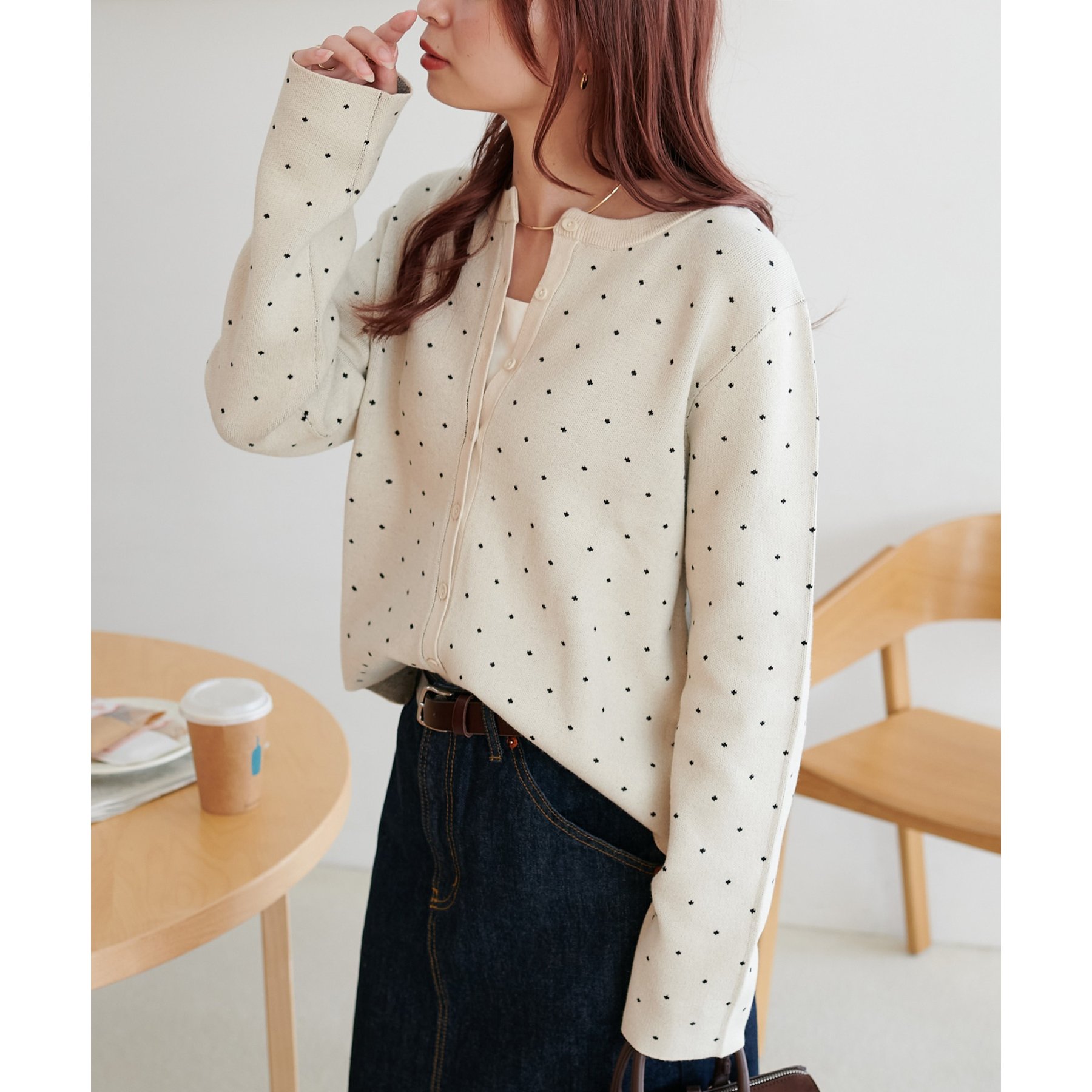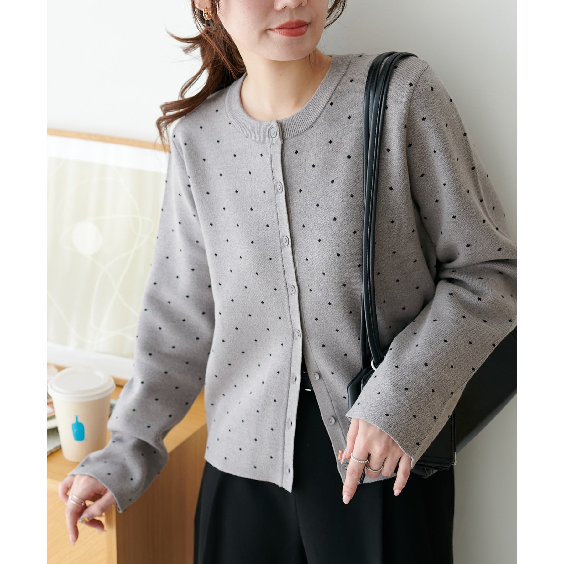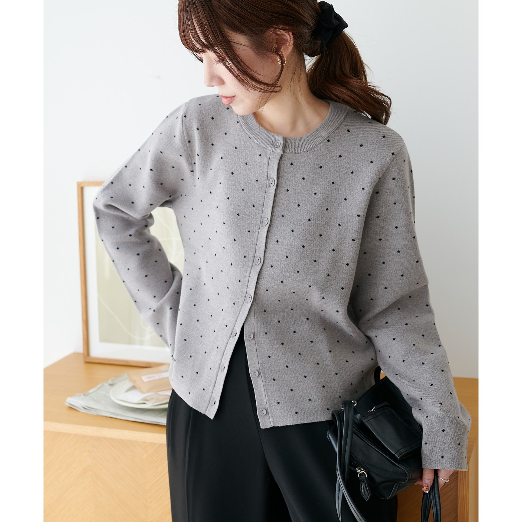 甘さ控えめ、大人に似合うドットカーディガン