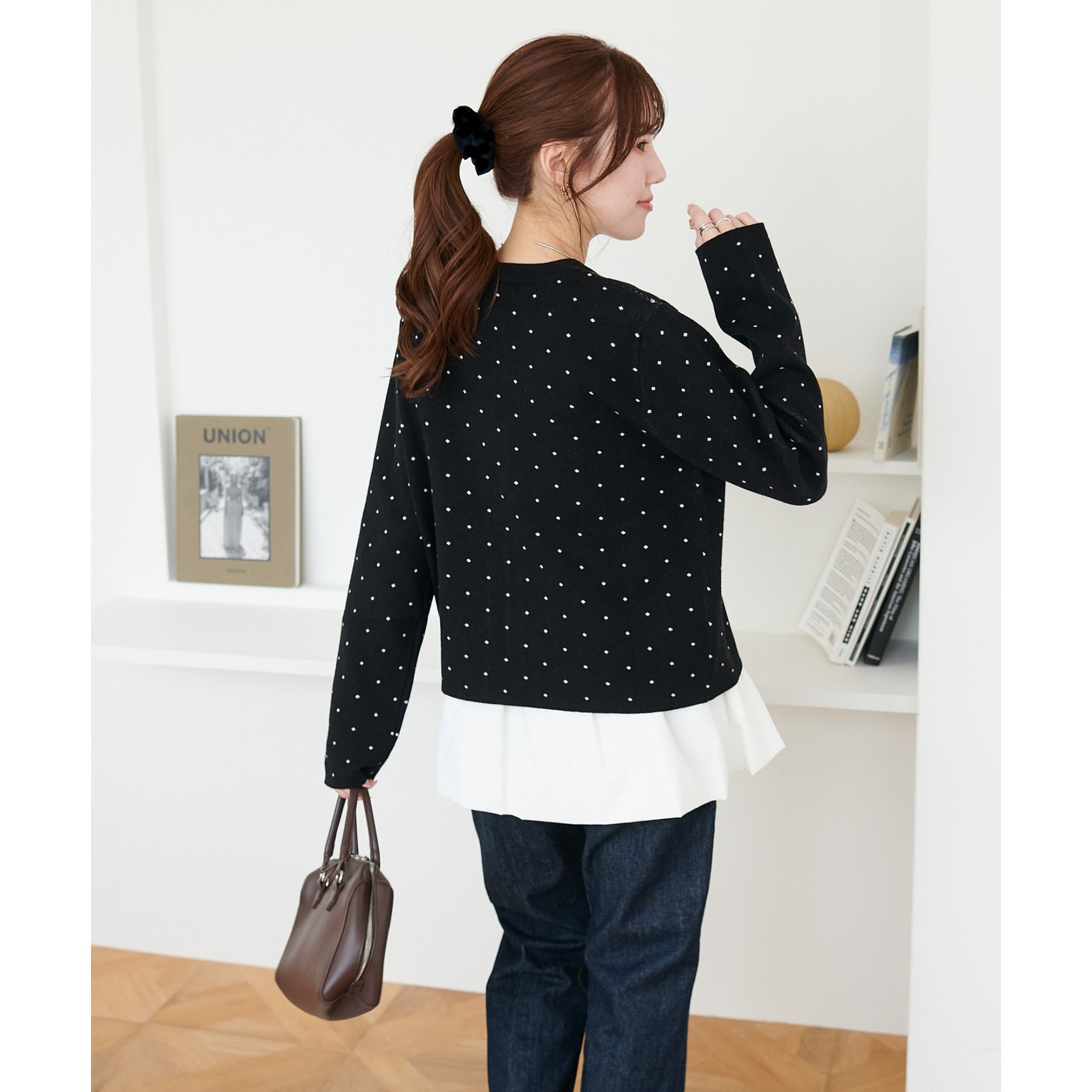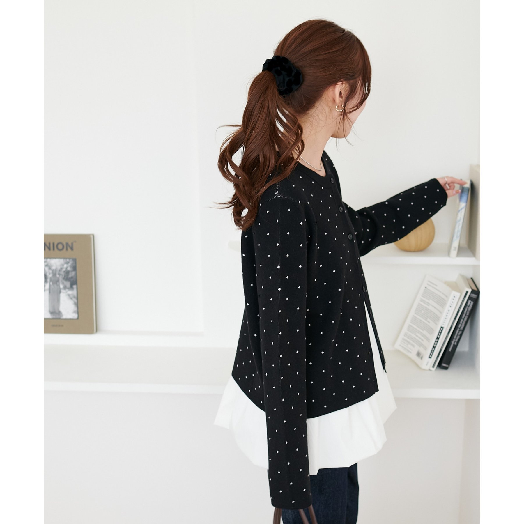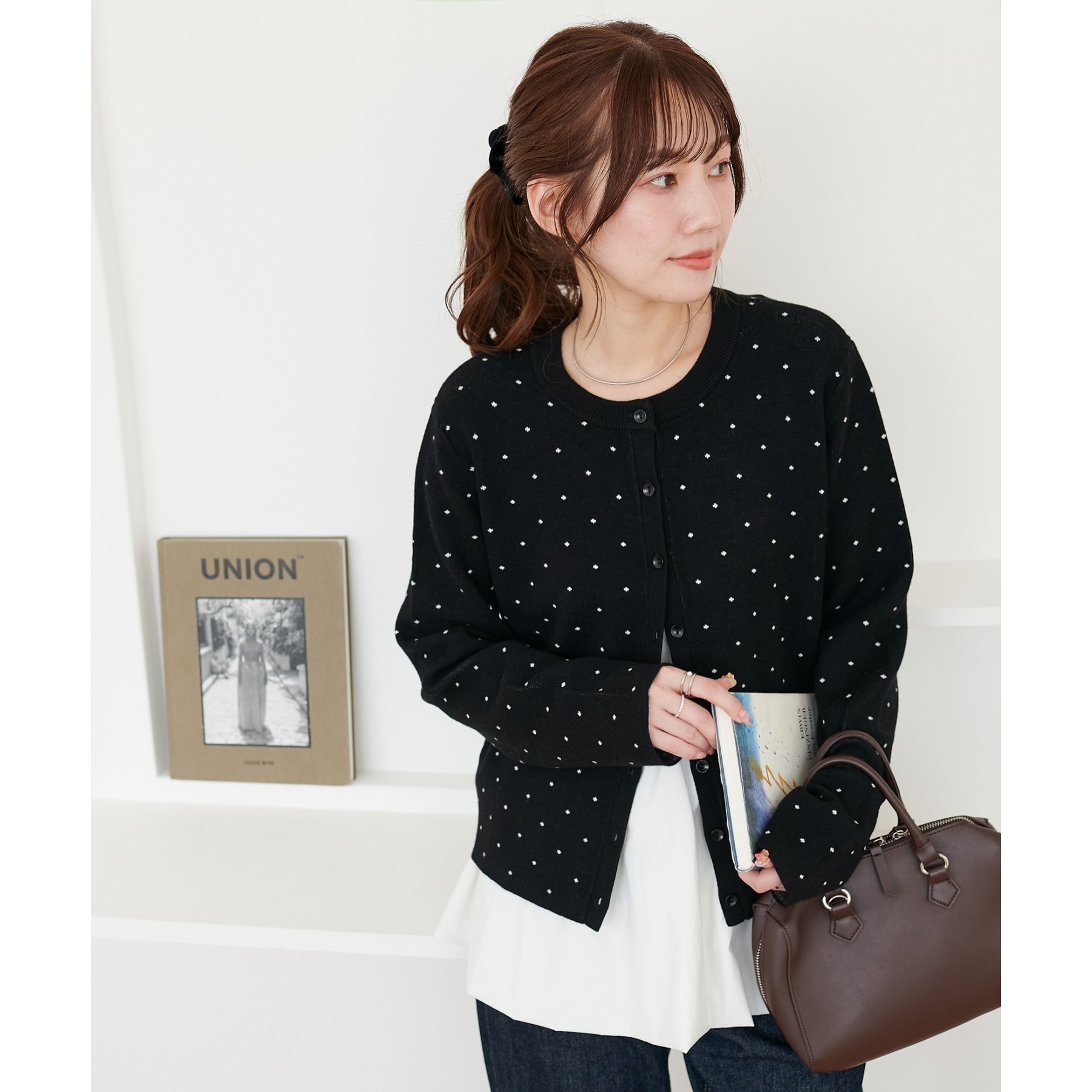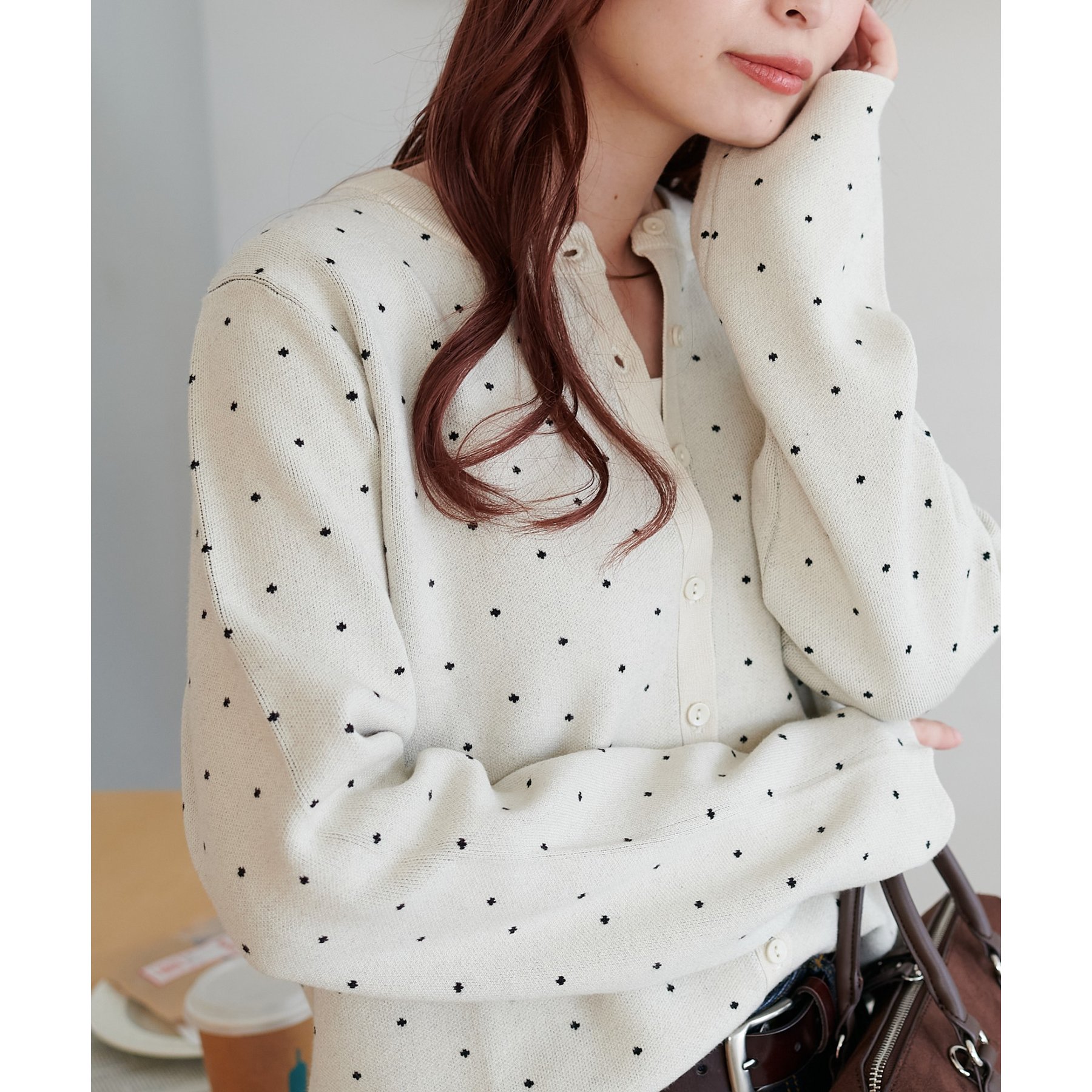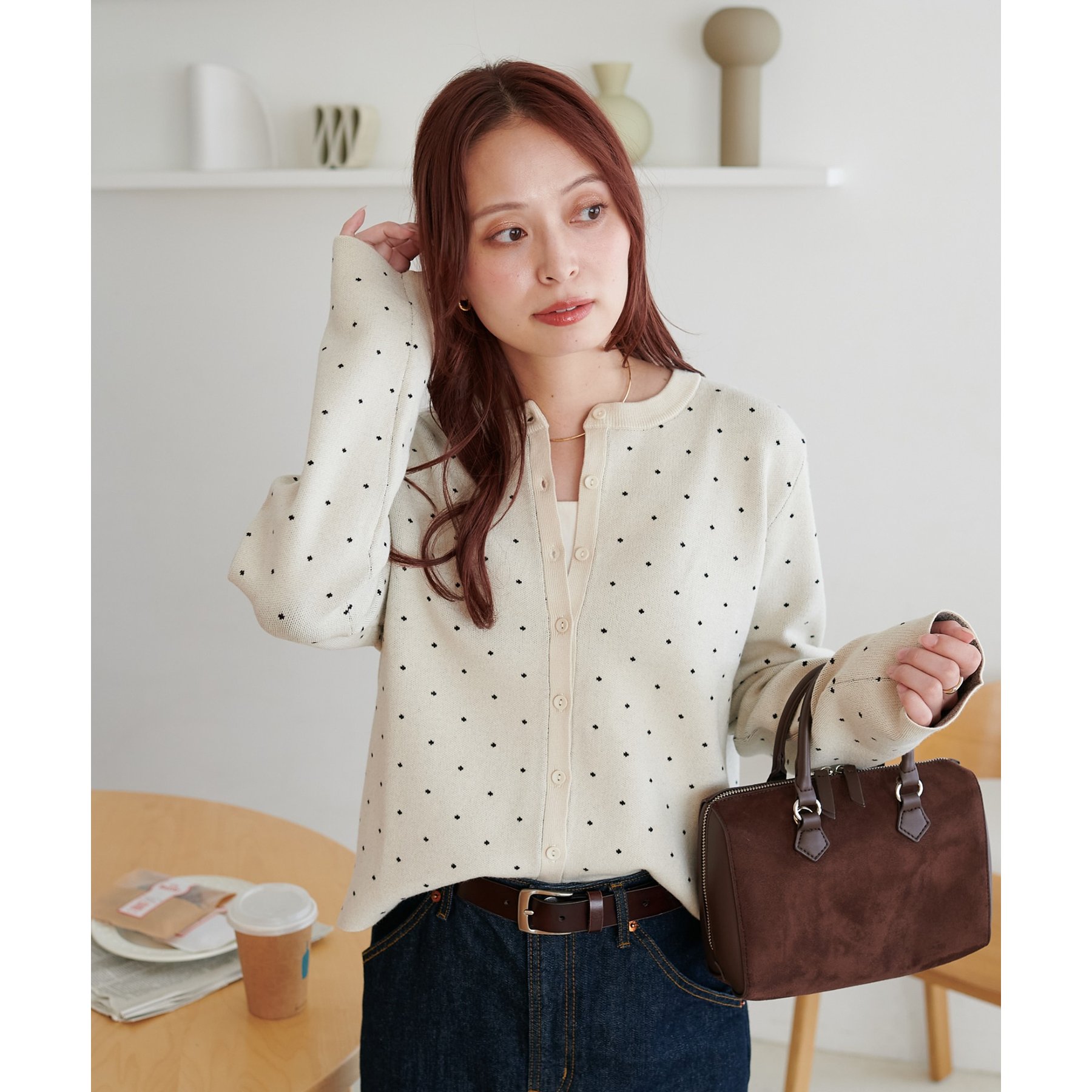 甘さ控えめ、大人に似合うドットカーディガン