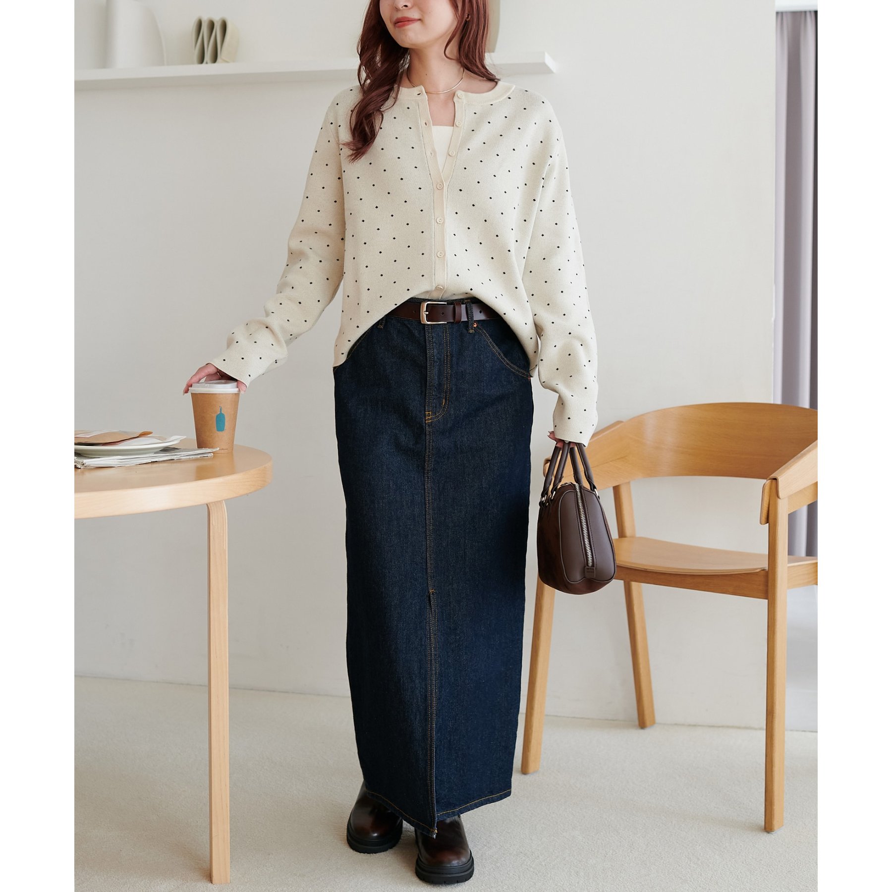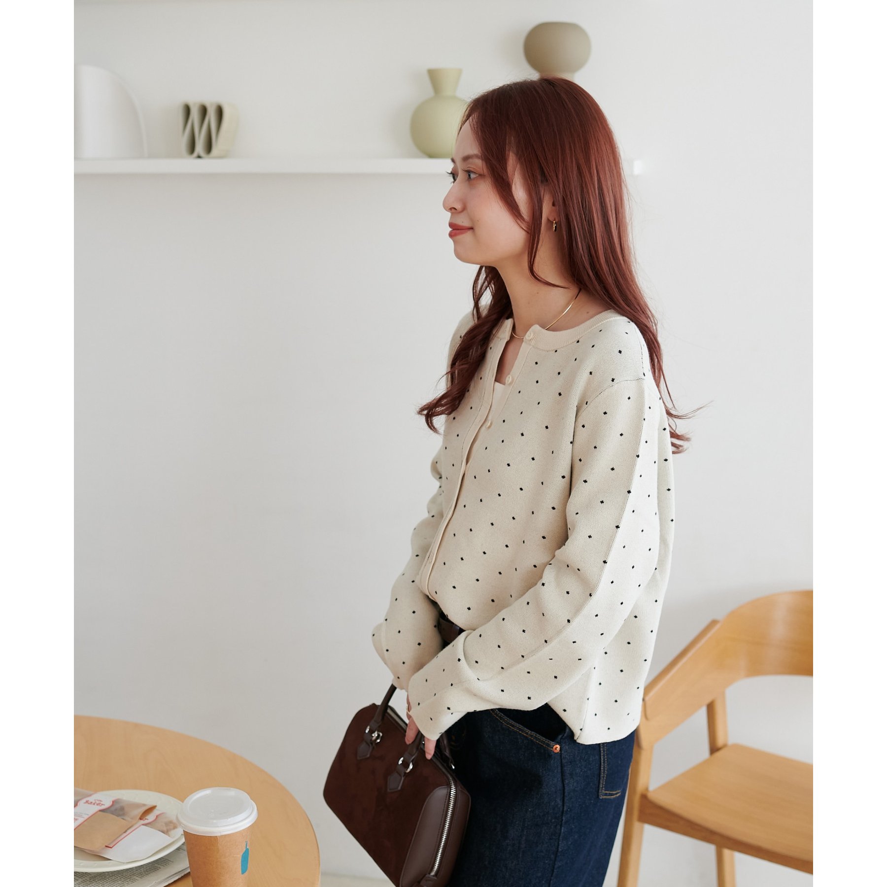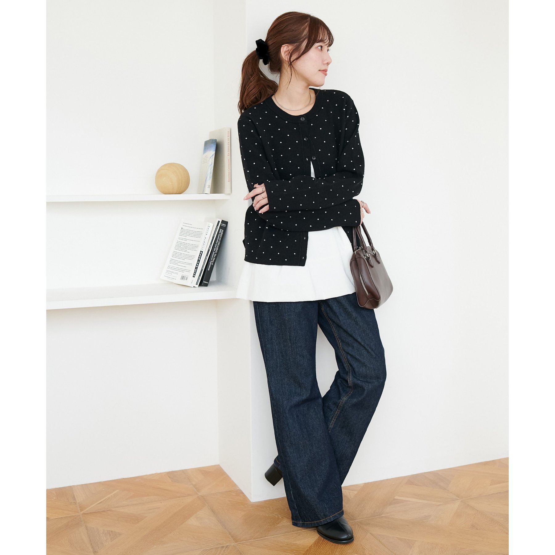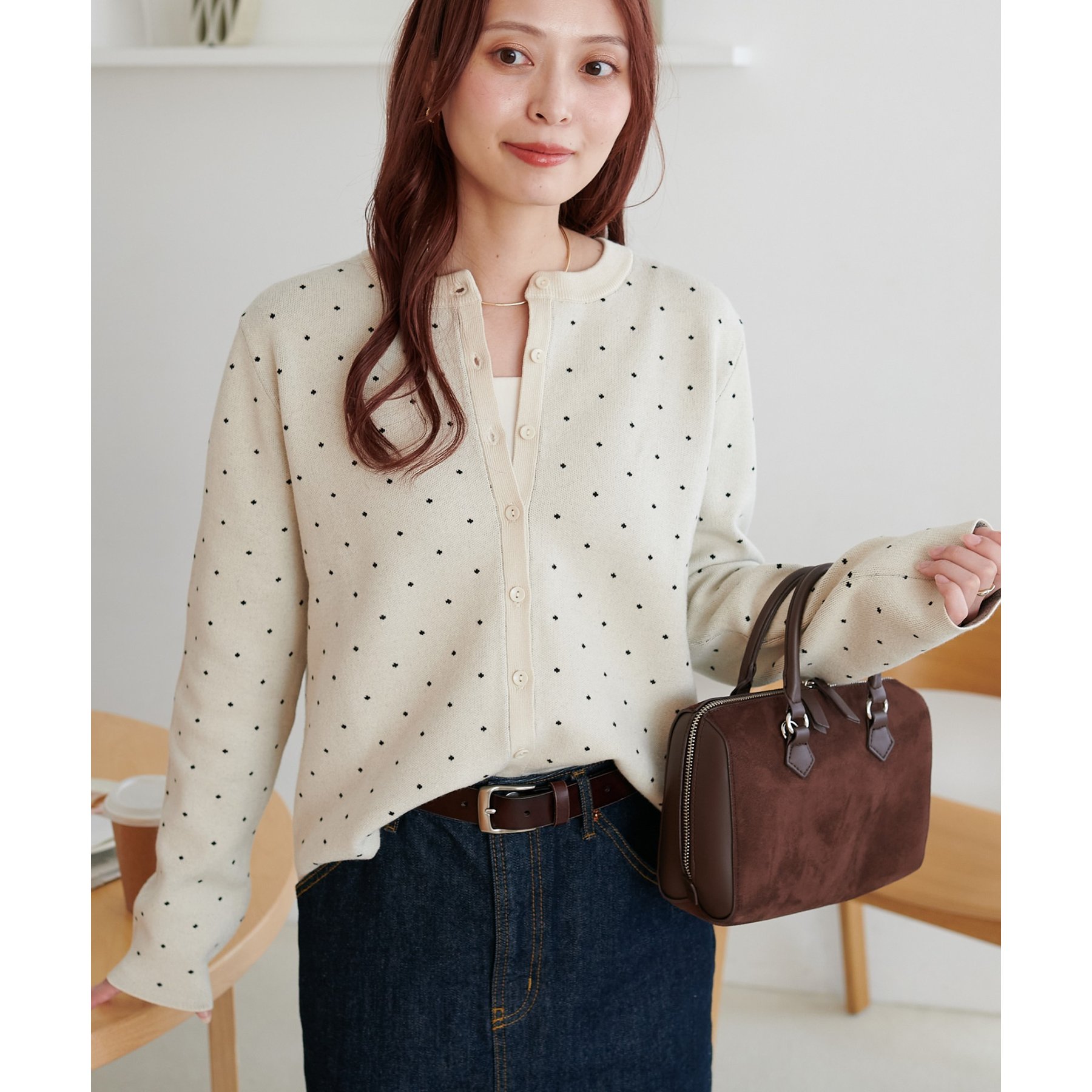 甘さ控えめ、大人に似合うドットカーディガン