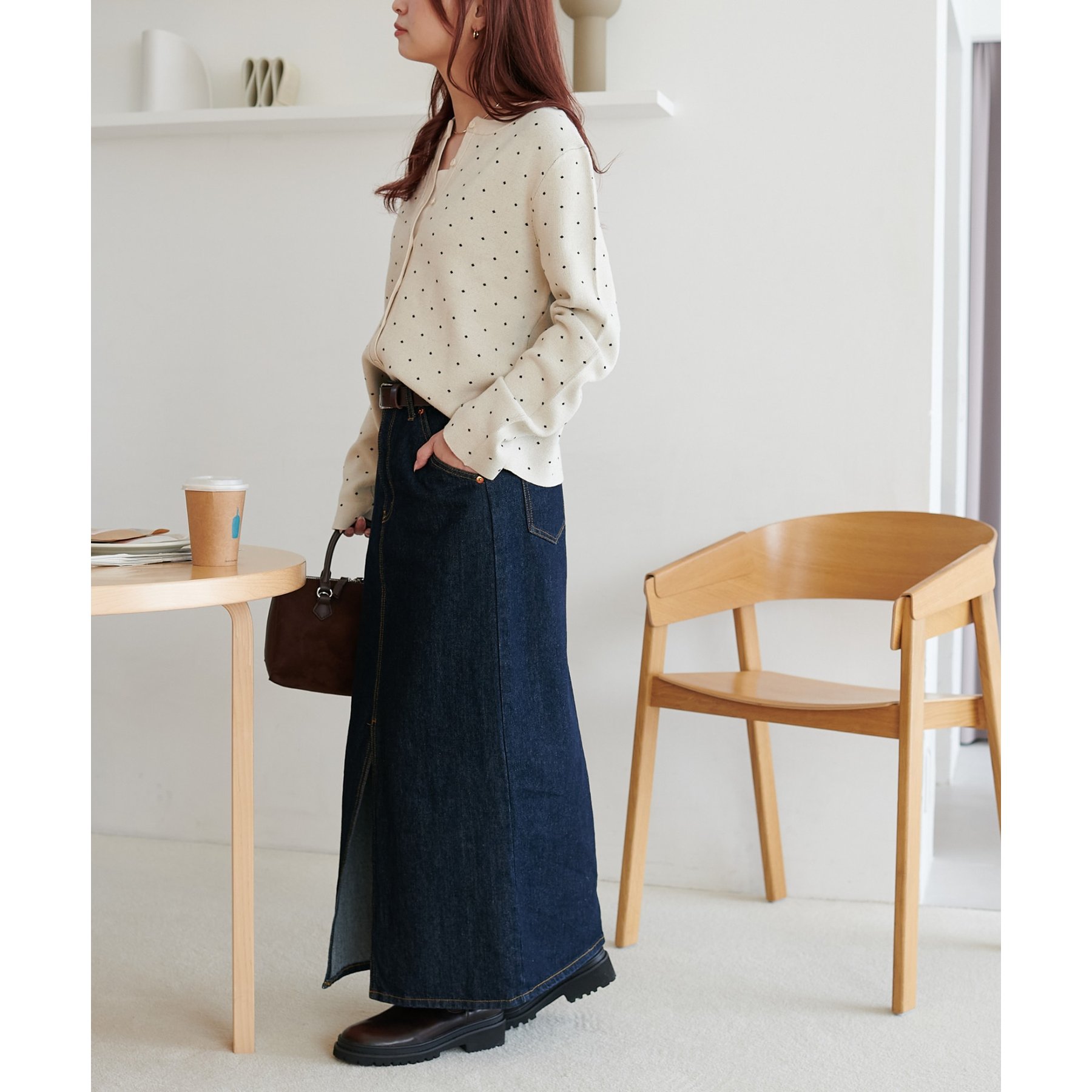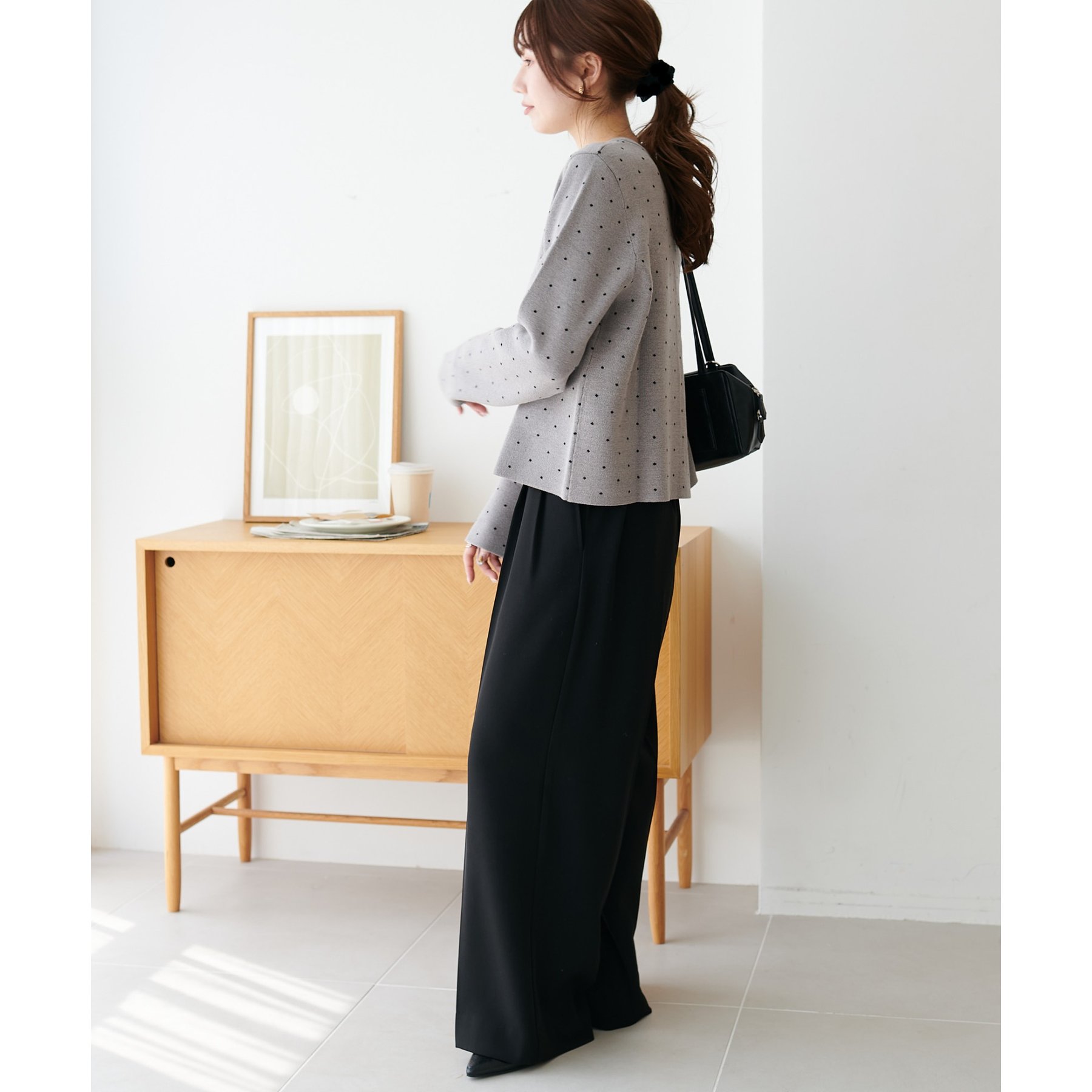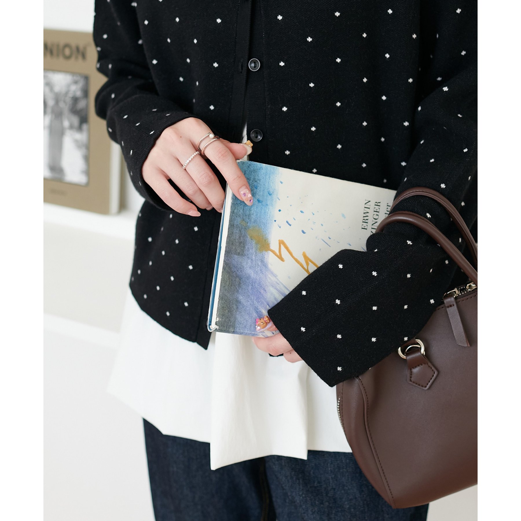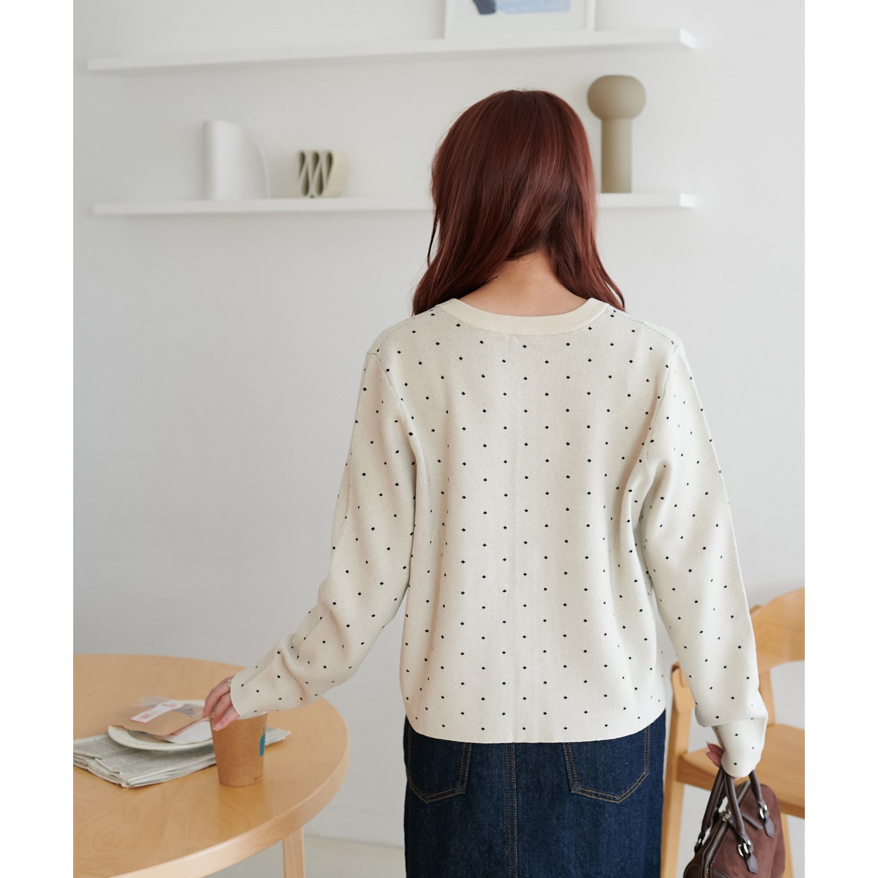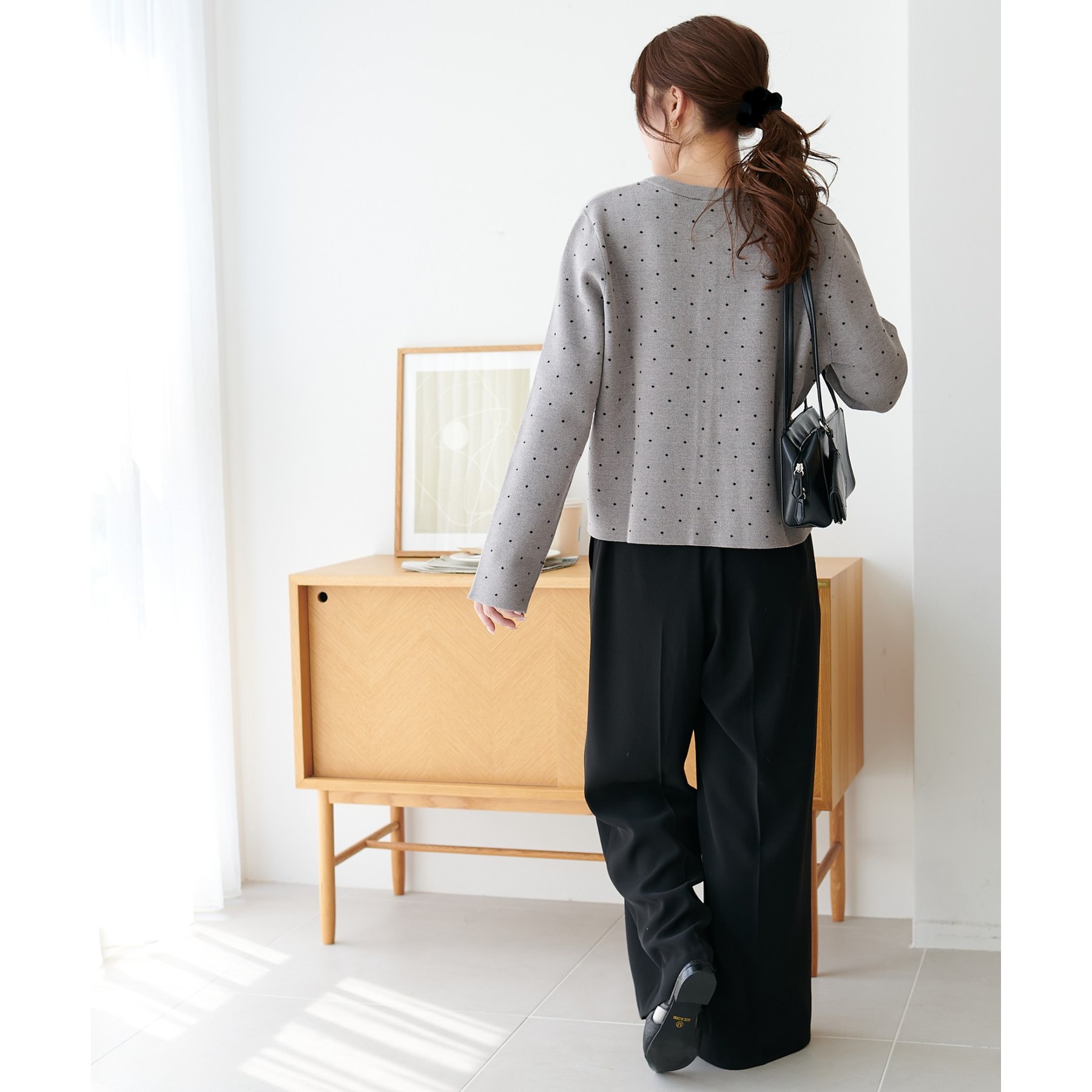 甘さ控えめ、大人に似合うドットカーディガン