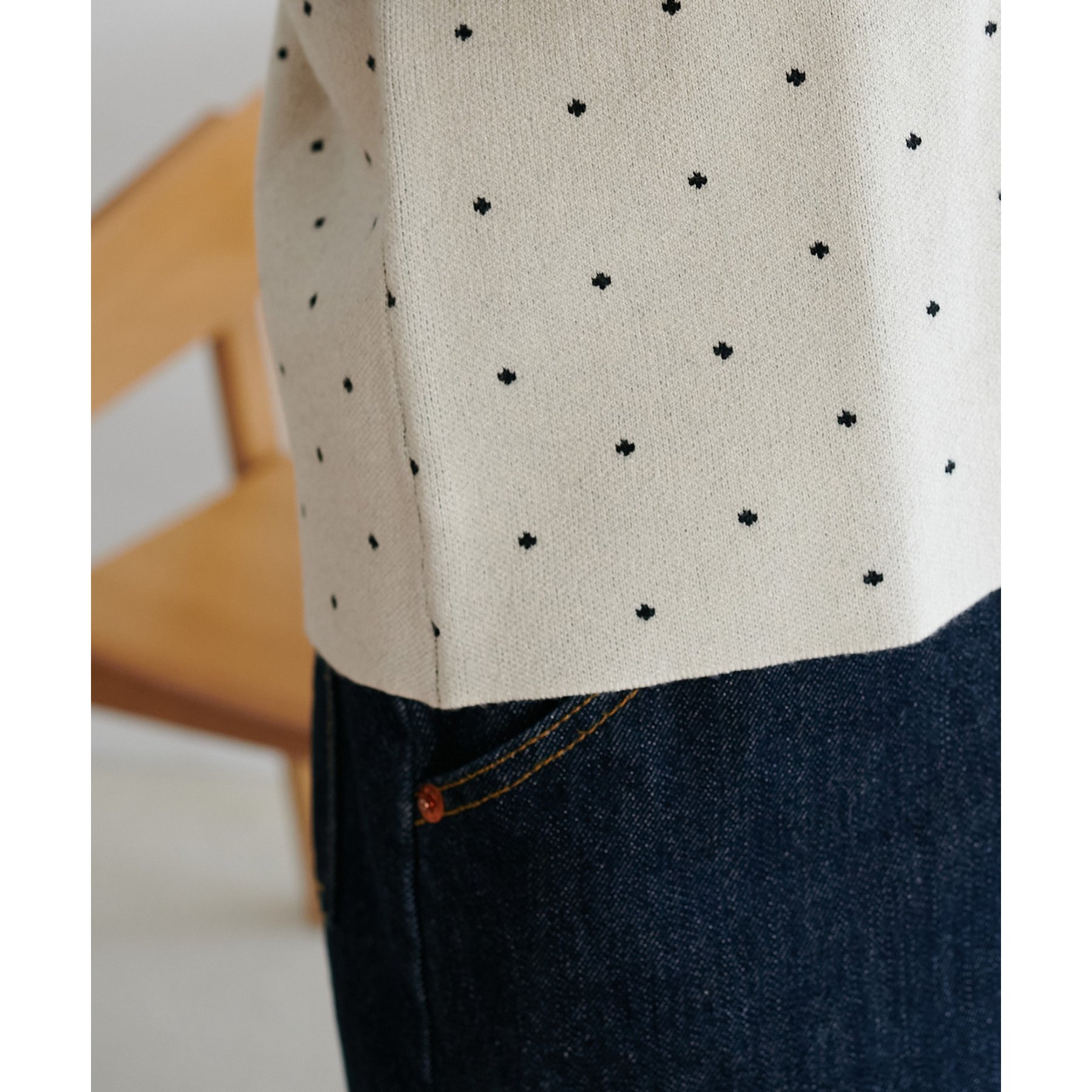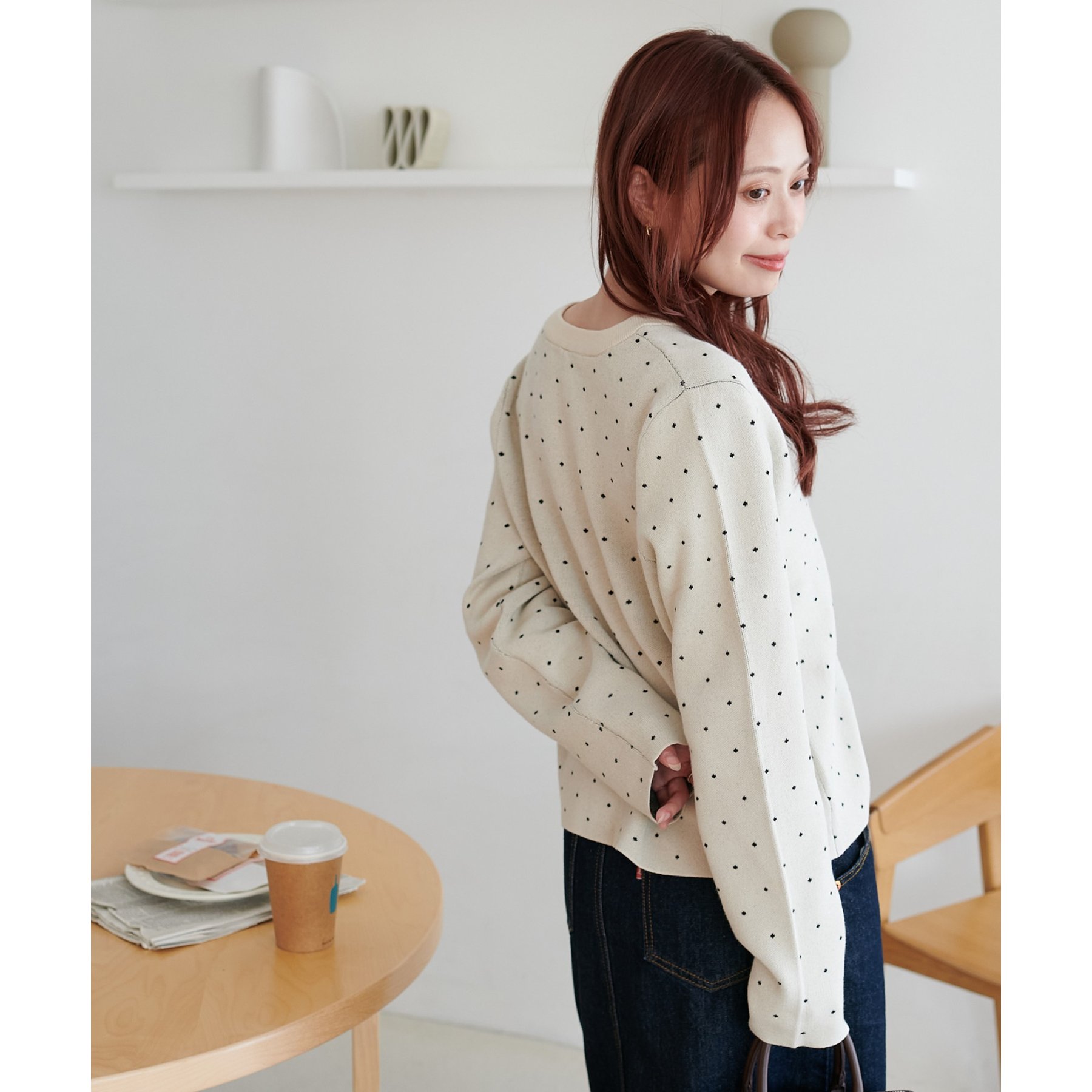 155cmスタッフ:小さめのさりげないドット柄なので、柄物が苦手な方でも取り入れやすいです!デニム合わせでカジュアルに、スカート合わせでフェミニンにも楽しめました♪
