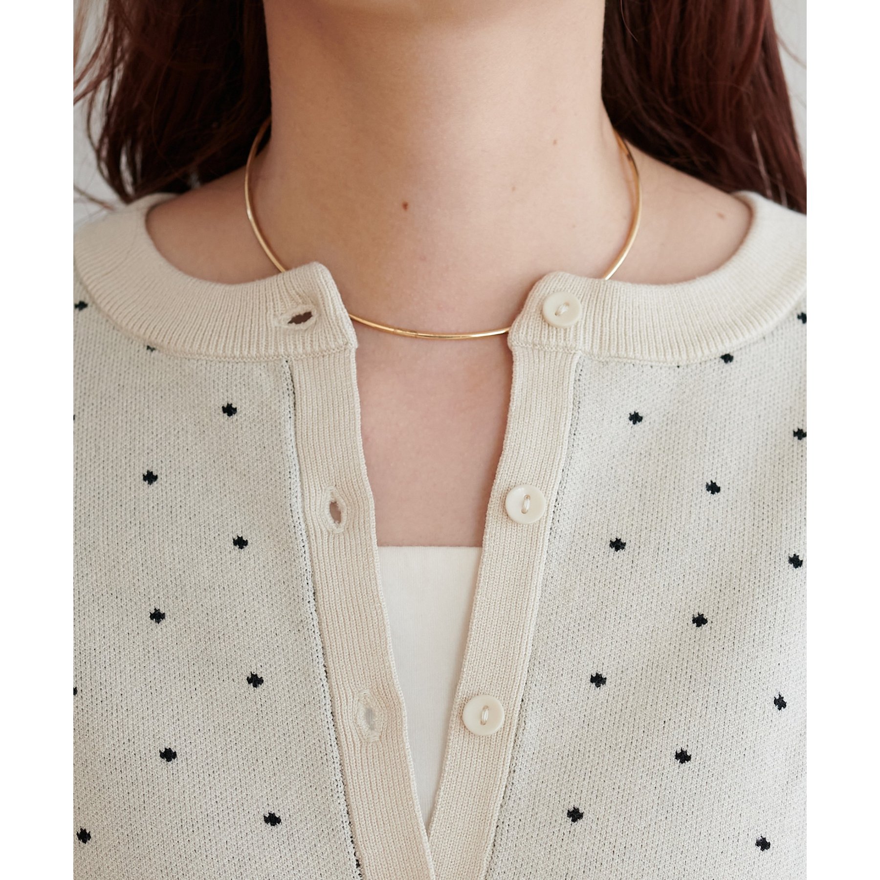 トレンド感のあるドット柄デザインのカーディガン。