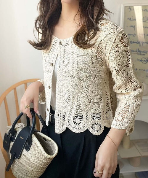 前後2WAYで楽しめる、トレンドライクなクロシェレースカーディガン。