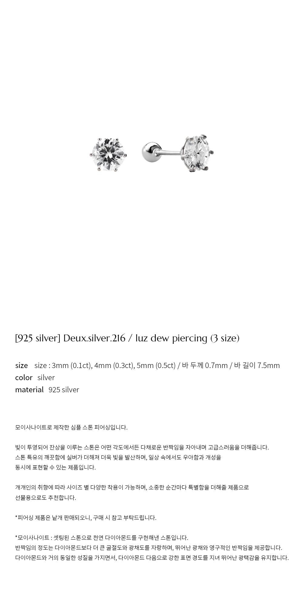 [925 silver] Deux.silver.216 / luz dew piercing (3 size)