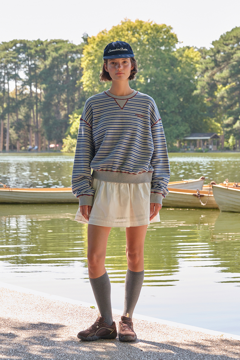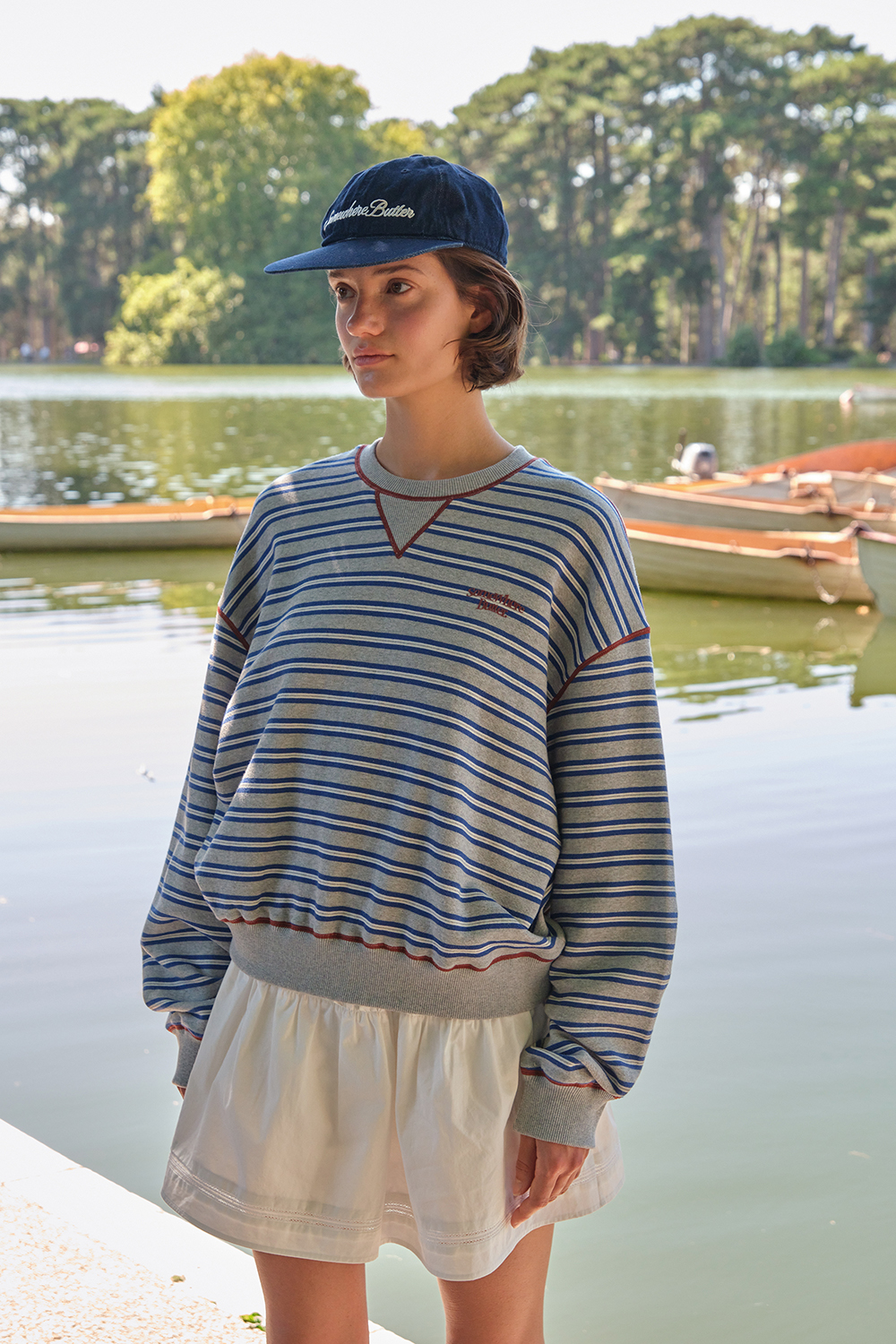 [予約商品] Small Wave Logo Stripe Sweatshirt - Grey