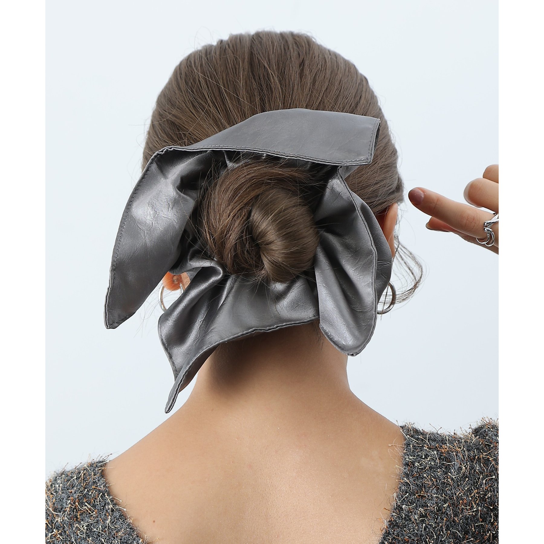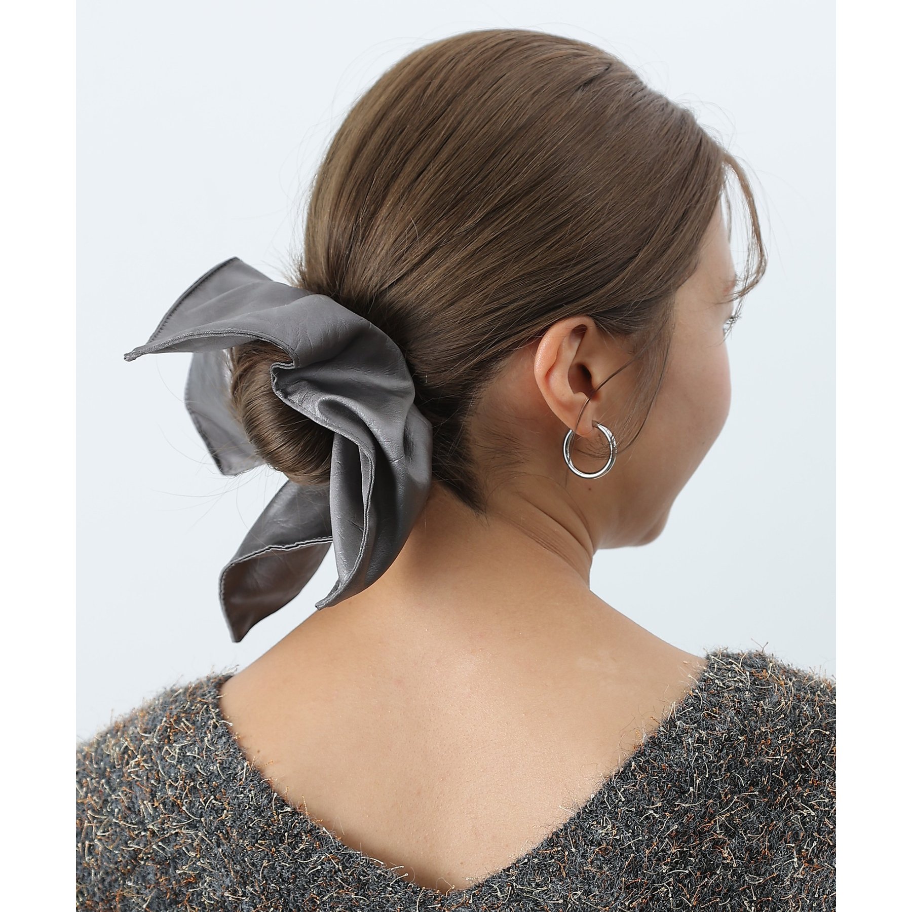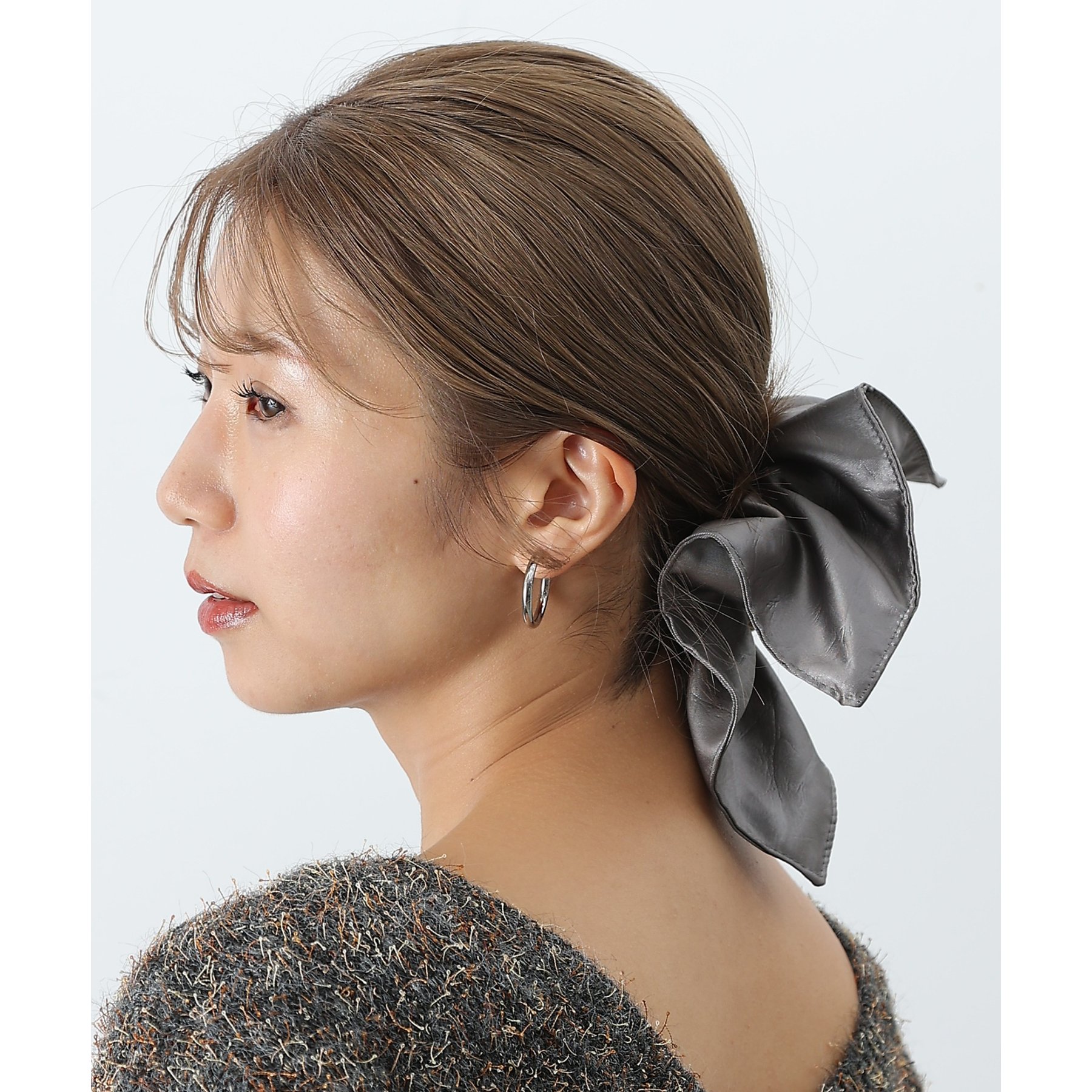 ほどよいボリューム感とフェイクレザーのツヤが、後ろ姿に華やかさとこなれ感をプラスしてくれます。