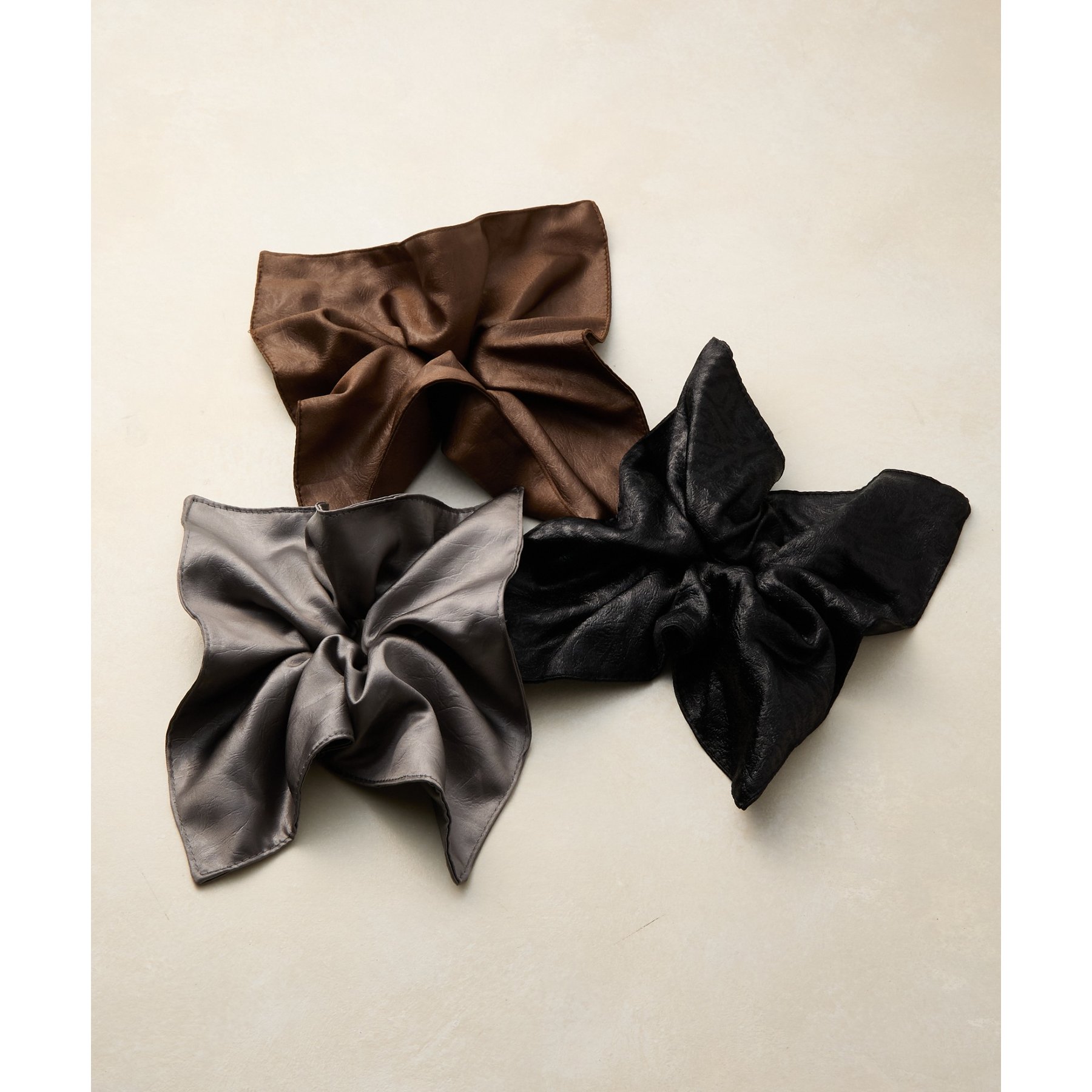 上品な光沢感のある生地でスクエア形に仕上げたシュシュ。