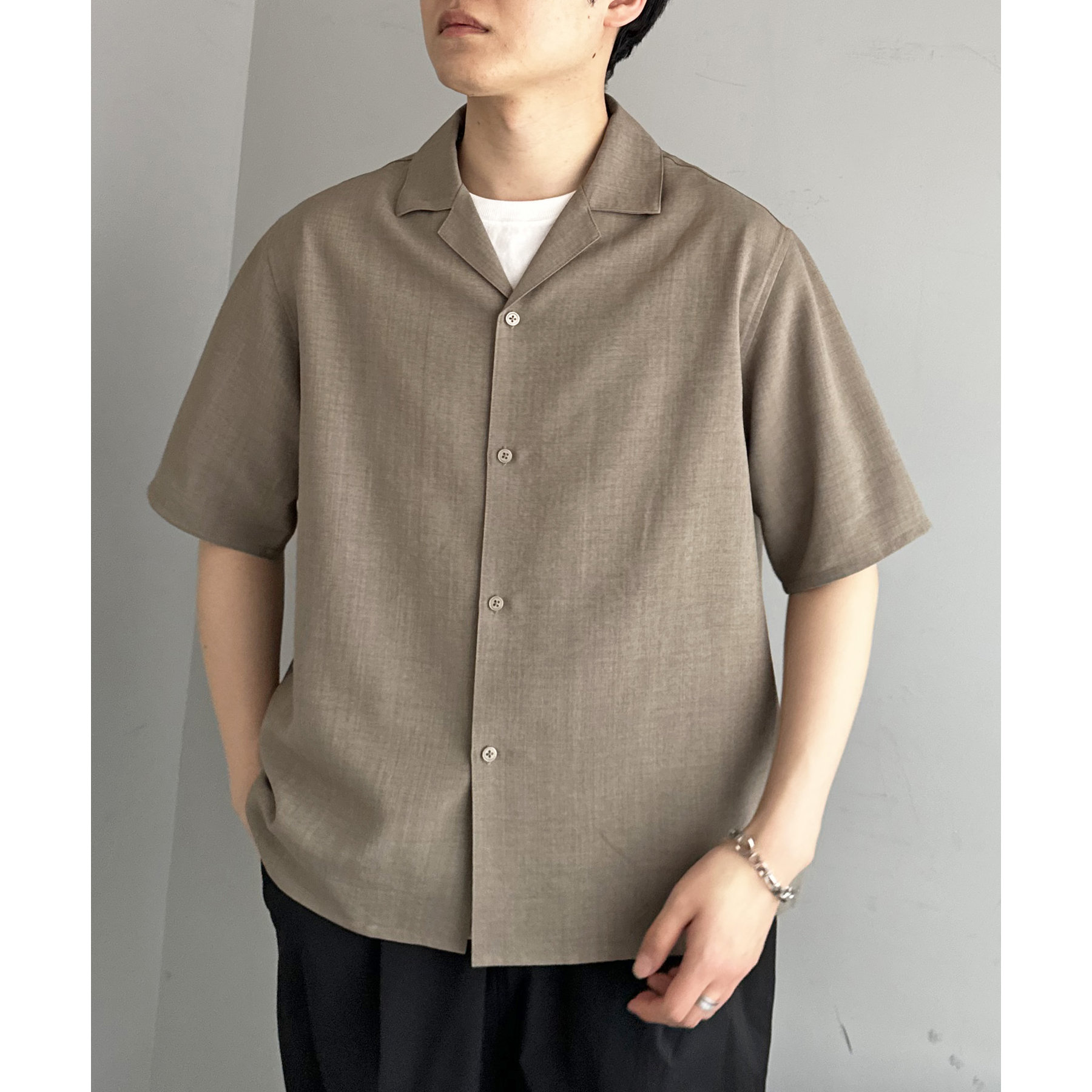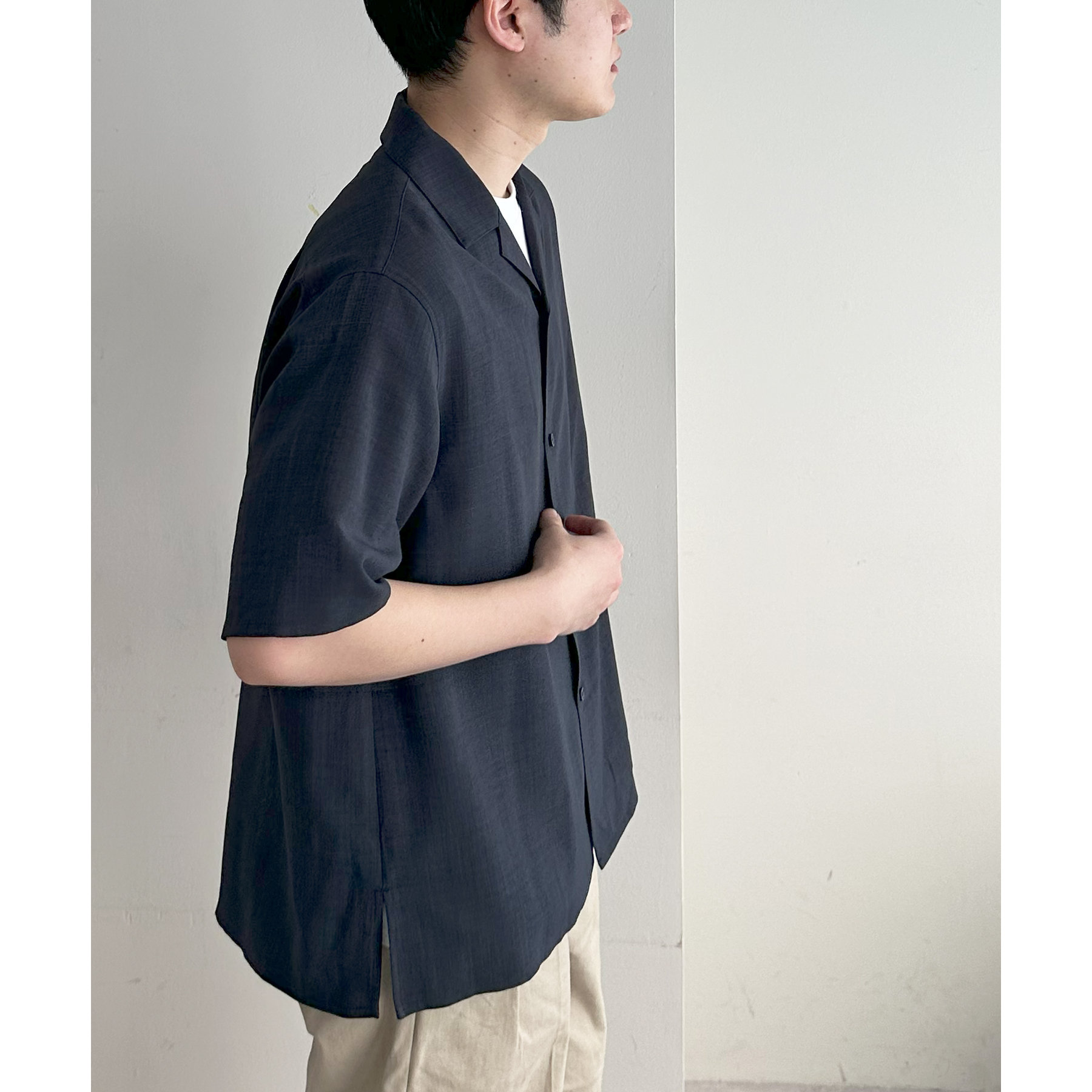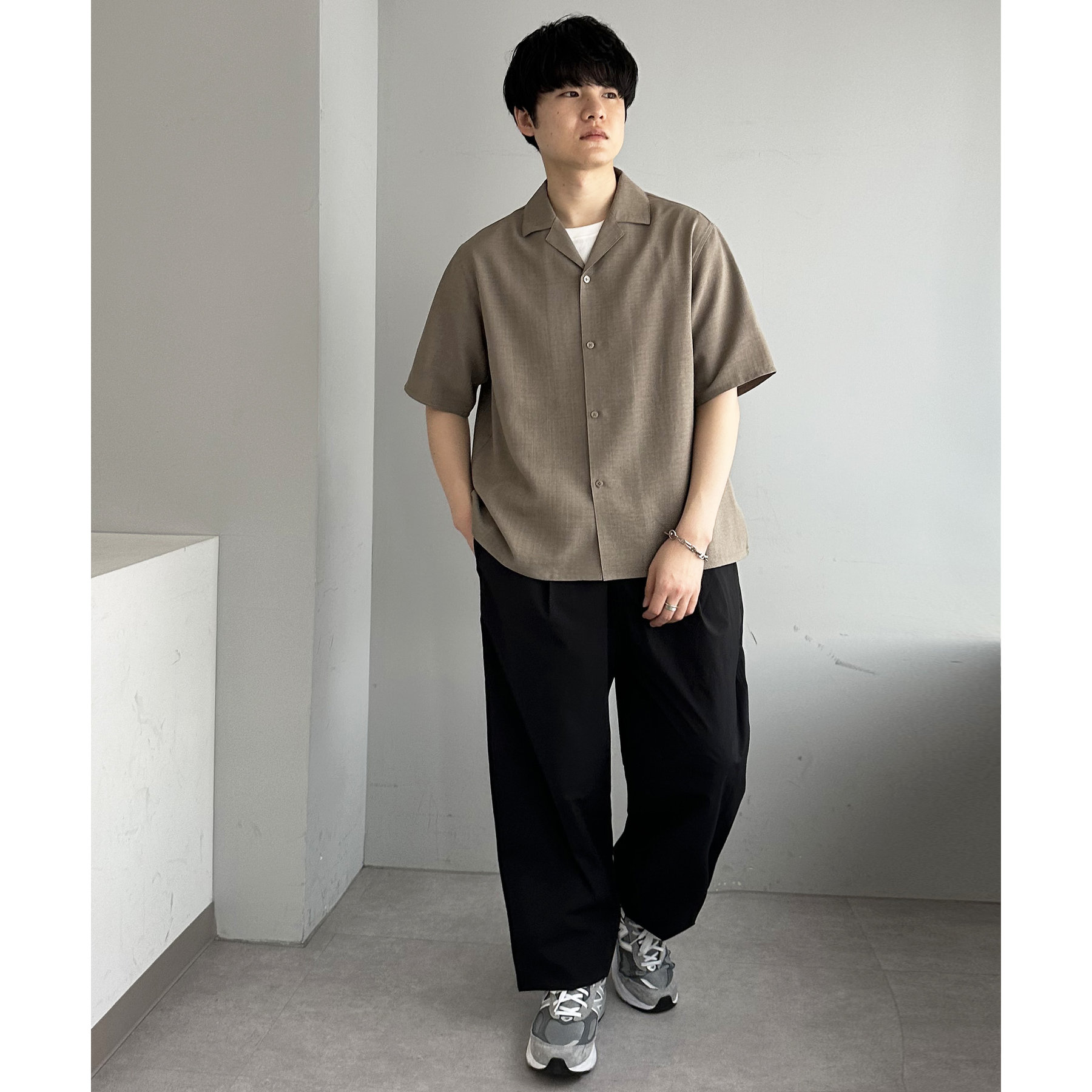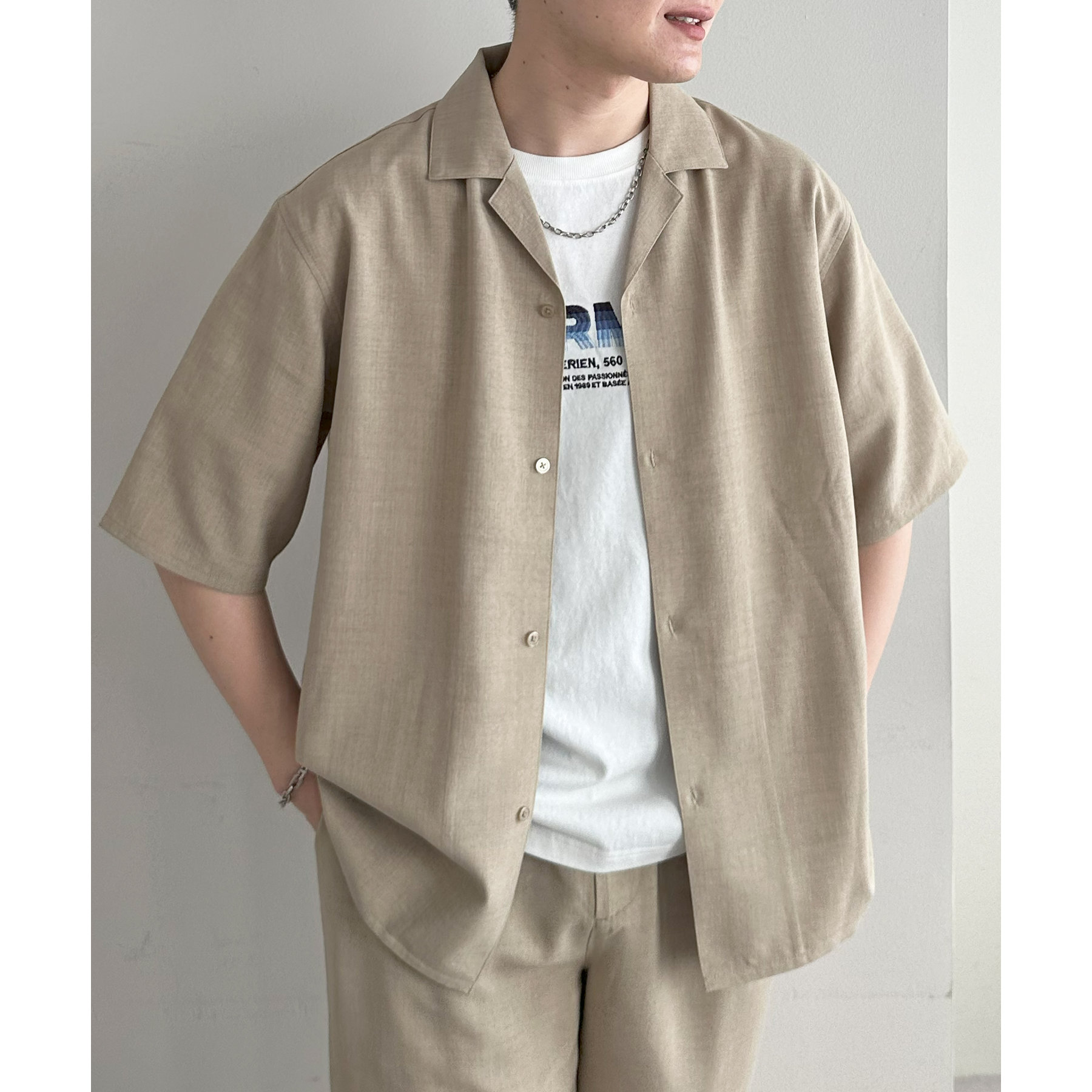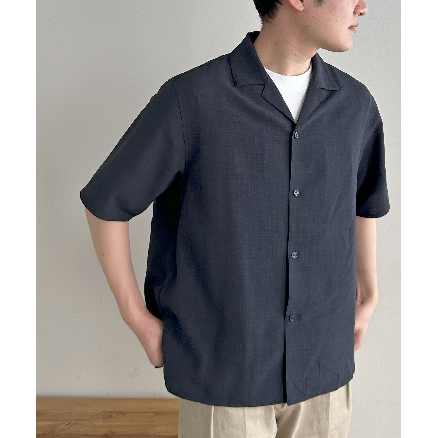 襟元は開放感のあるオープンカラーで、首元に程よい抜け感をプラス。