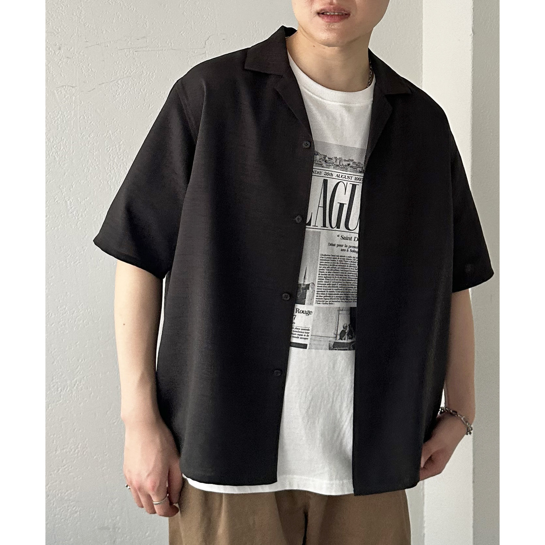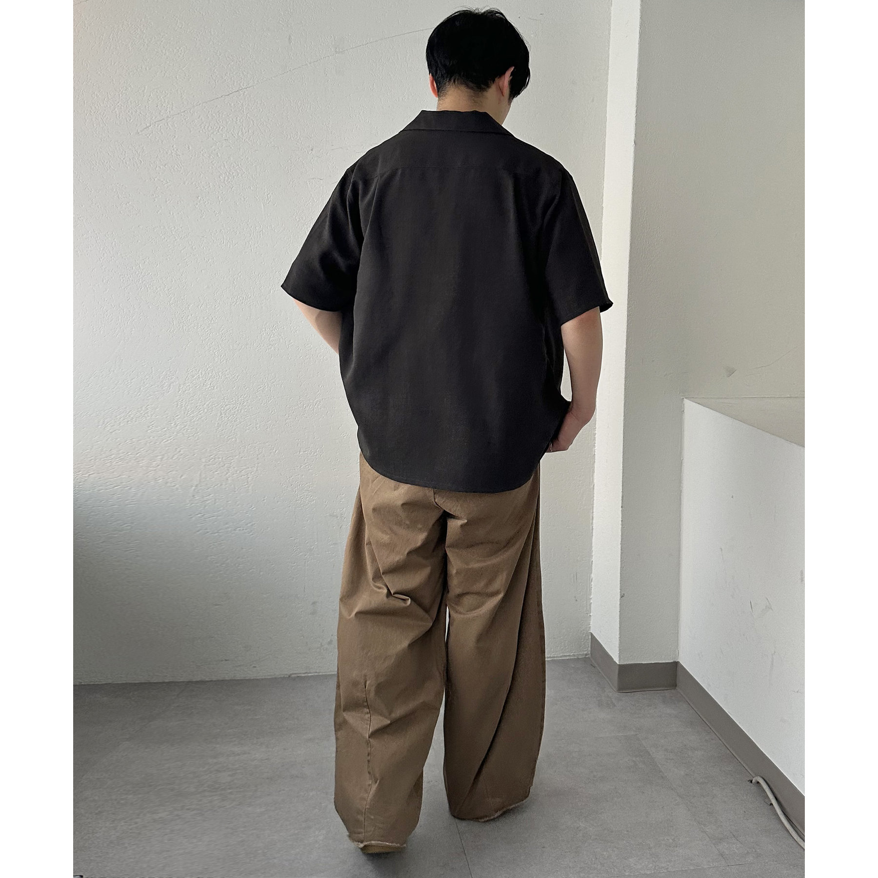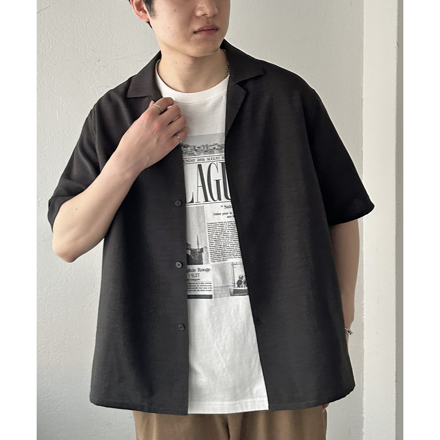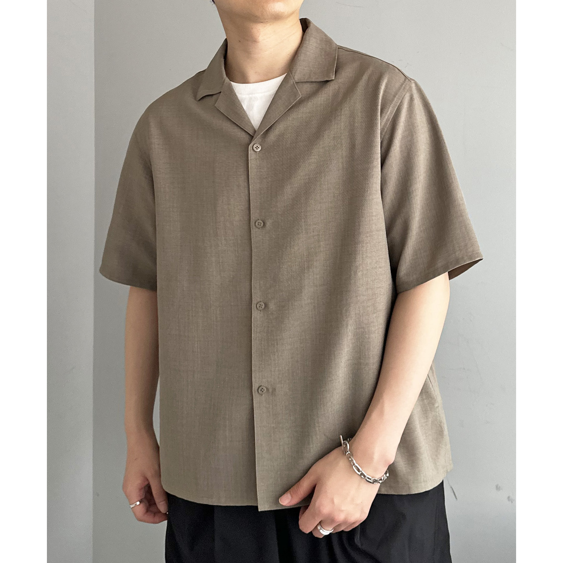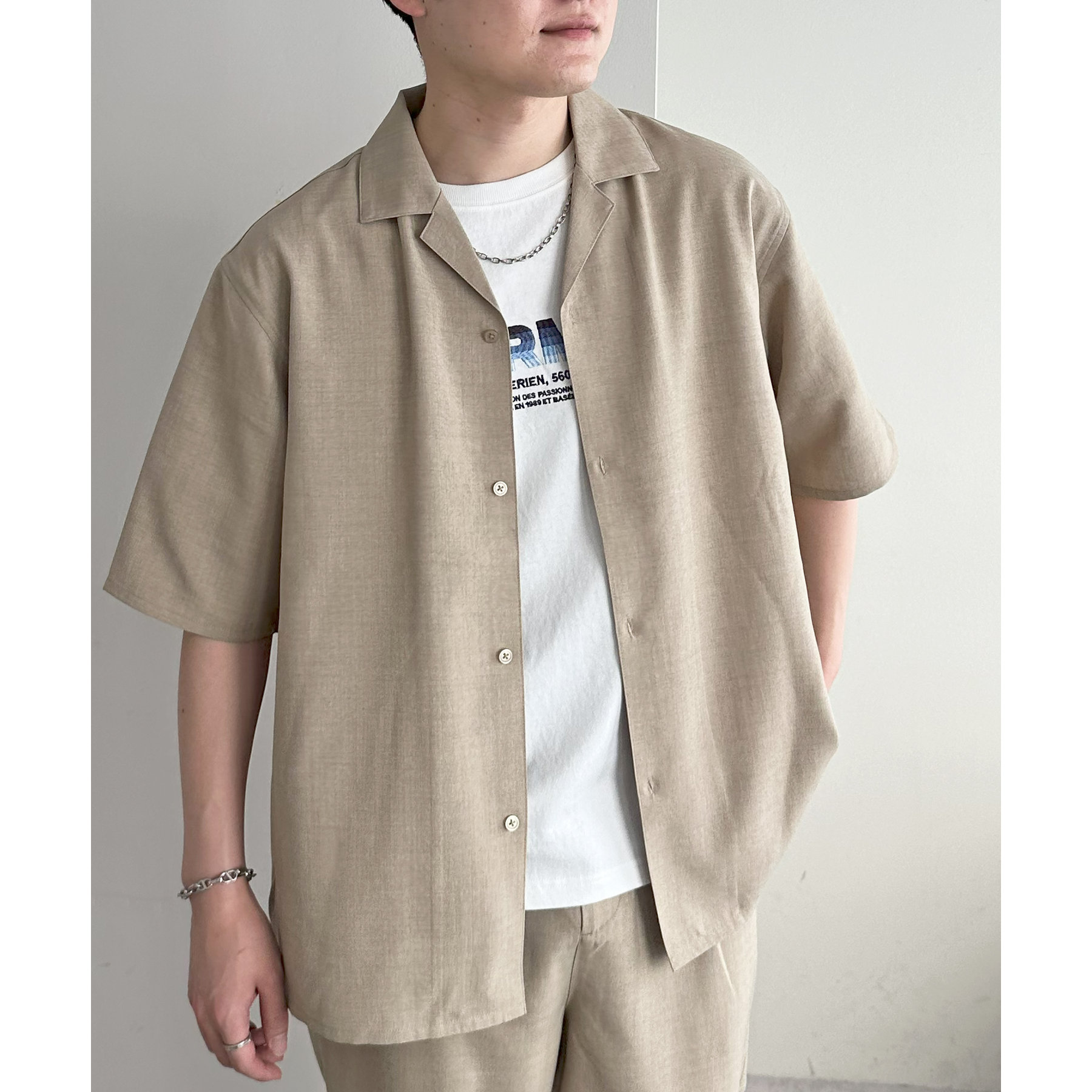 襟元は開放感のあるオープンカラーで、首元に程よい抜け感をプラス。