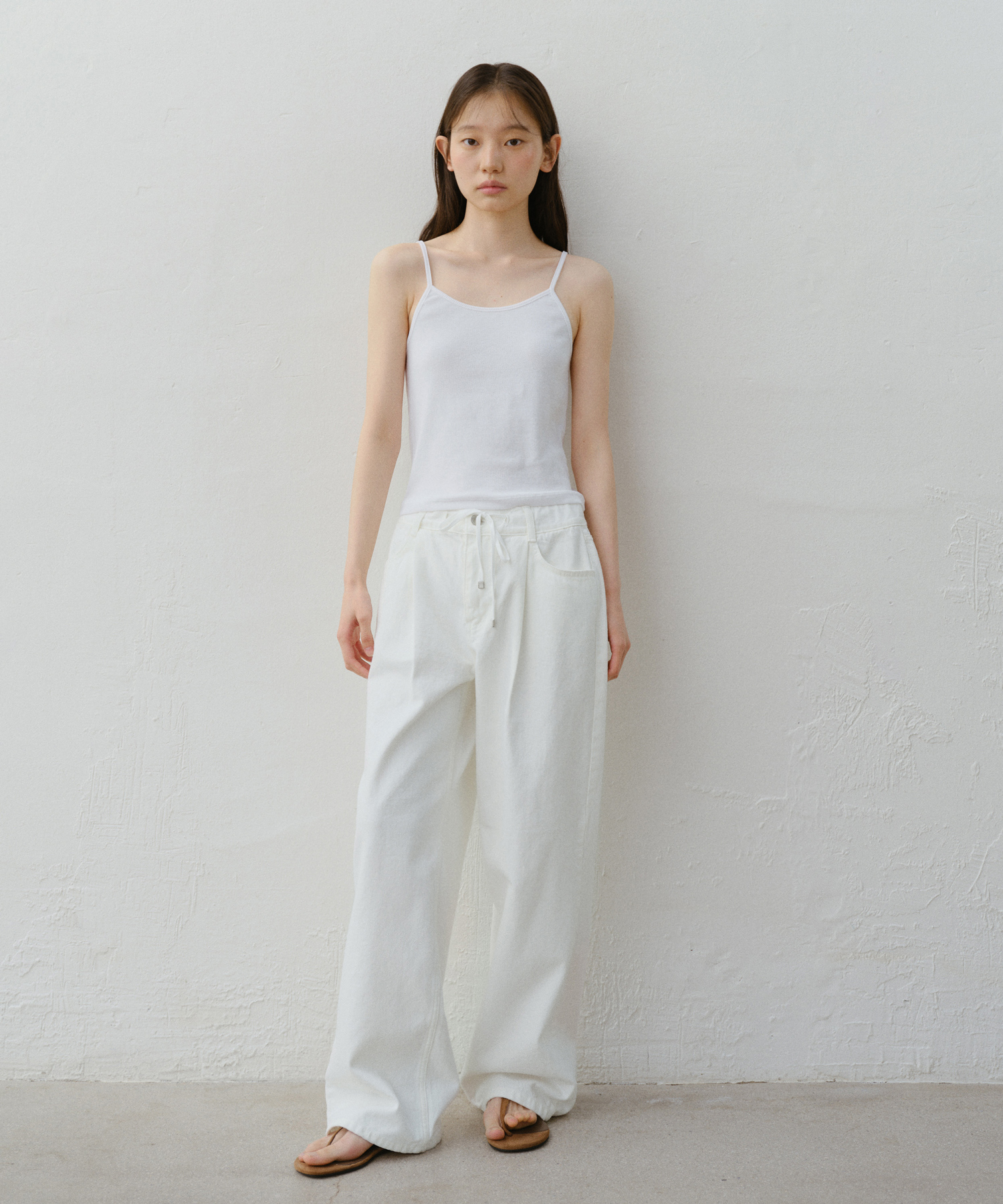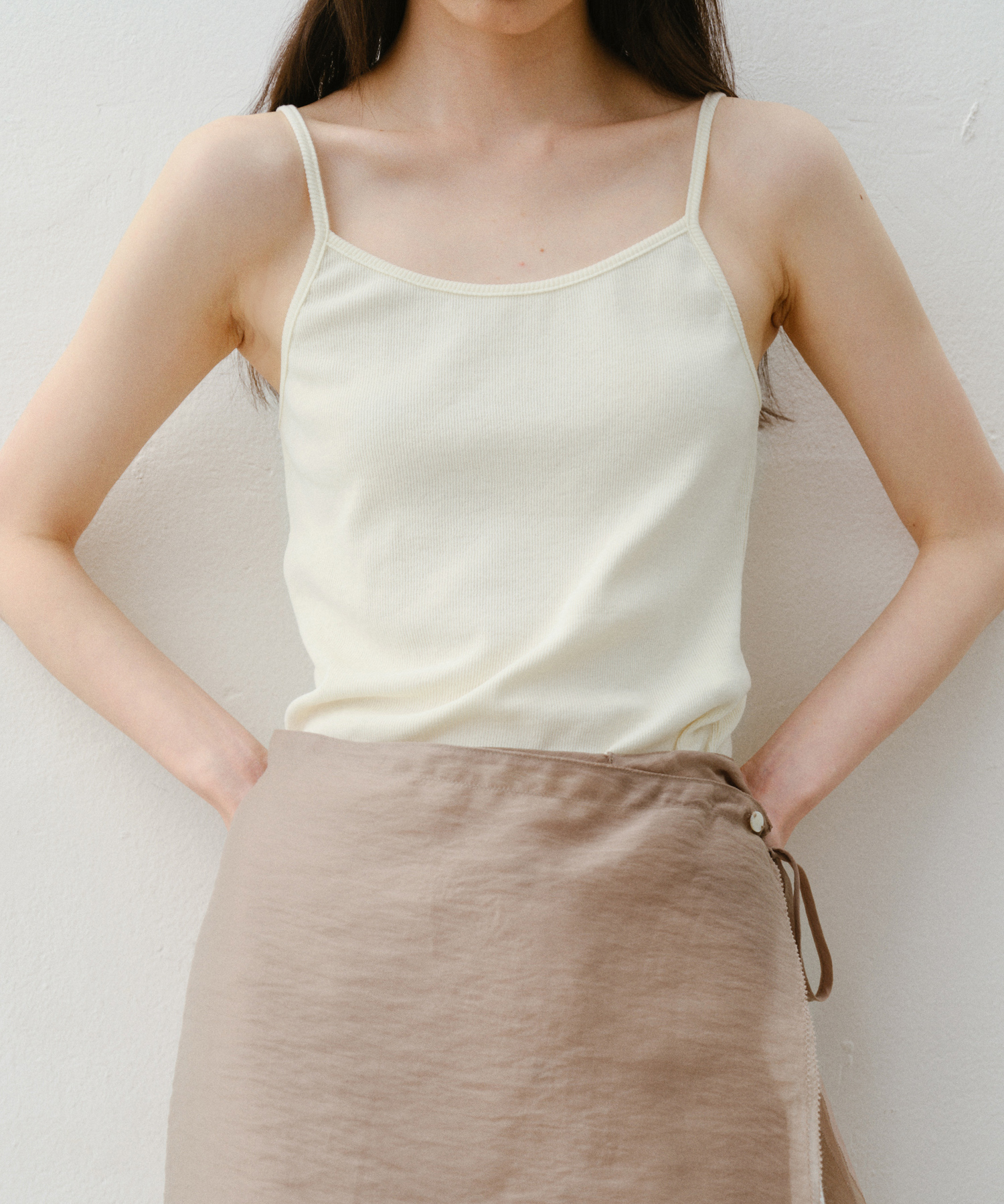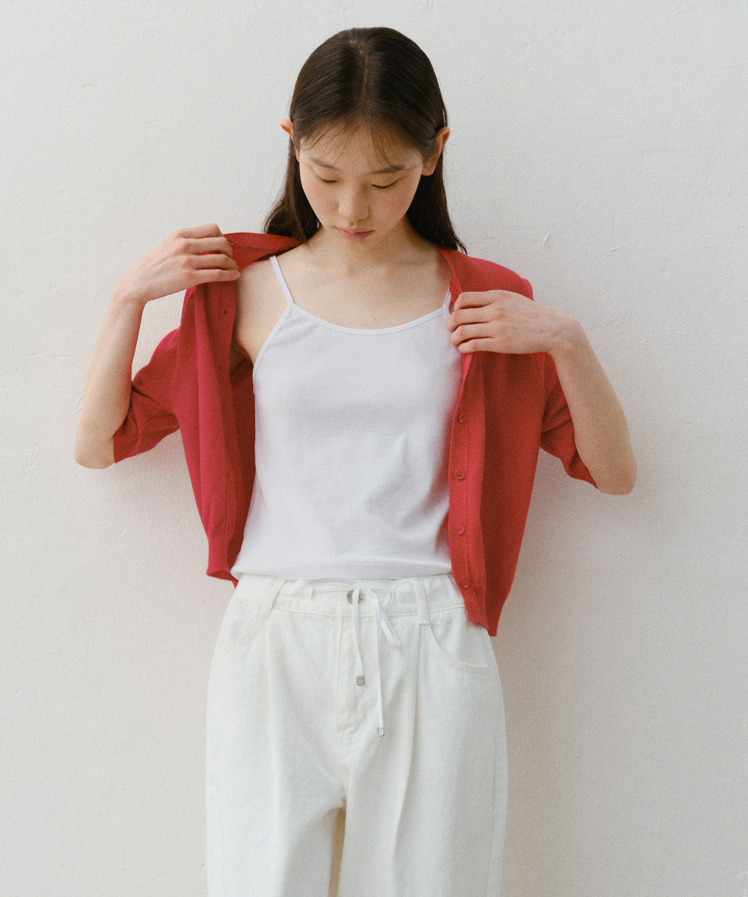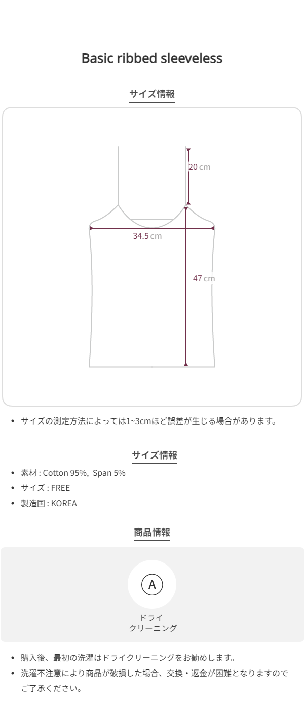 コットン95%、スパン5%混紡生地で製作された最もベーシックなデザインのスリーブレスです。フィットし、ニットウェアの中に一緒に着用したときにも自然で安定感のあるフィットを演出できます。