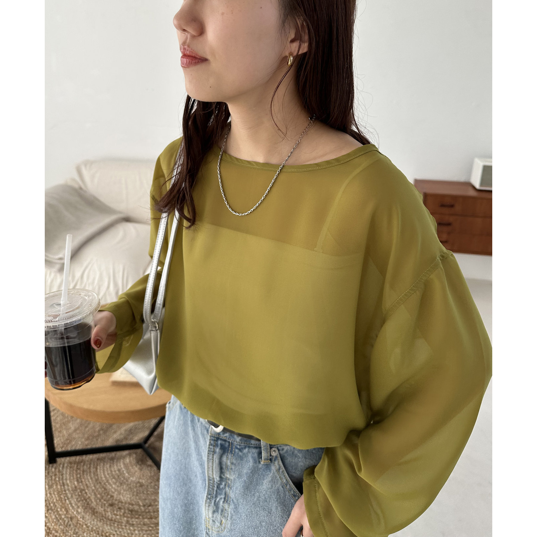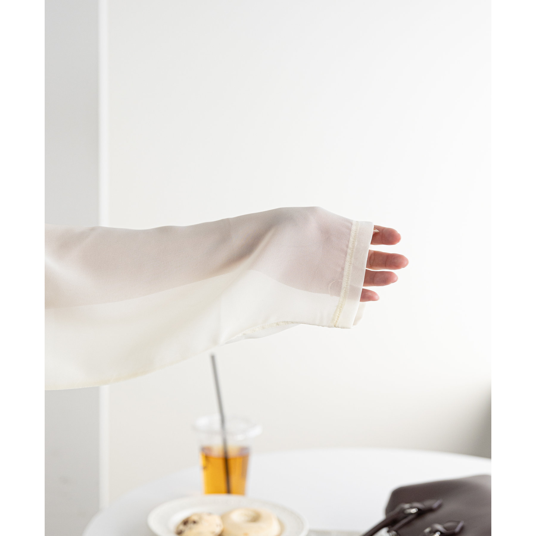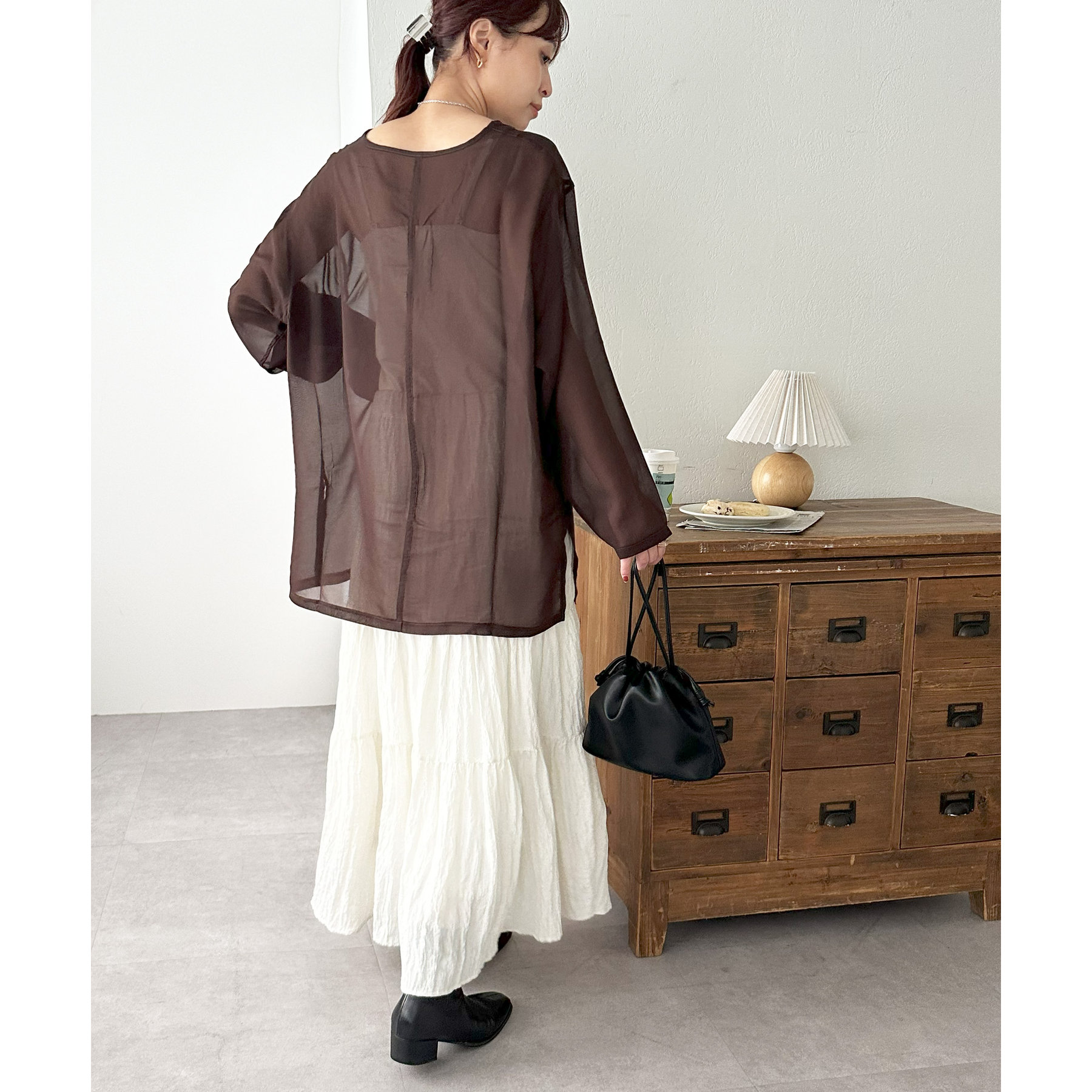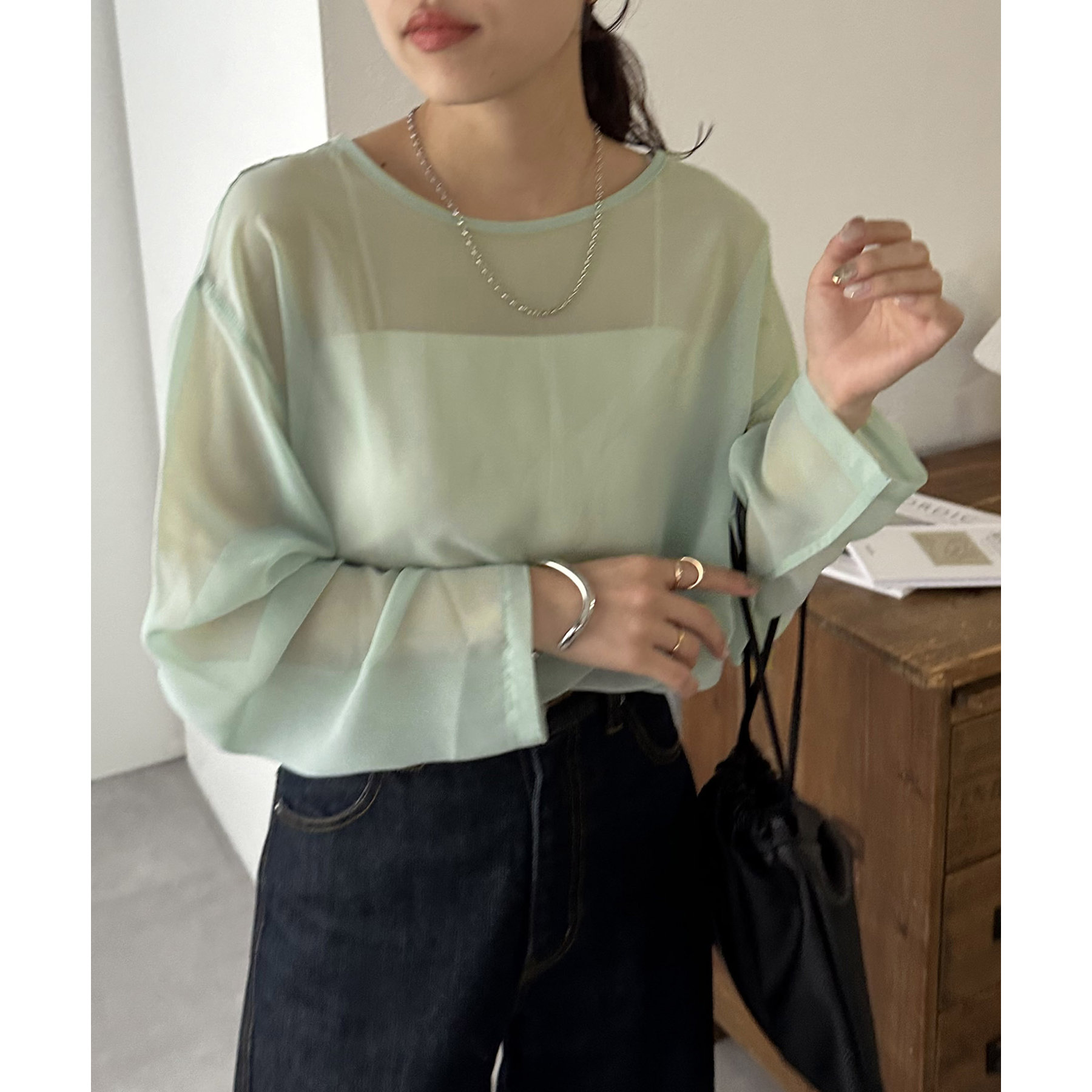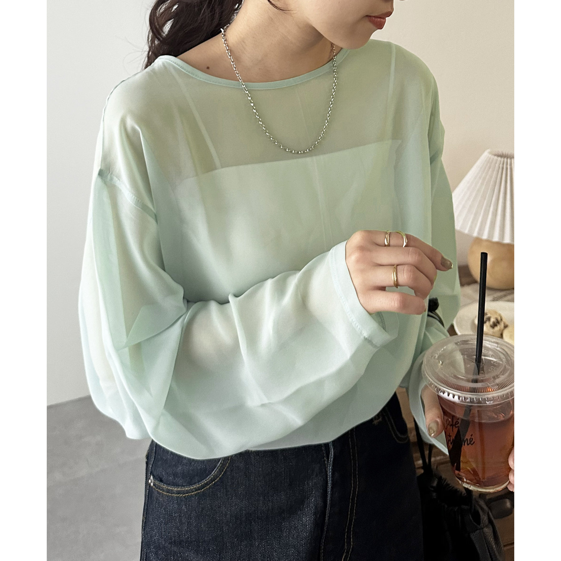 長袖でシアーのデザインが涼し気な雰囲気なので、ロングシーズン着て頂けます。