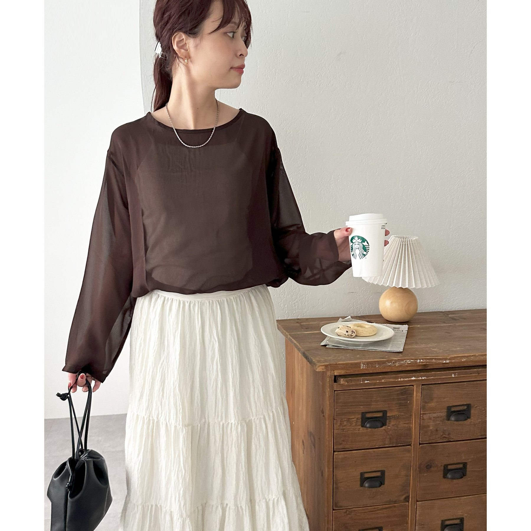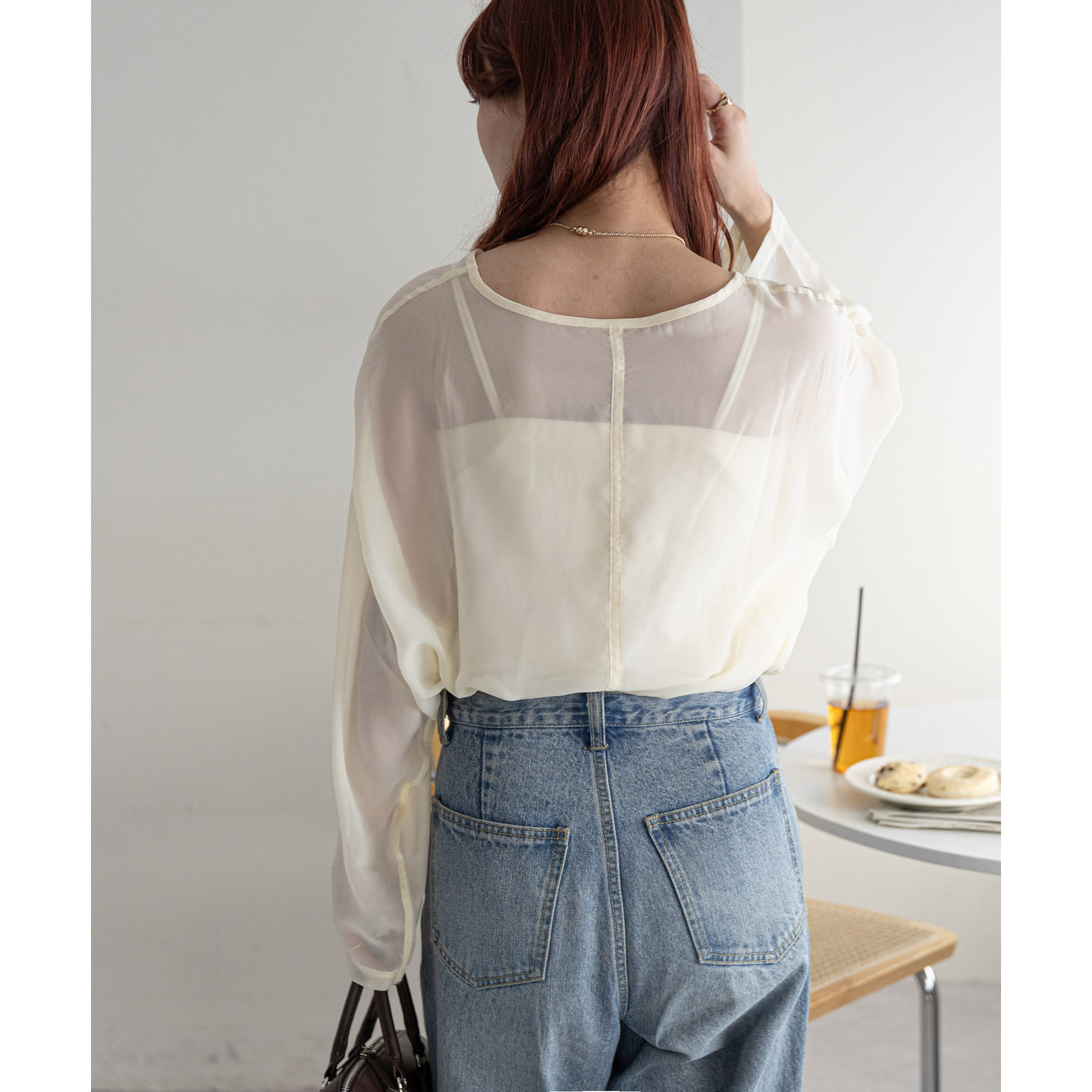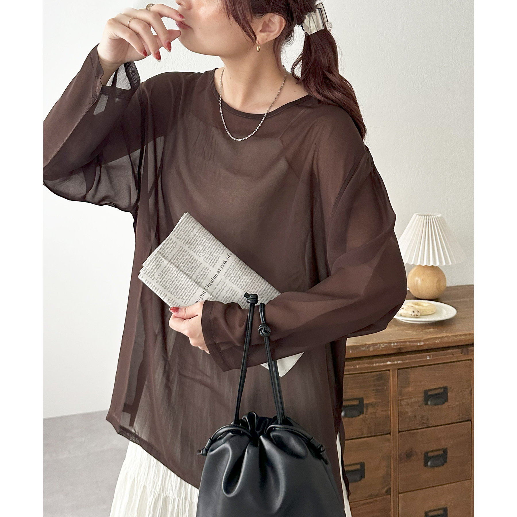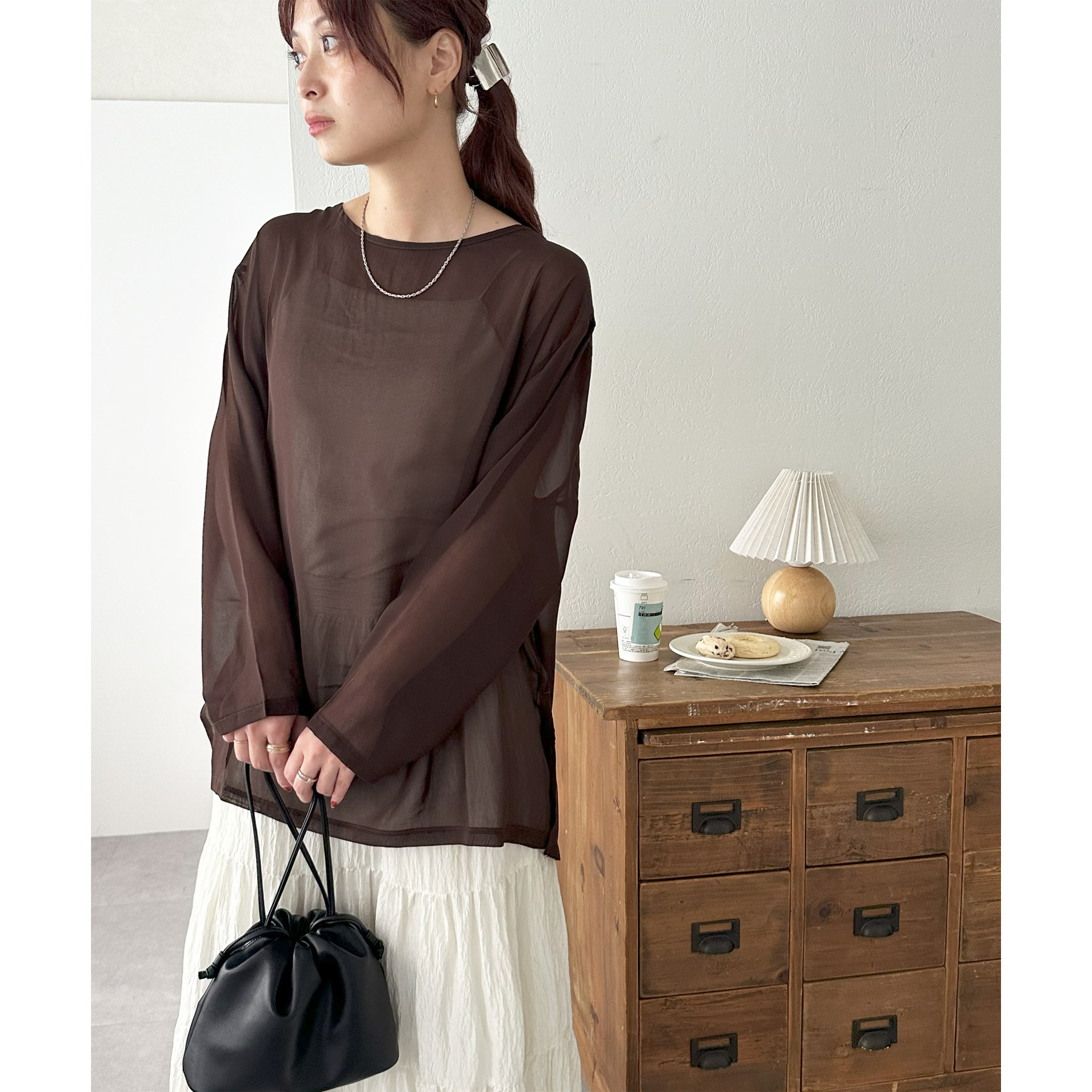 長袖でシアーのデザインが涼し気な雰囲気なので、ロングシーズン着て頂けます。