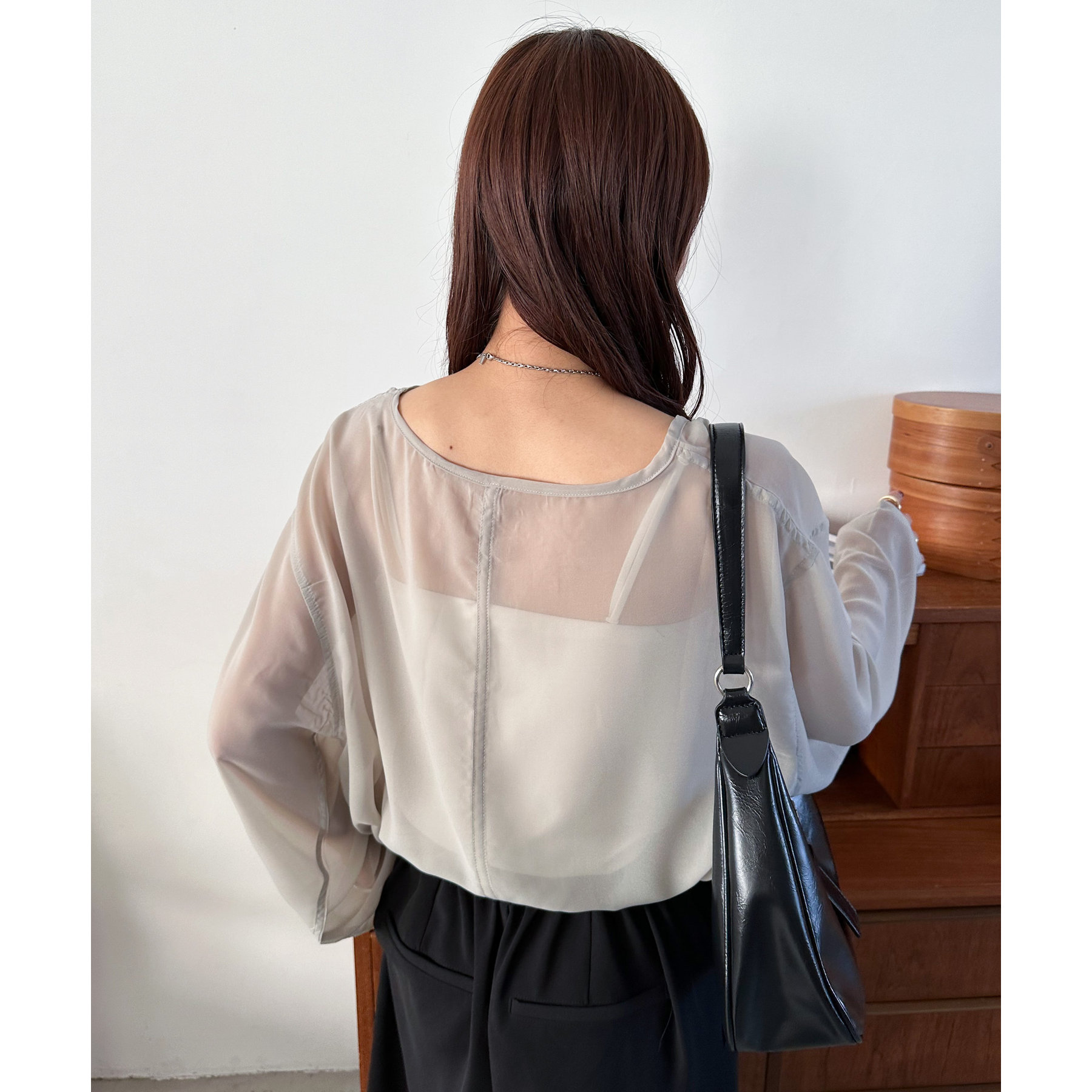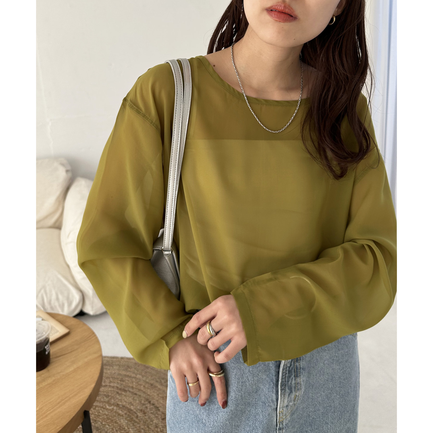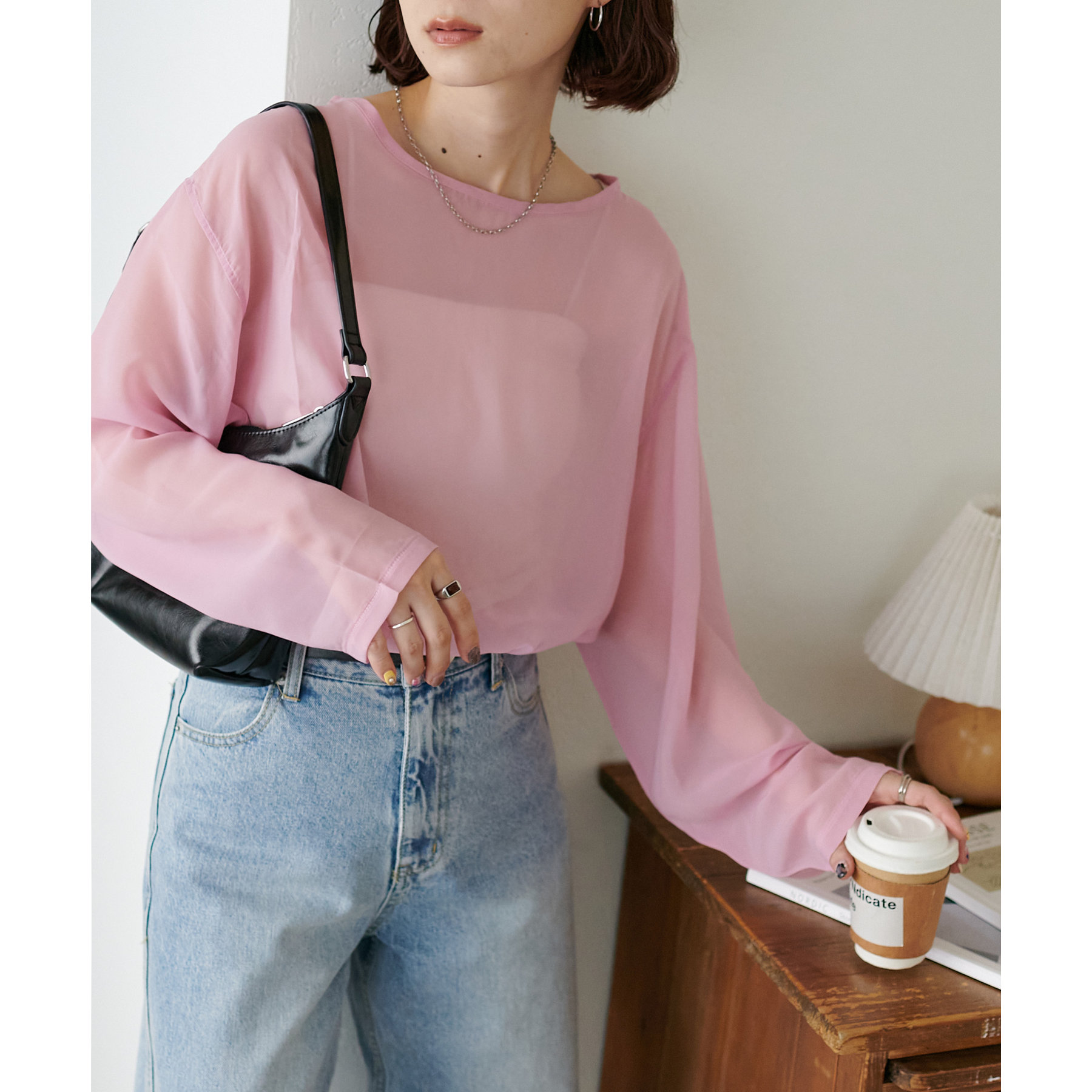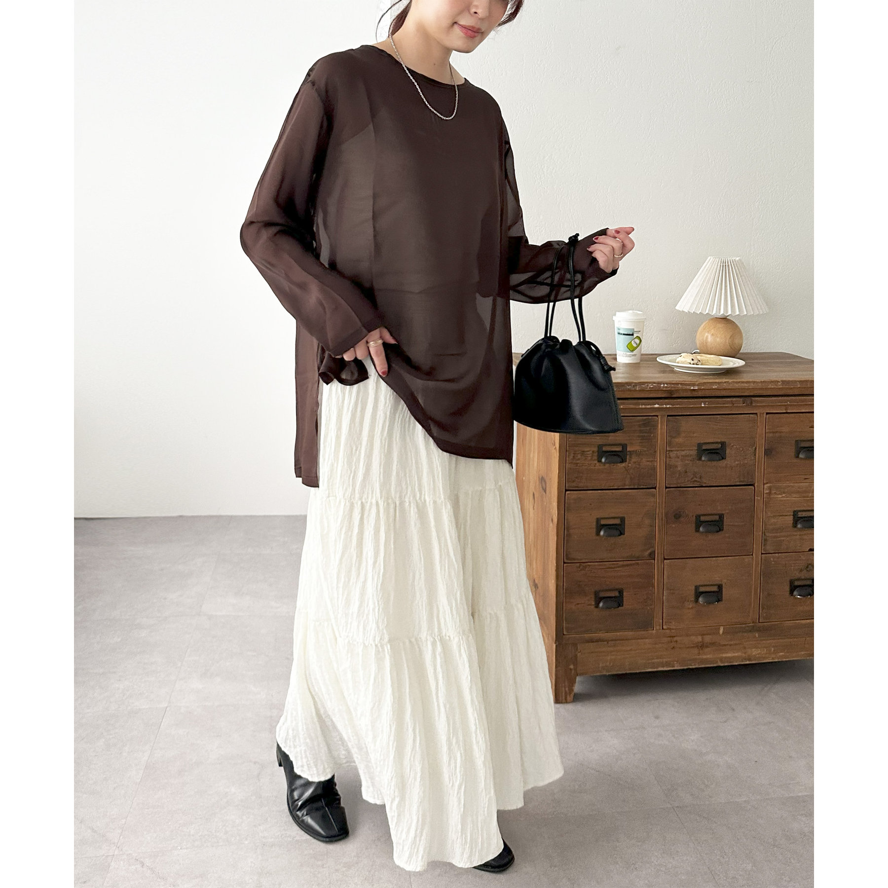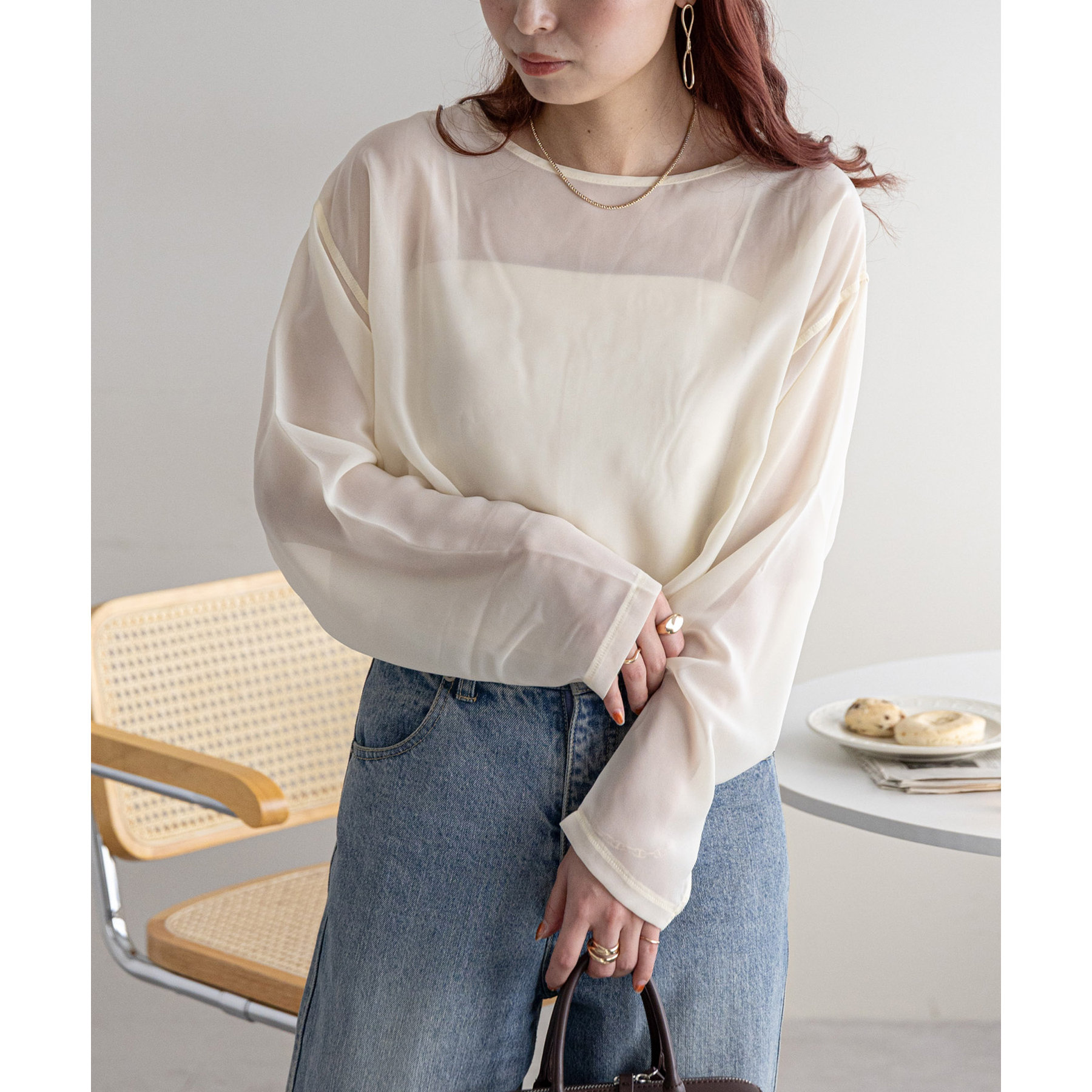 長袖でシアーのデザインが涼し気な雰囲気なので、ロングシーズン着て頂けます。