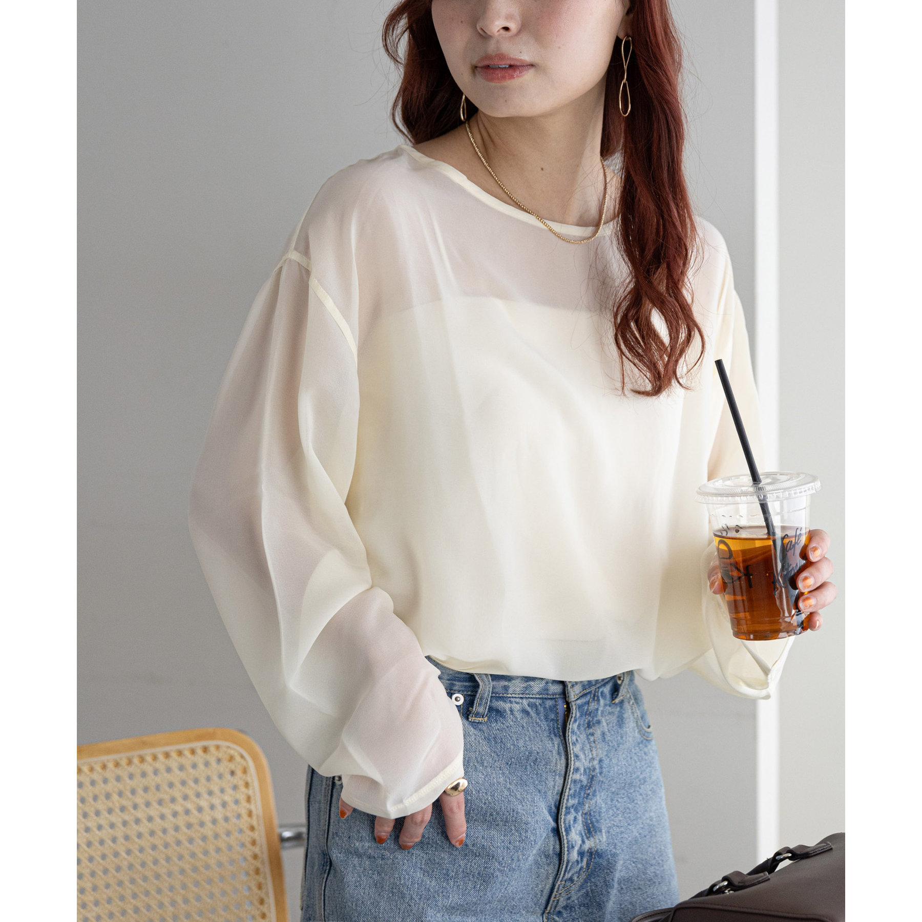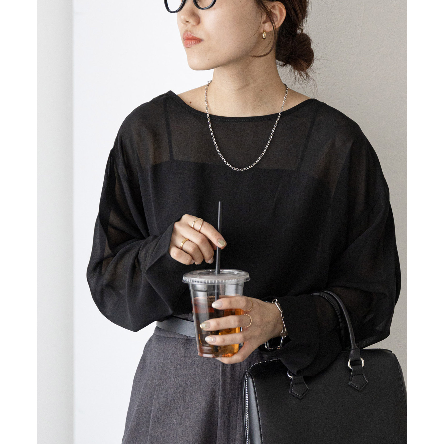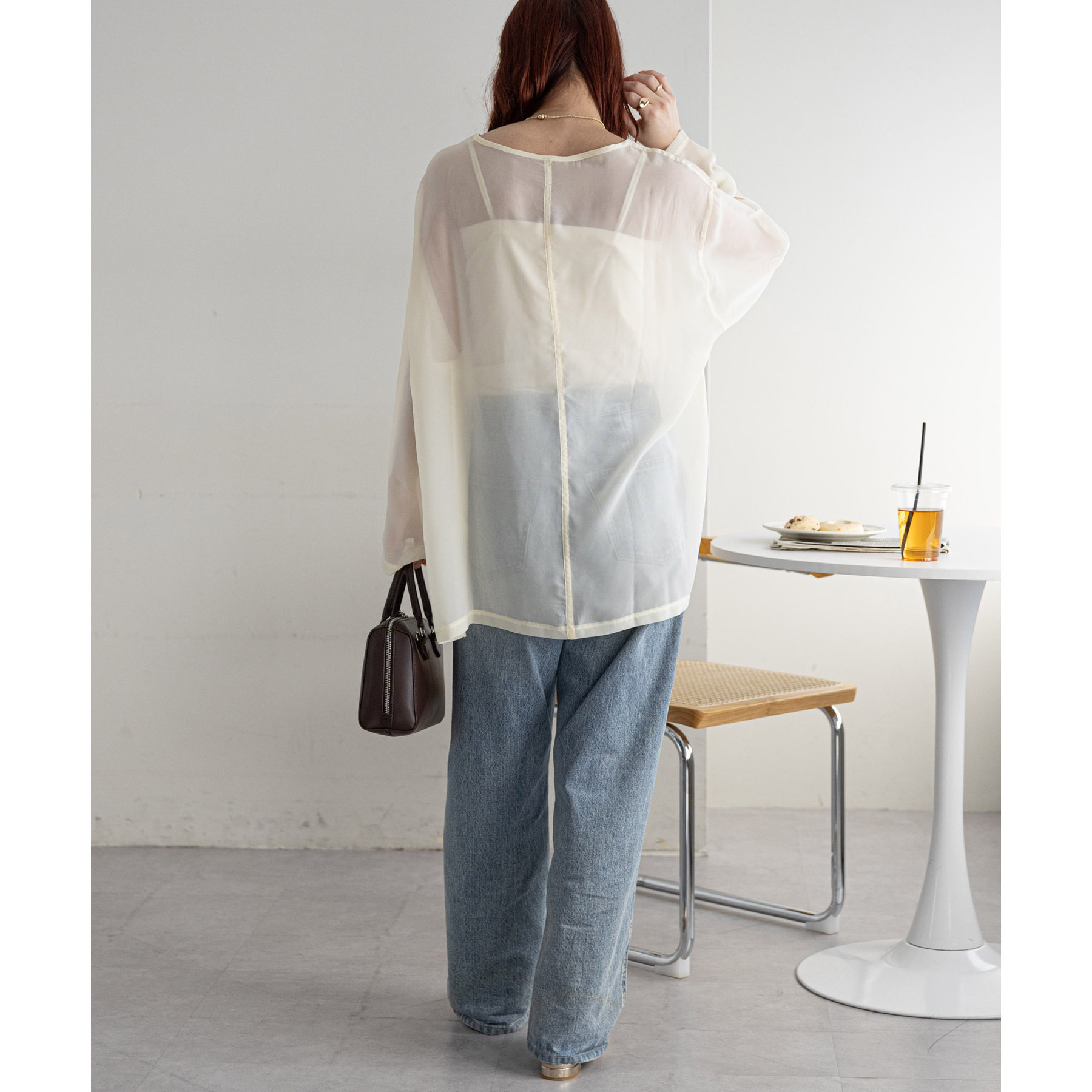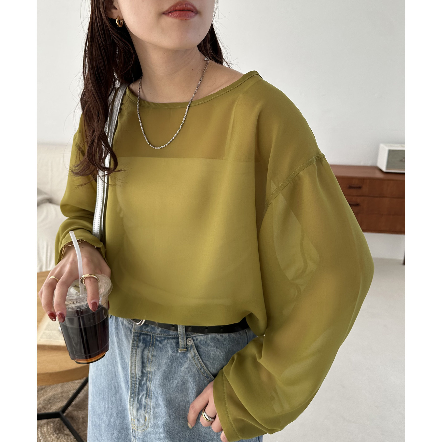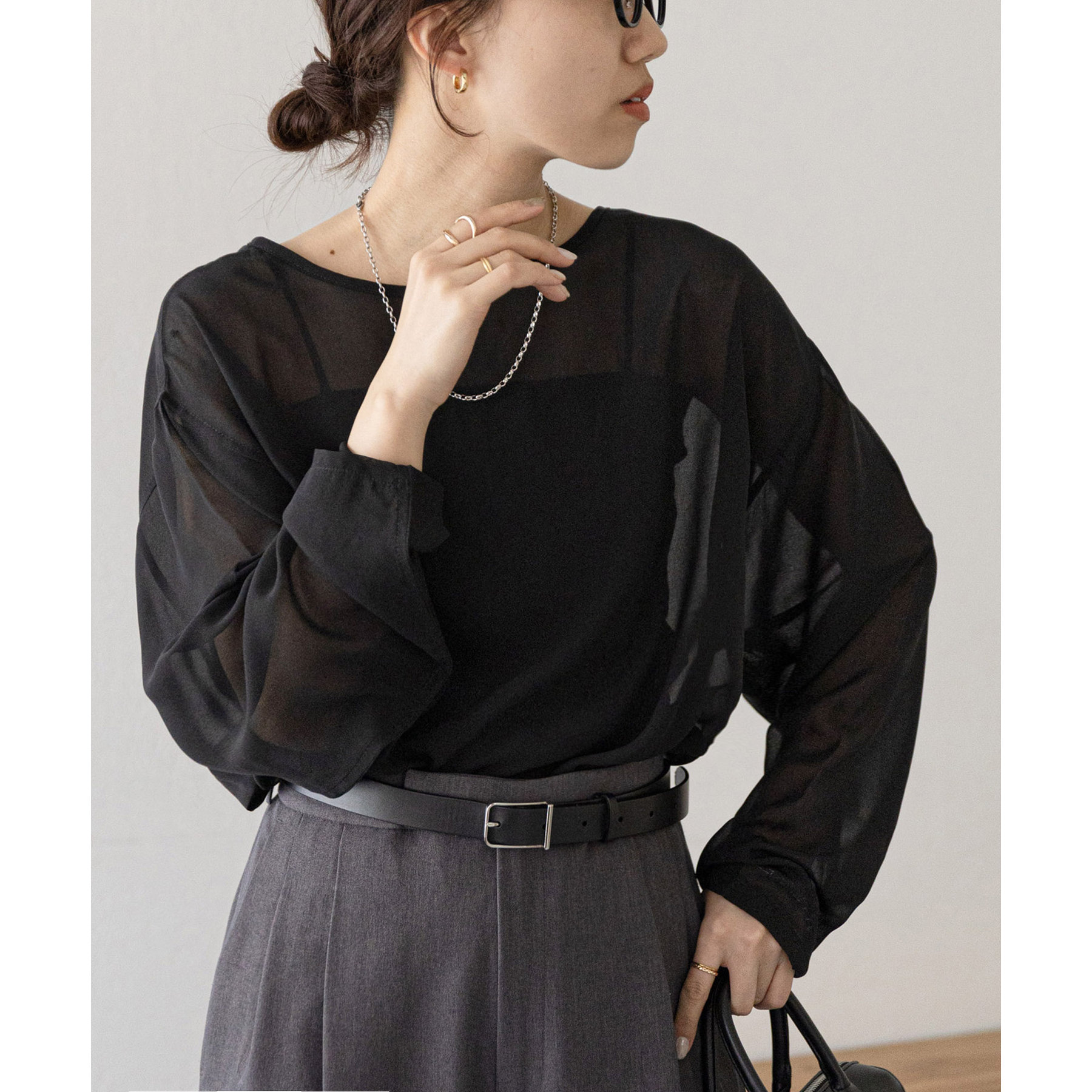 長袖でシアーのデザインが涼し気な雰囲気なので、ロングシーズン着て頂けます。