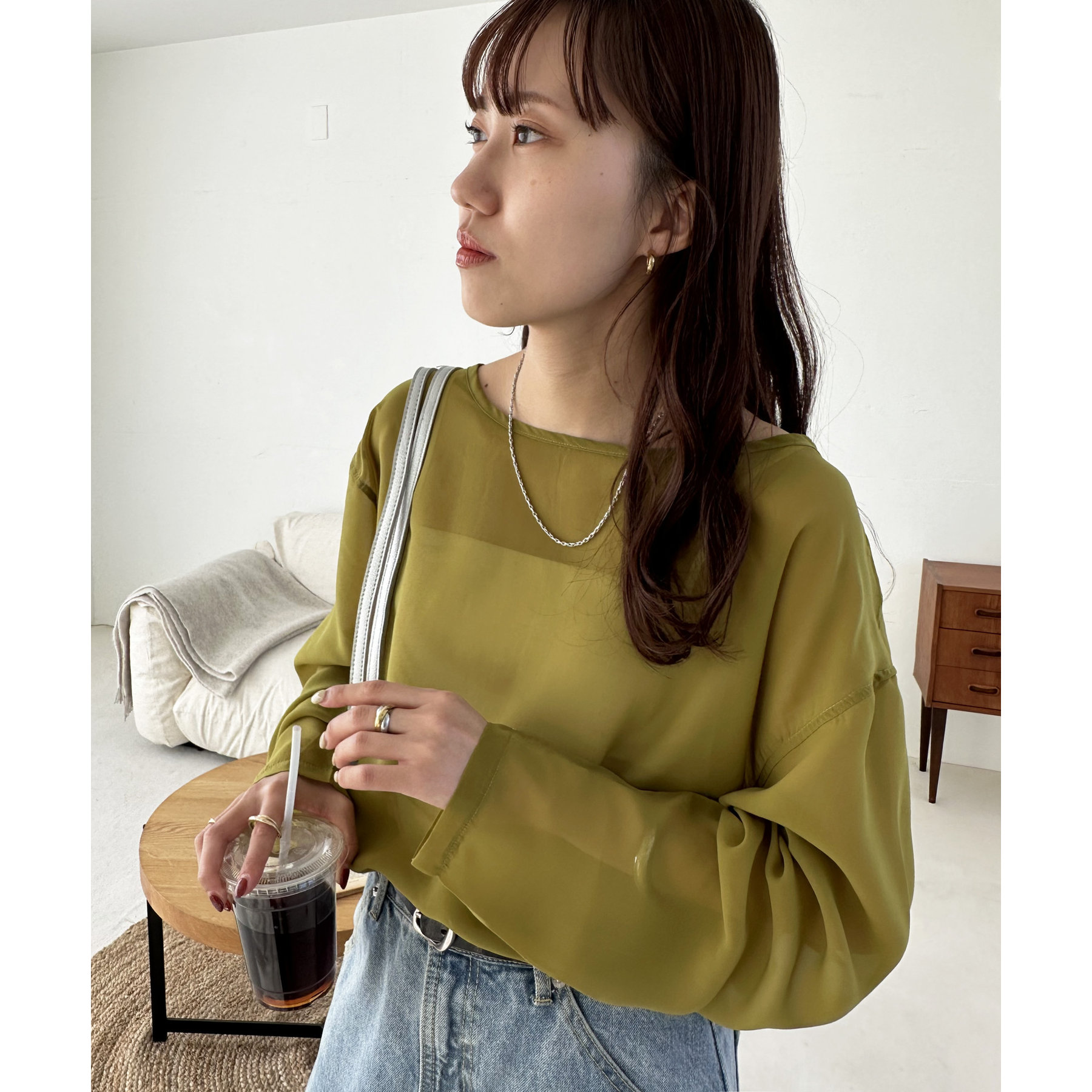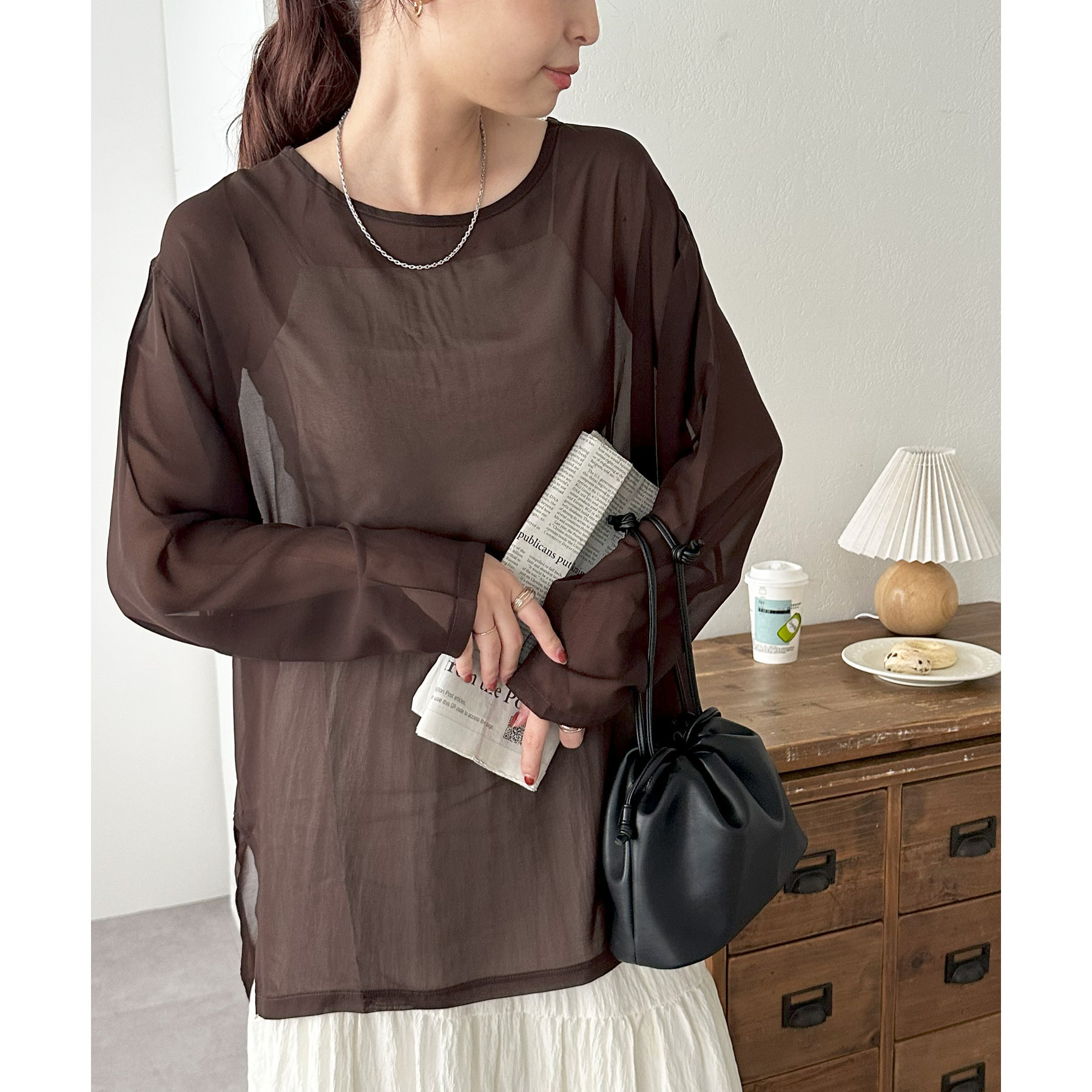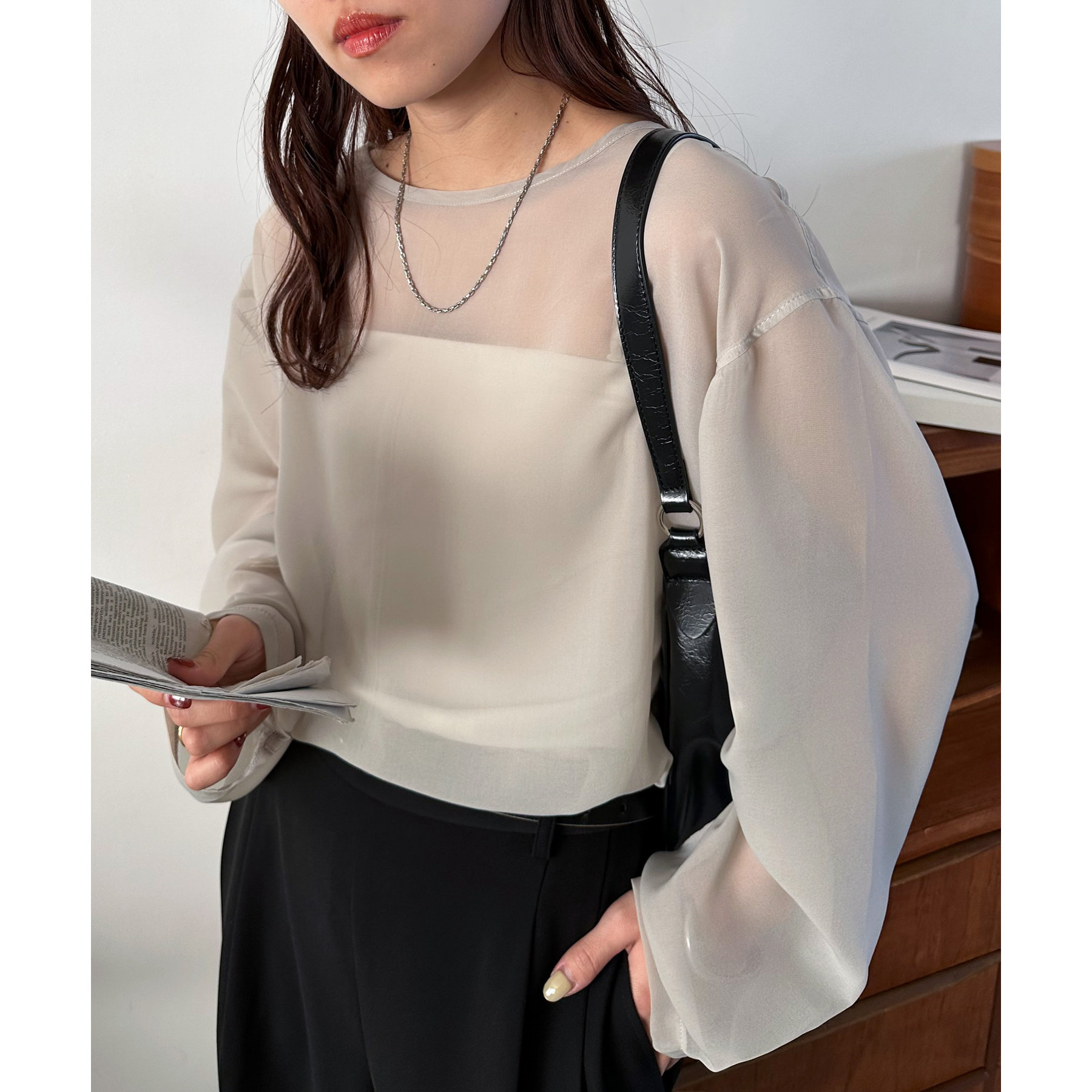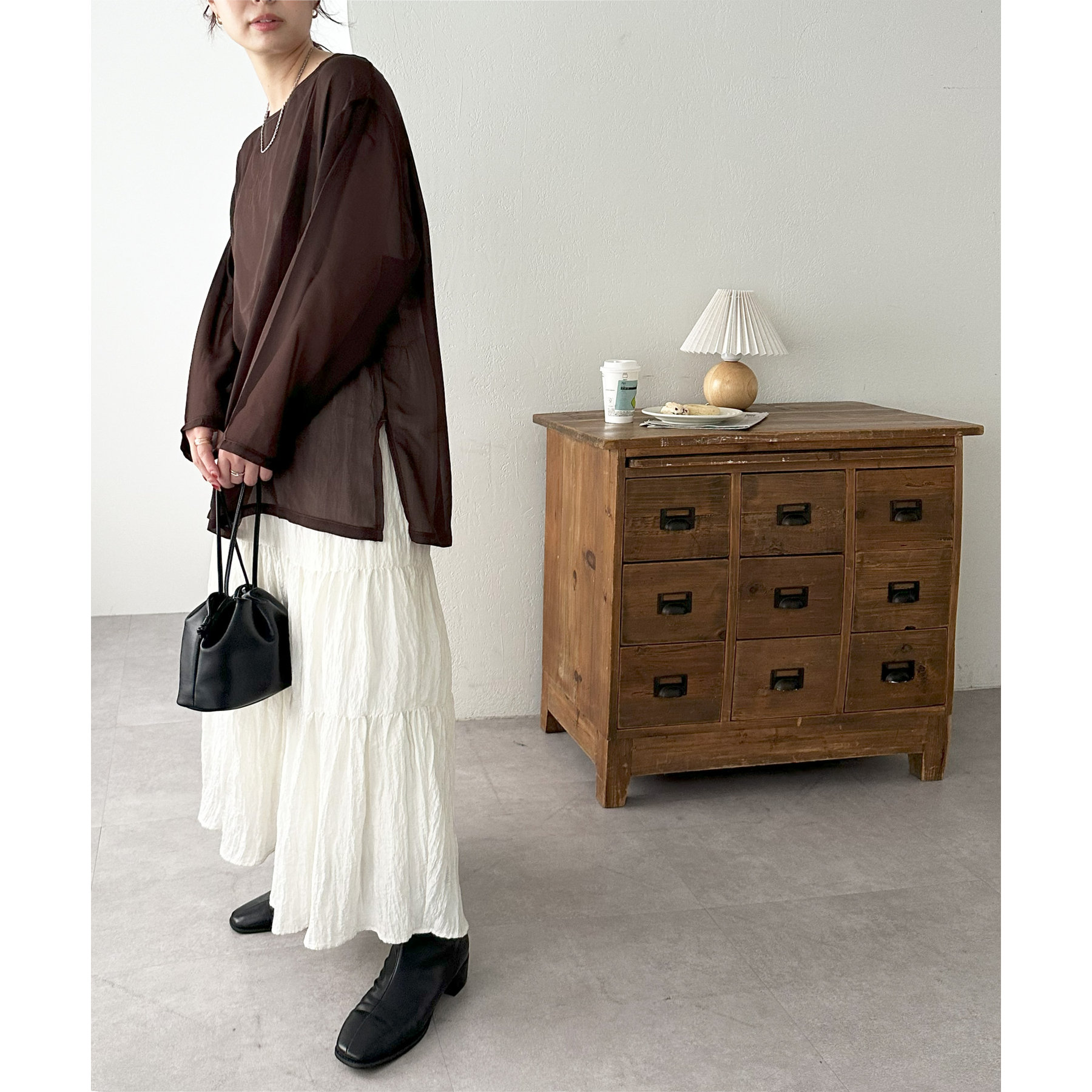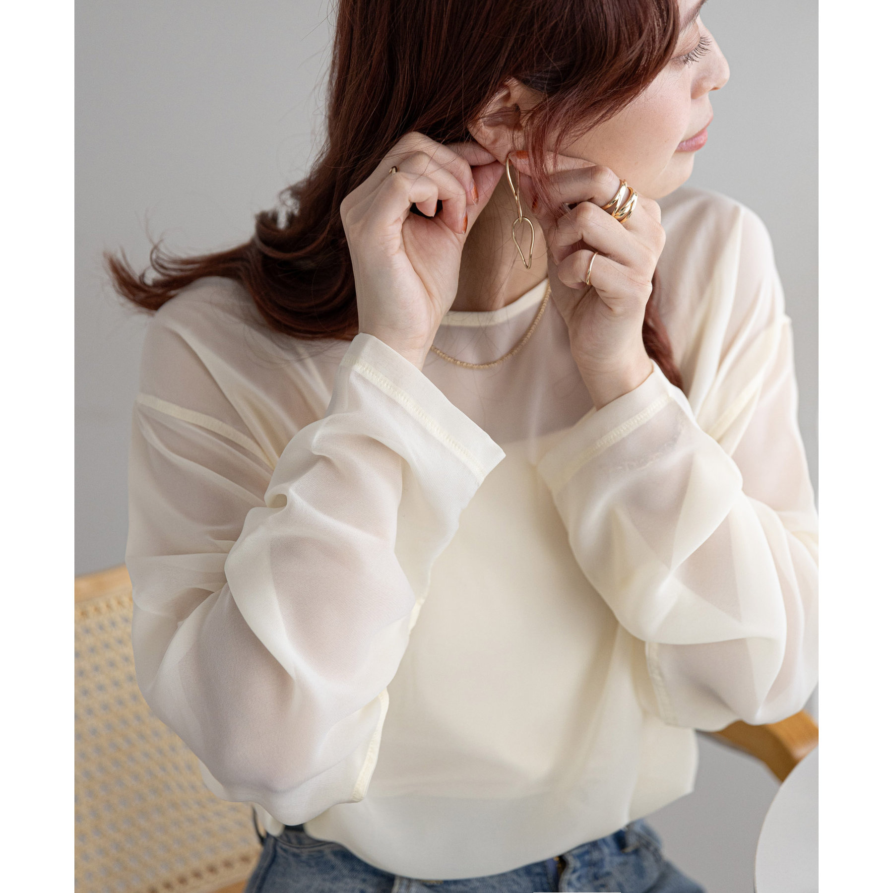 長袖でシアーのデザインが涼し気な雰囲気なので、ロングシーズン着て頂けます。