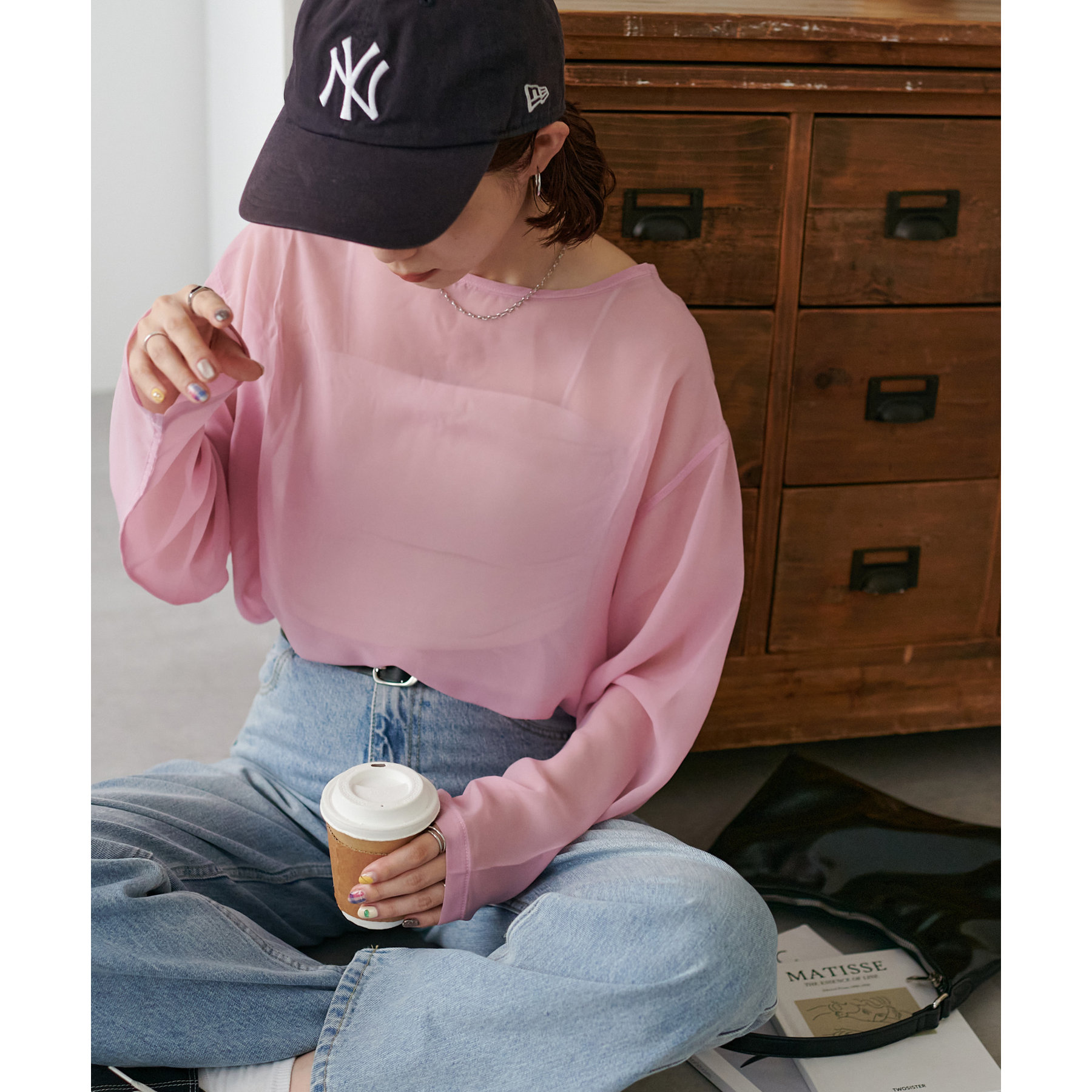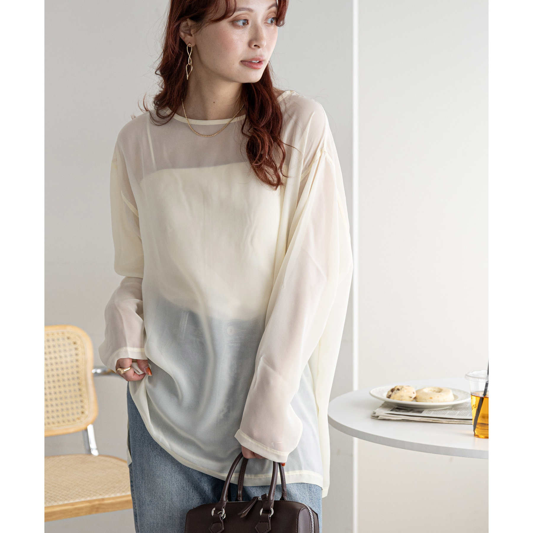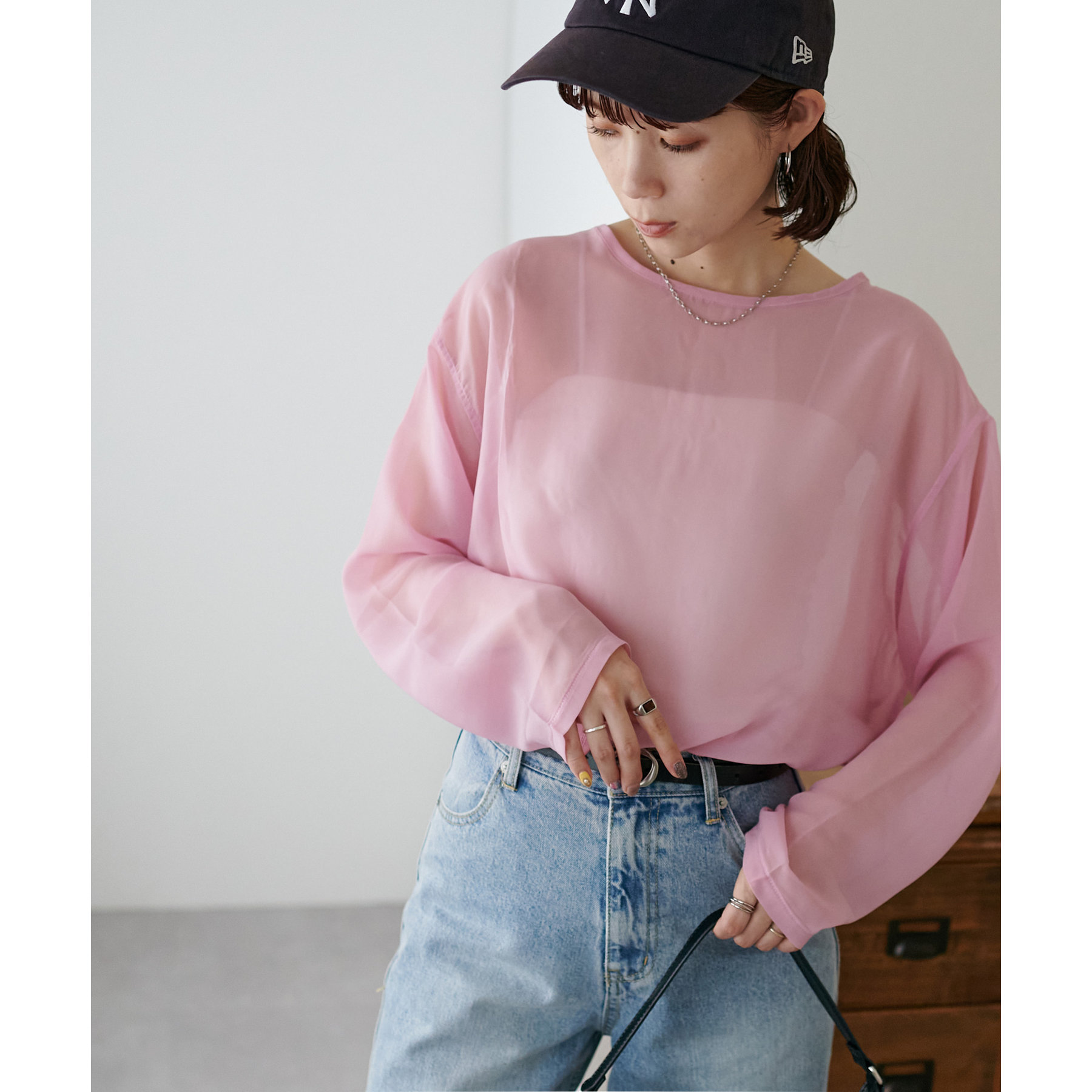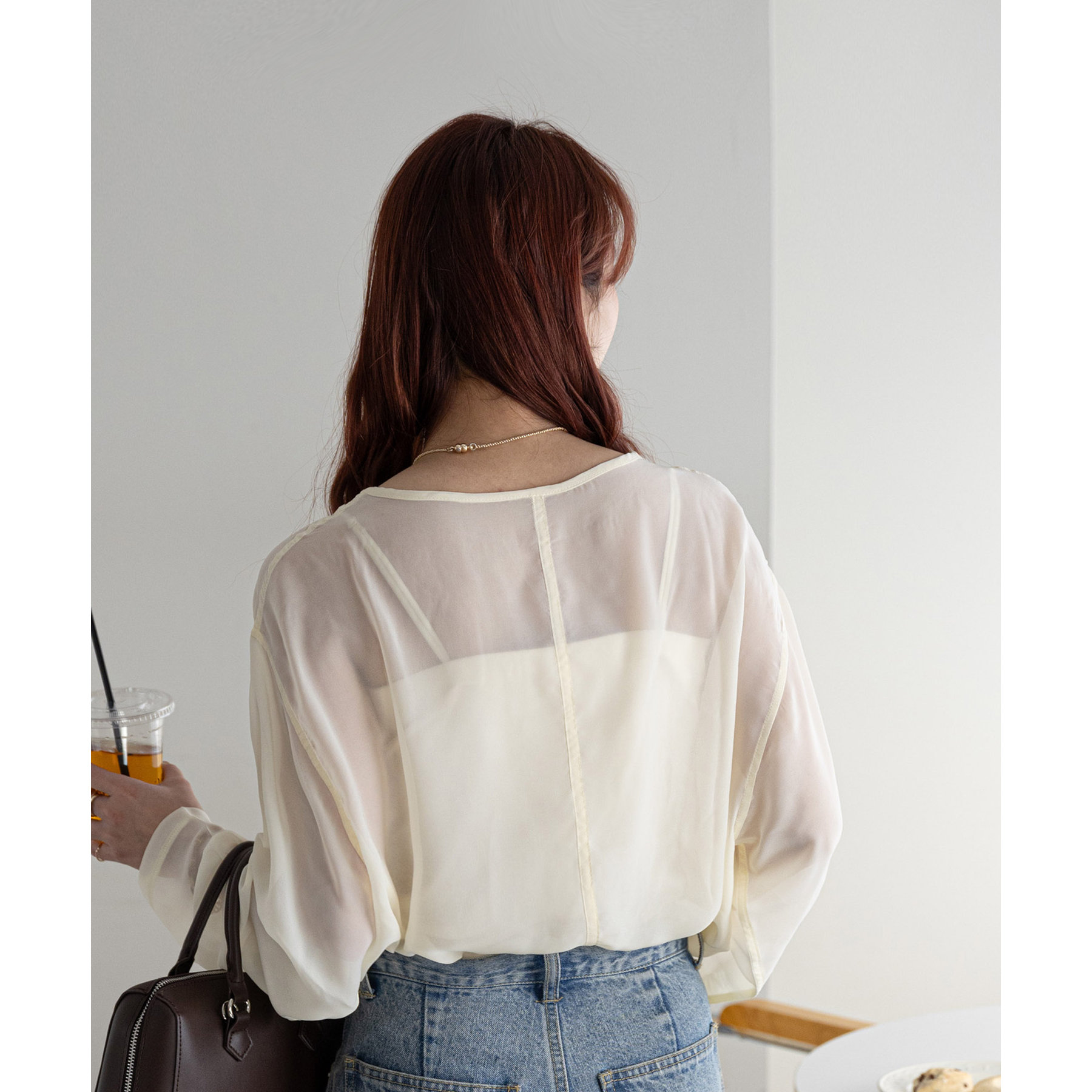 長袖でシアーのデザインが涼し気な雰囲気なので、ロングシーズン着て頂けます。