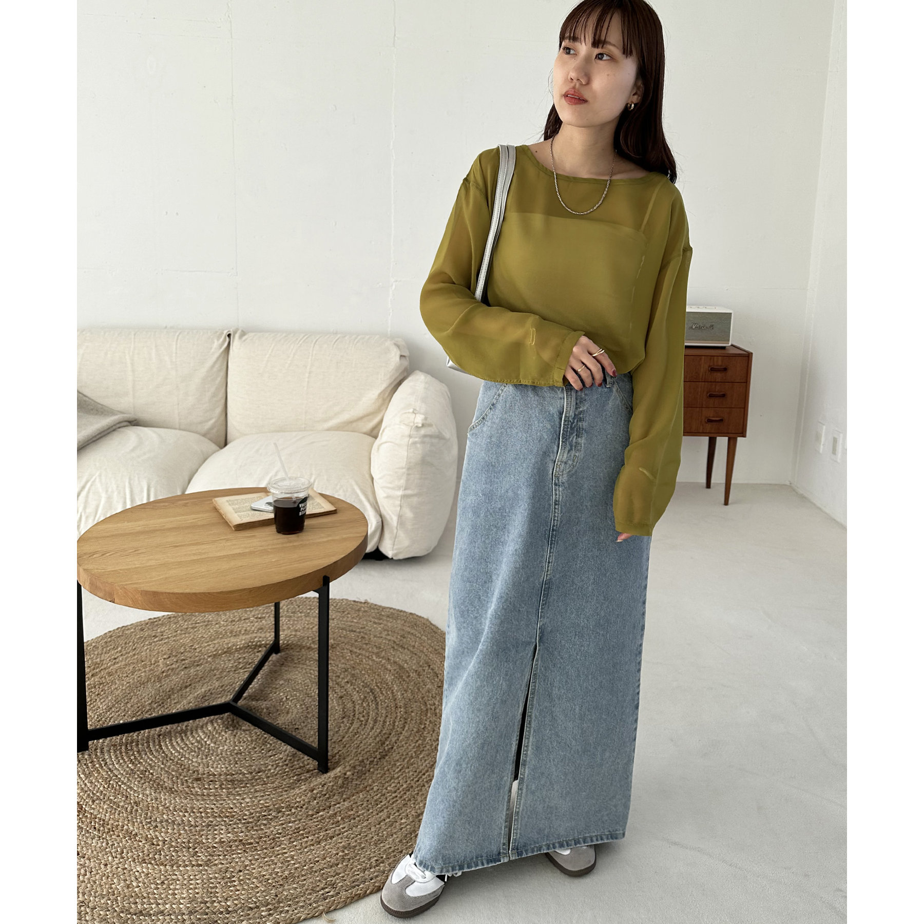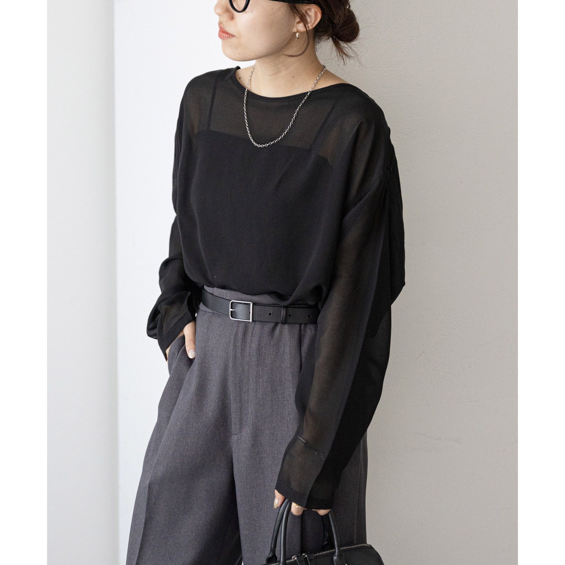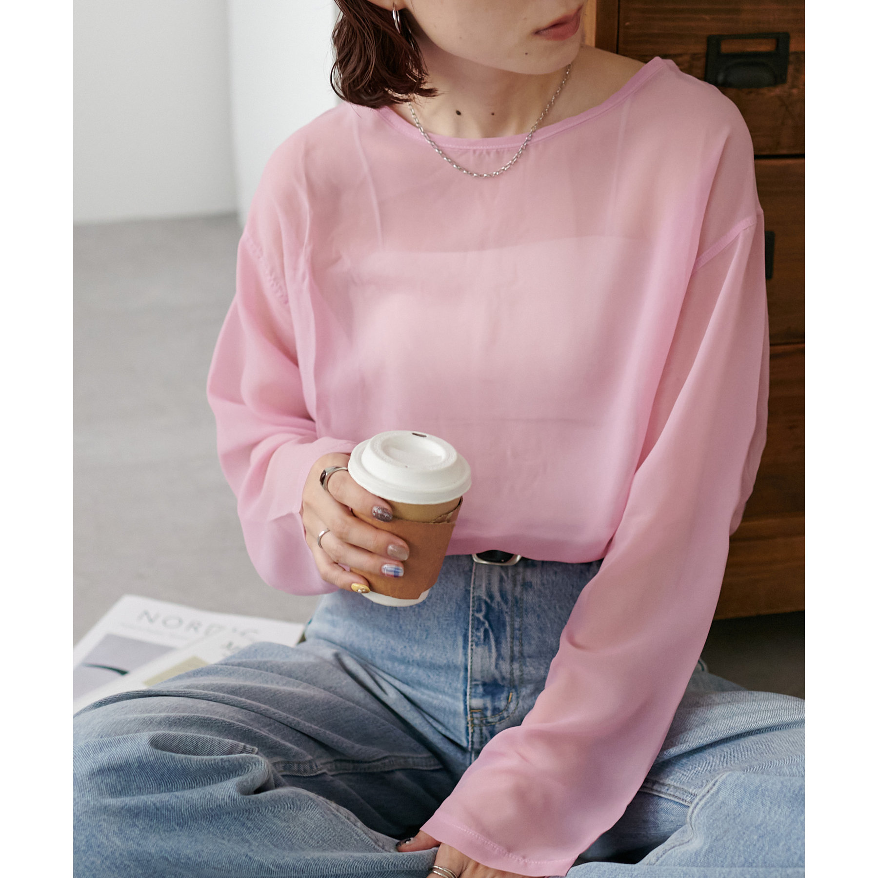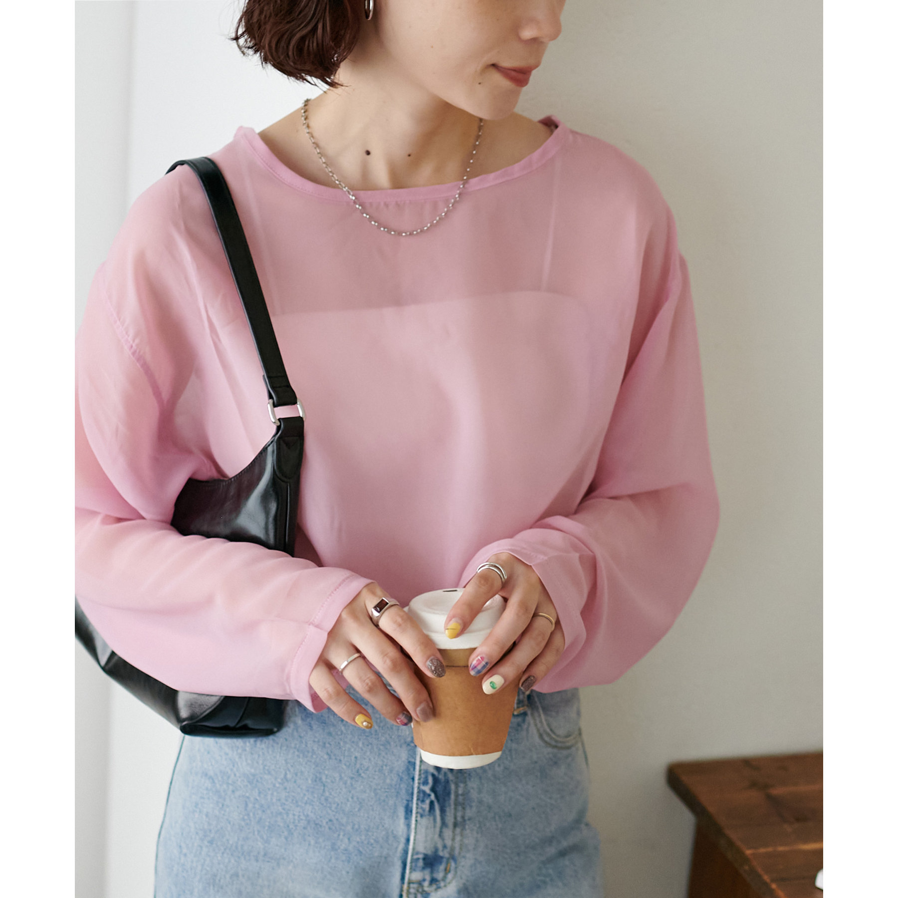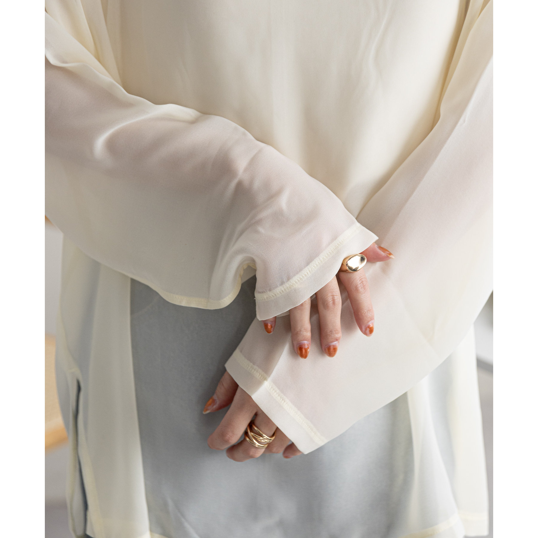 長袖でシアーのデザインが涼し気な雰囲気なので、ロングシーズン着て頂けます。