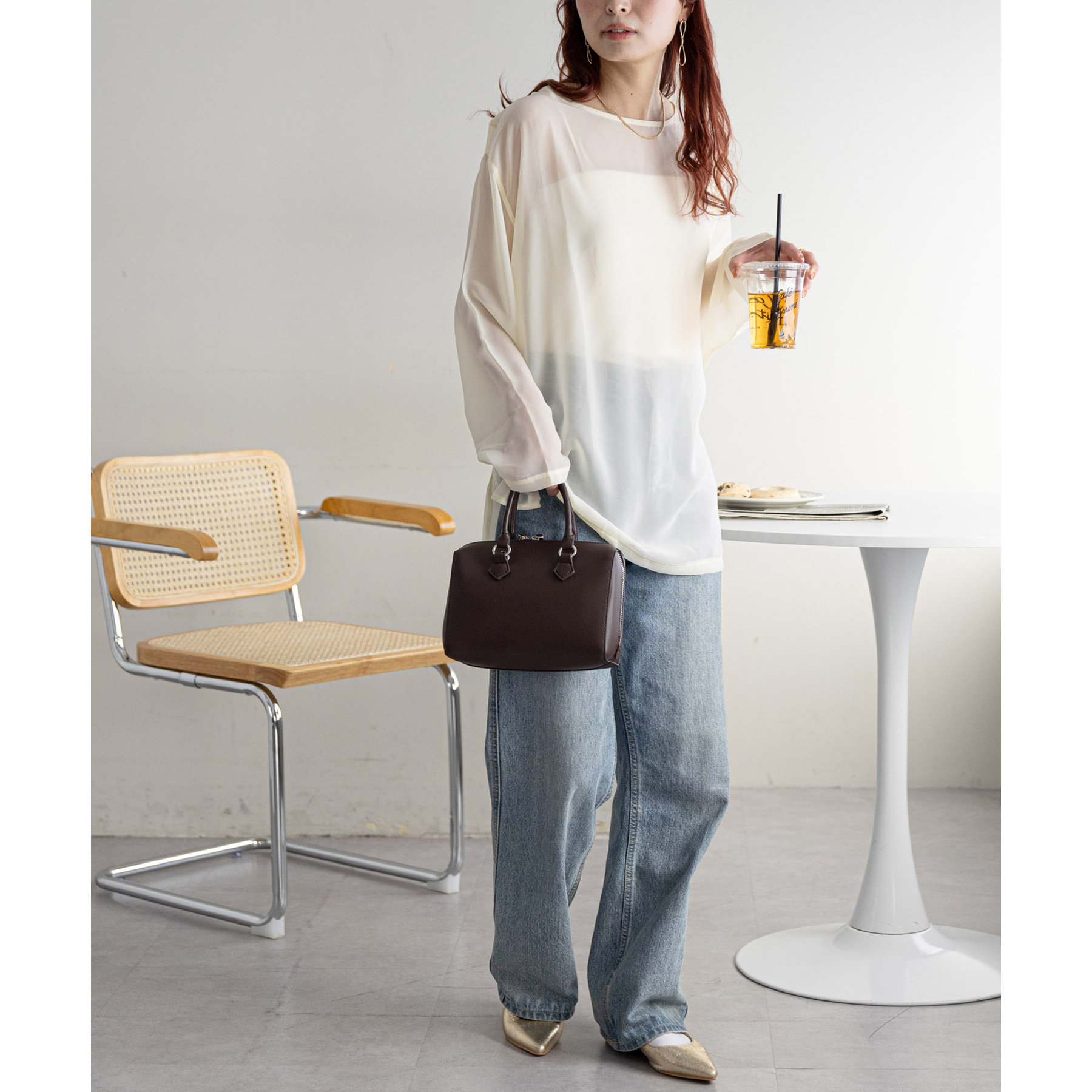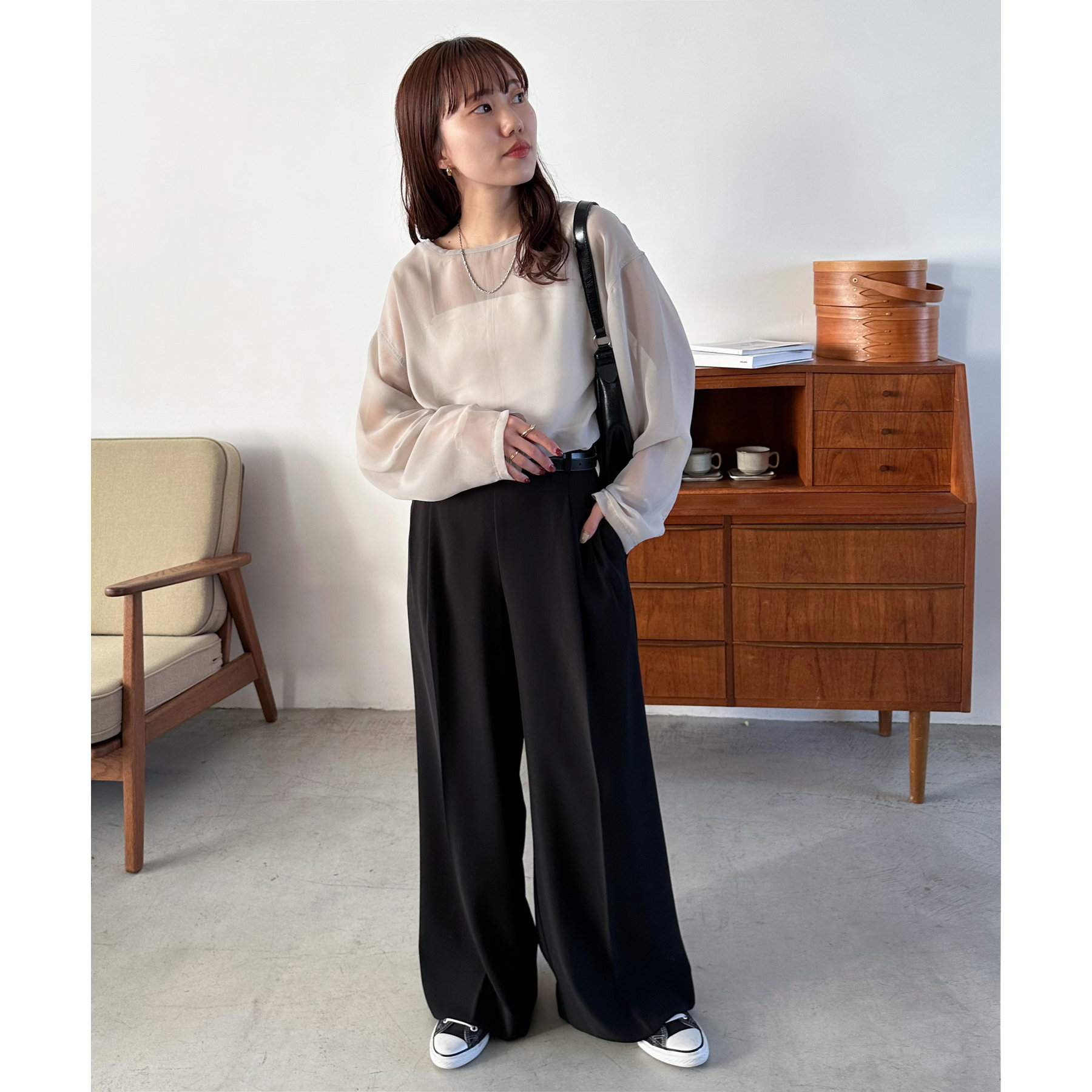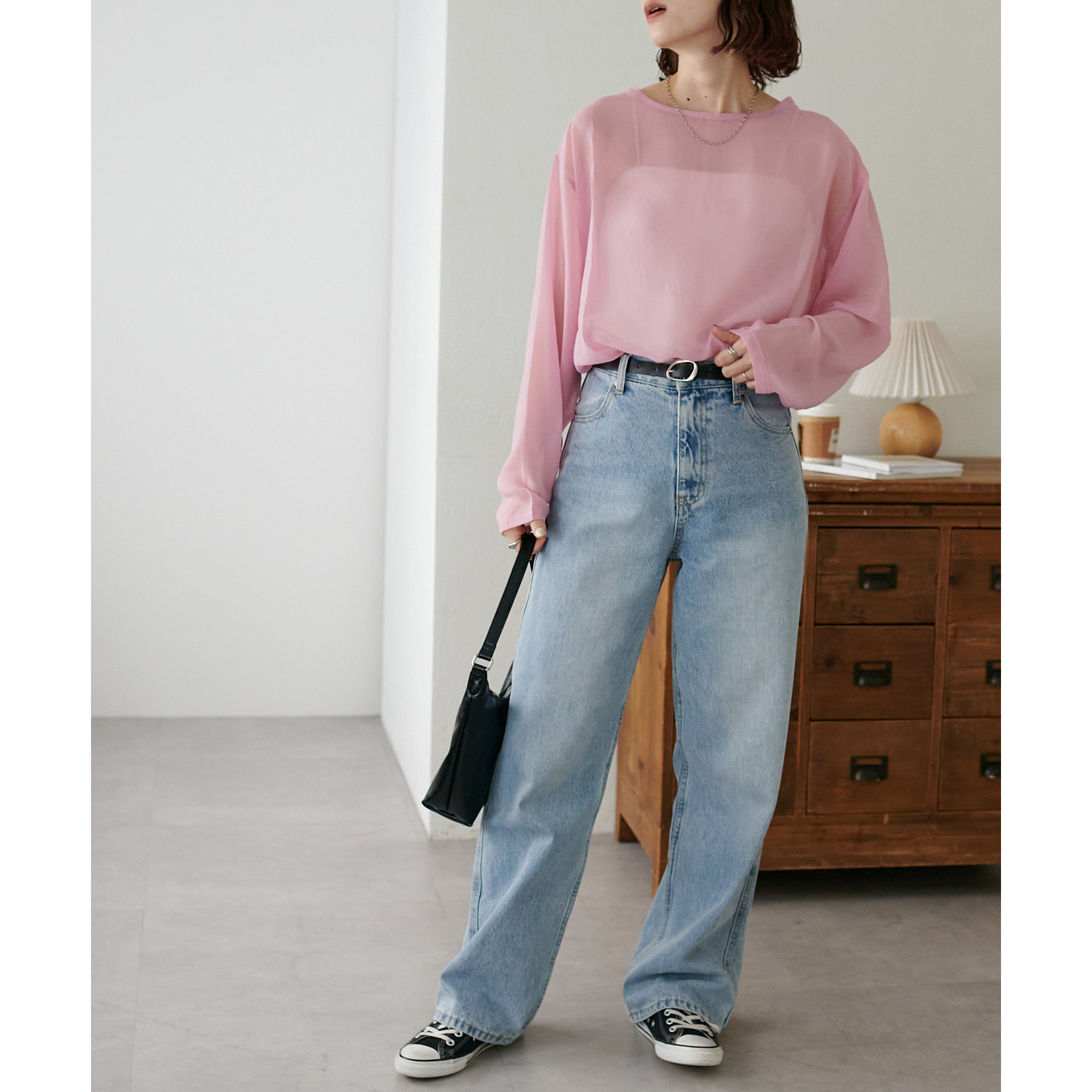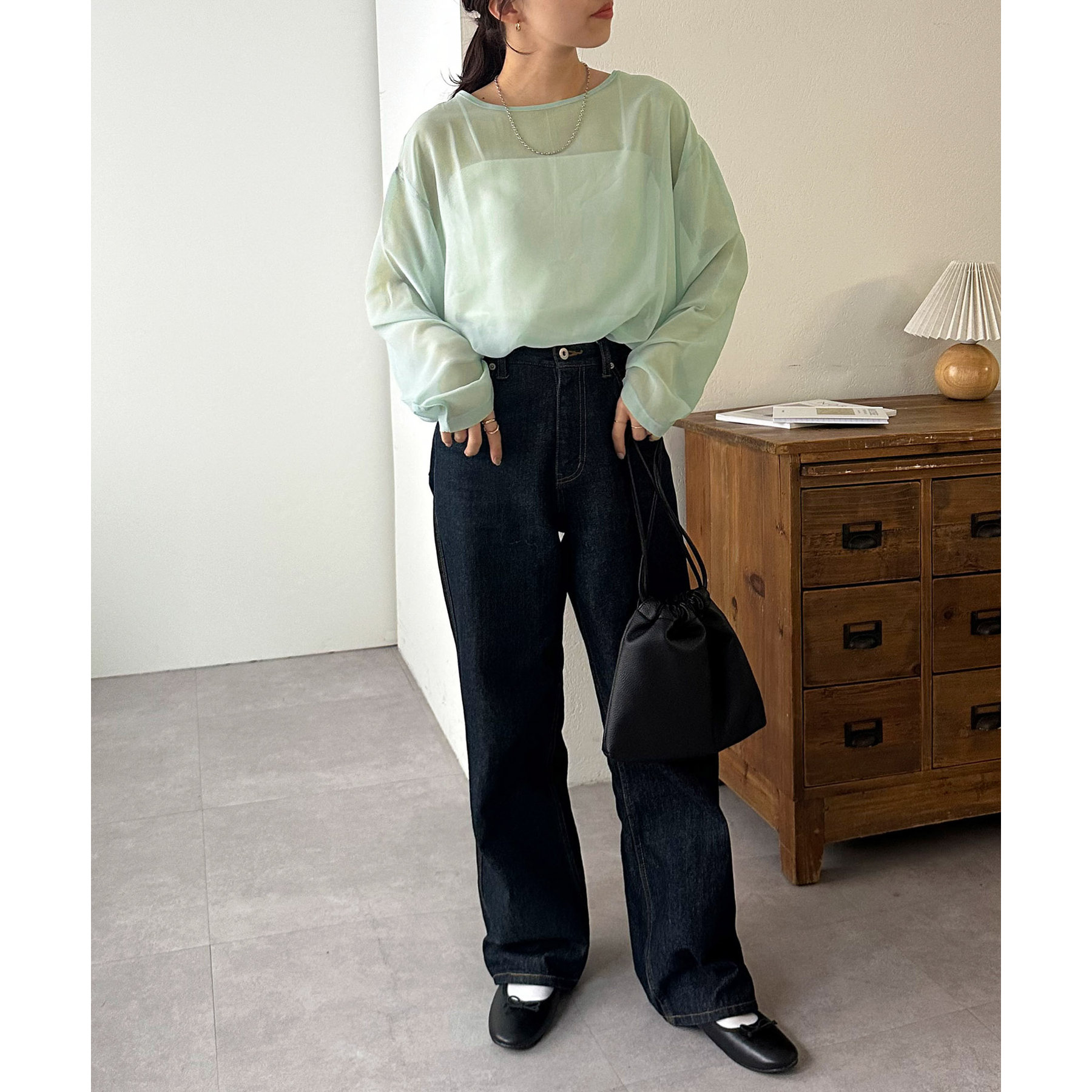 155㎝スタッフ:さらっとしてる生地感だからインしても気になりにくい!シアーだから長袖だけどロングシーズン着まわせそう〇
