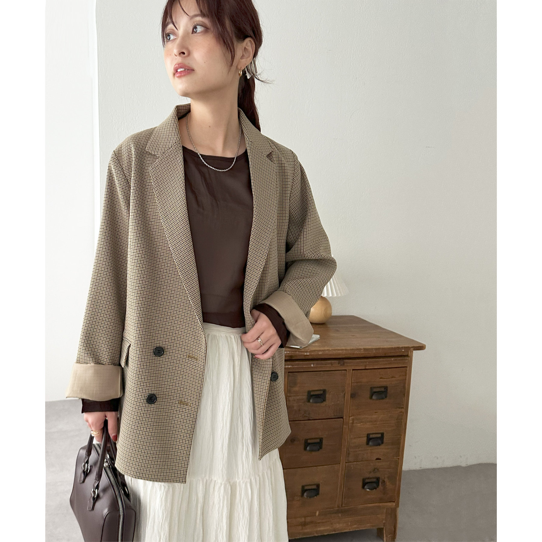ヒップラインまでかかる丈感ですが、裾にスリットが施されていることで抜け感もプラス〇