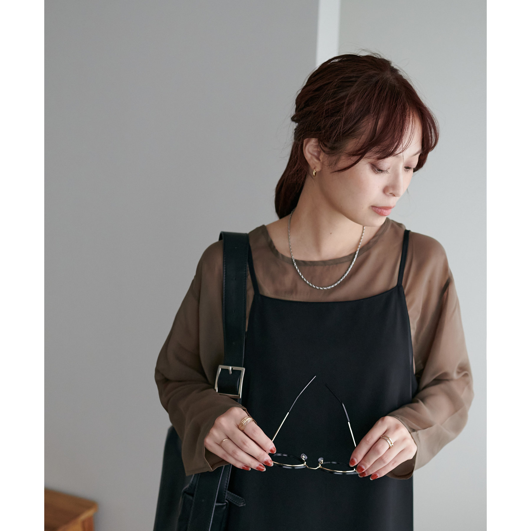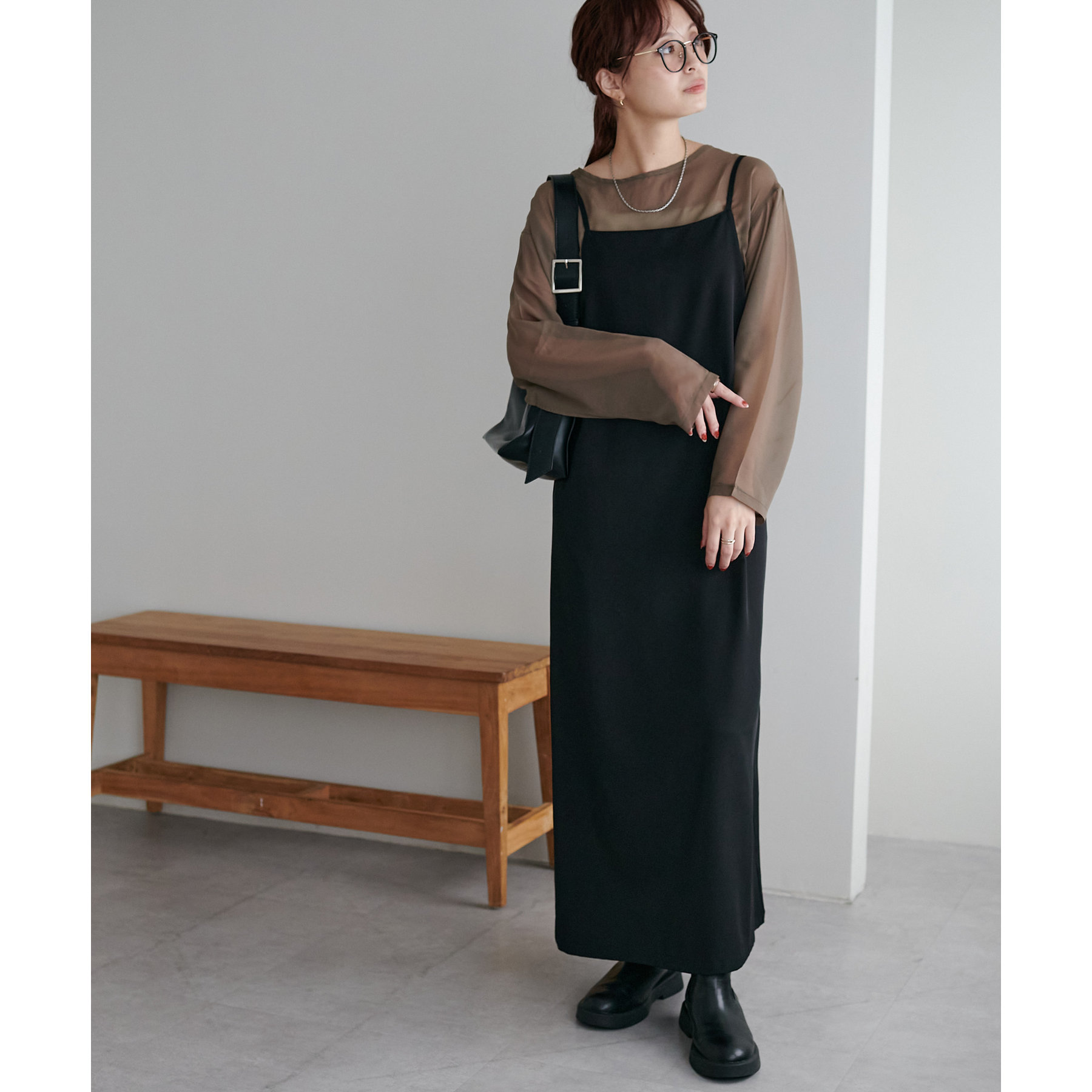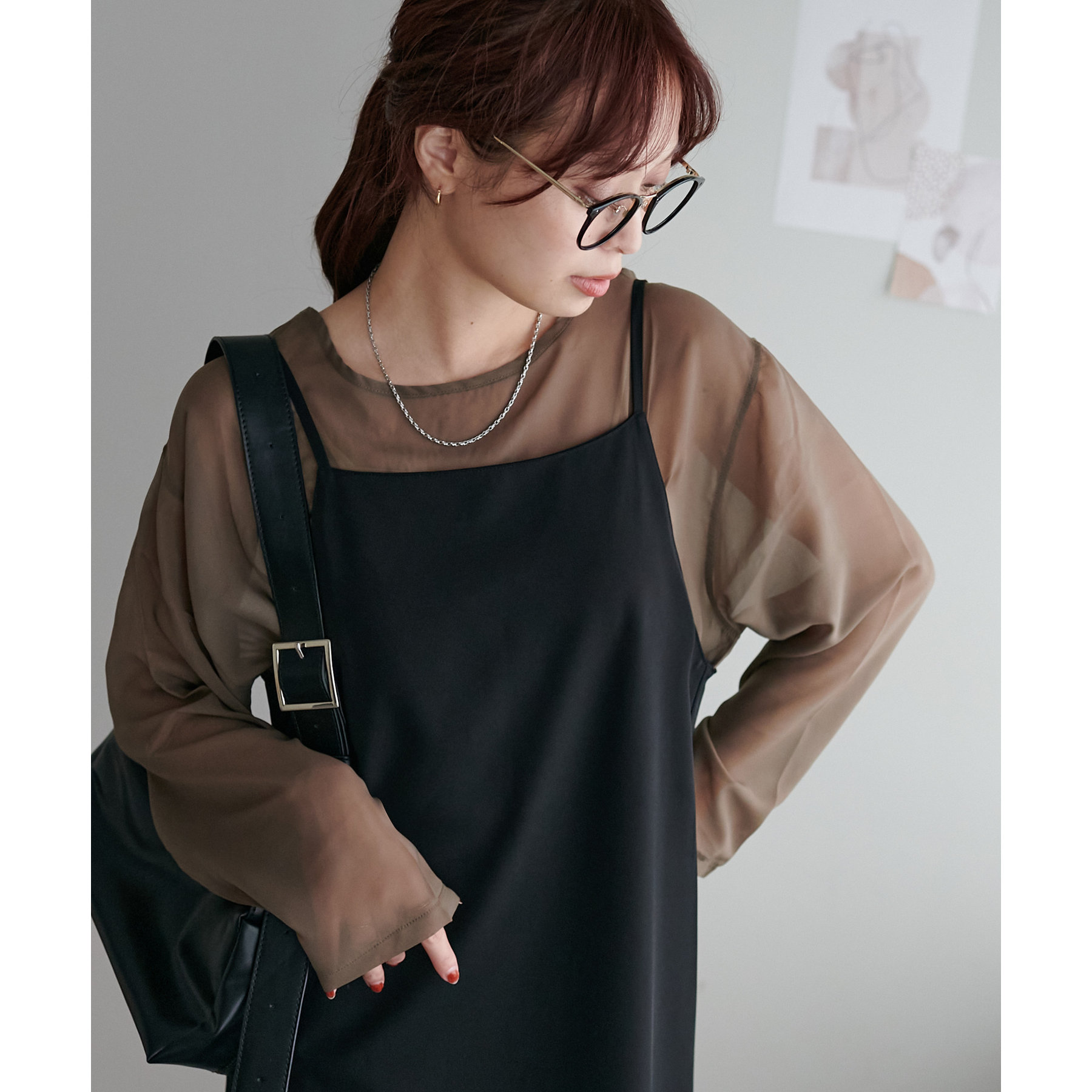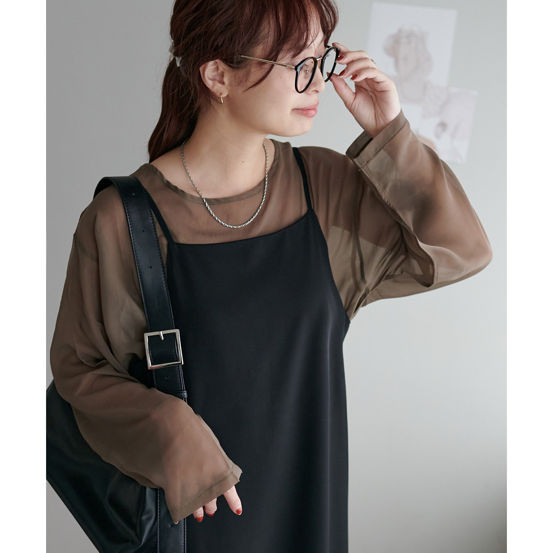 ゆとりのあるサイズ感なのでキャミ合わせはもちろんですが、インナーにTシャツも合わせて楽しめます。