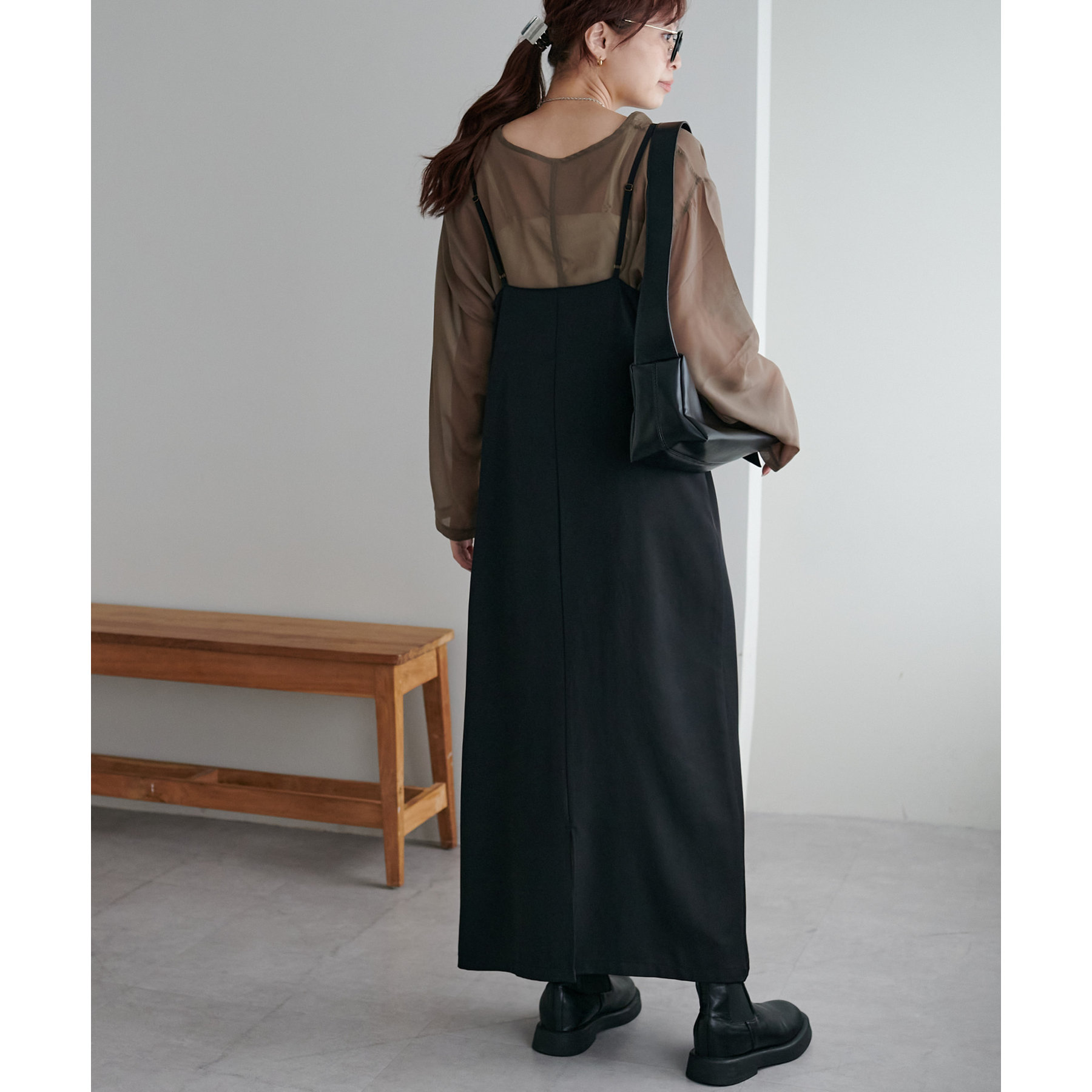 キャミワンピースやサロペットのインナーでアクセントをプラス〇